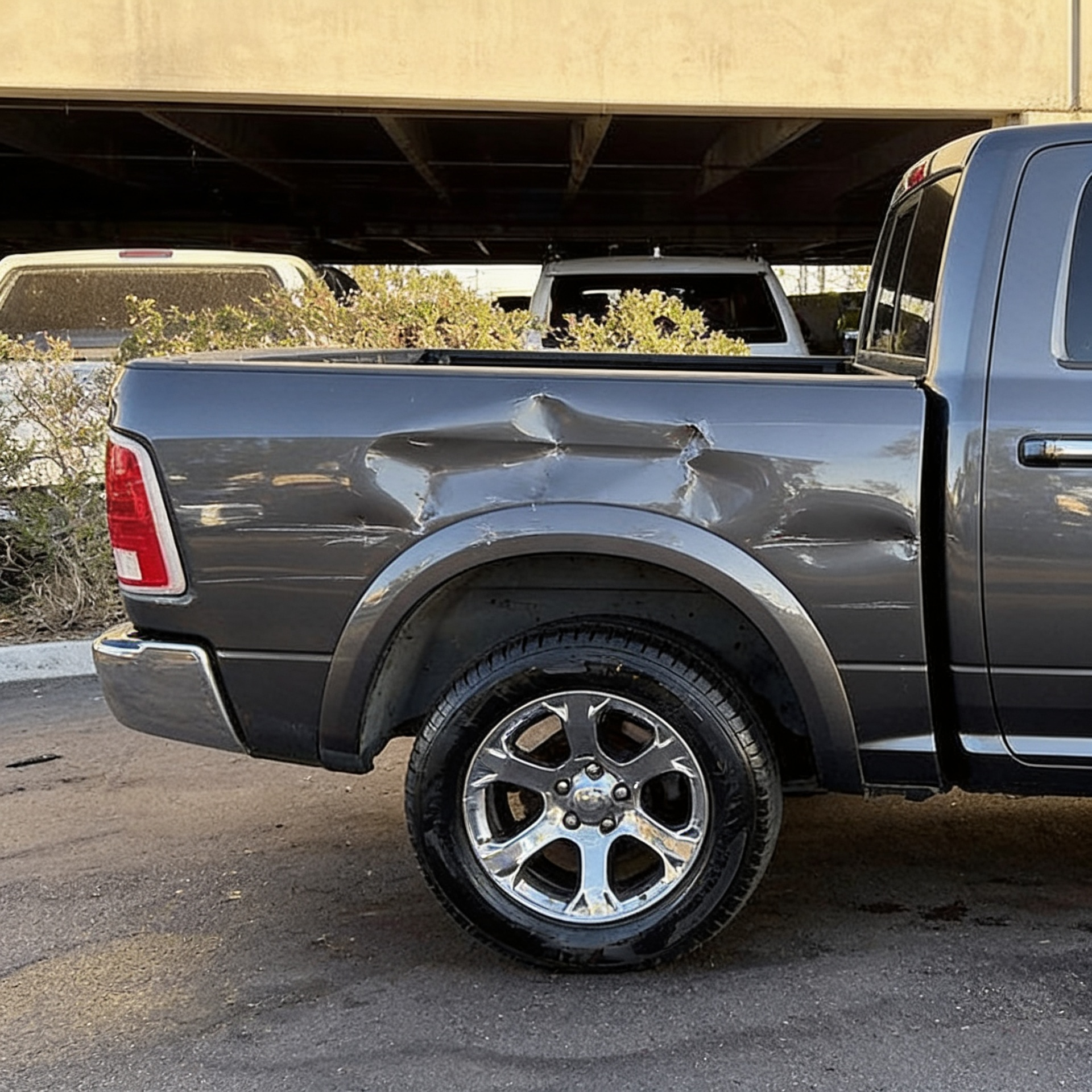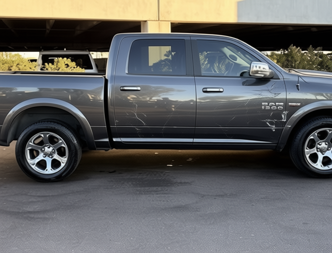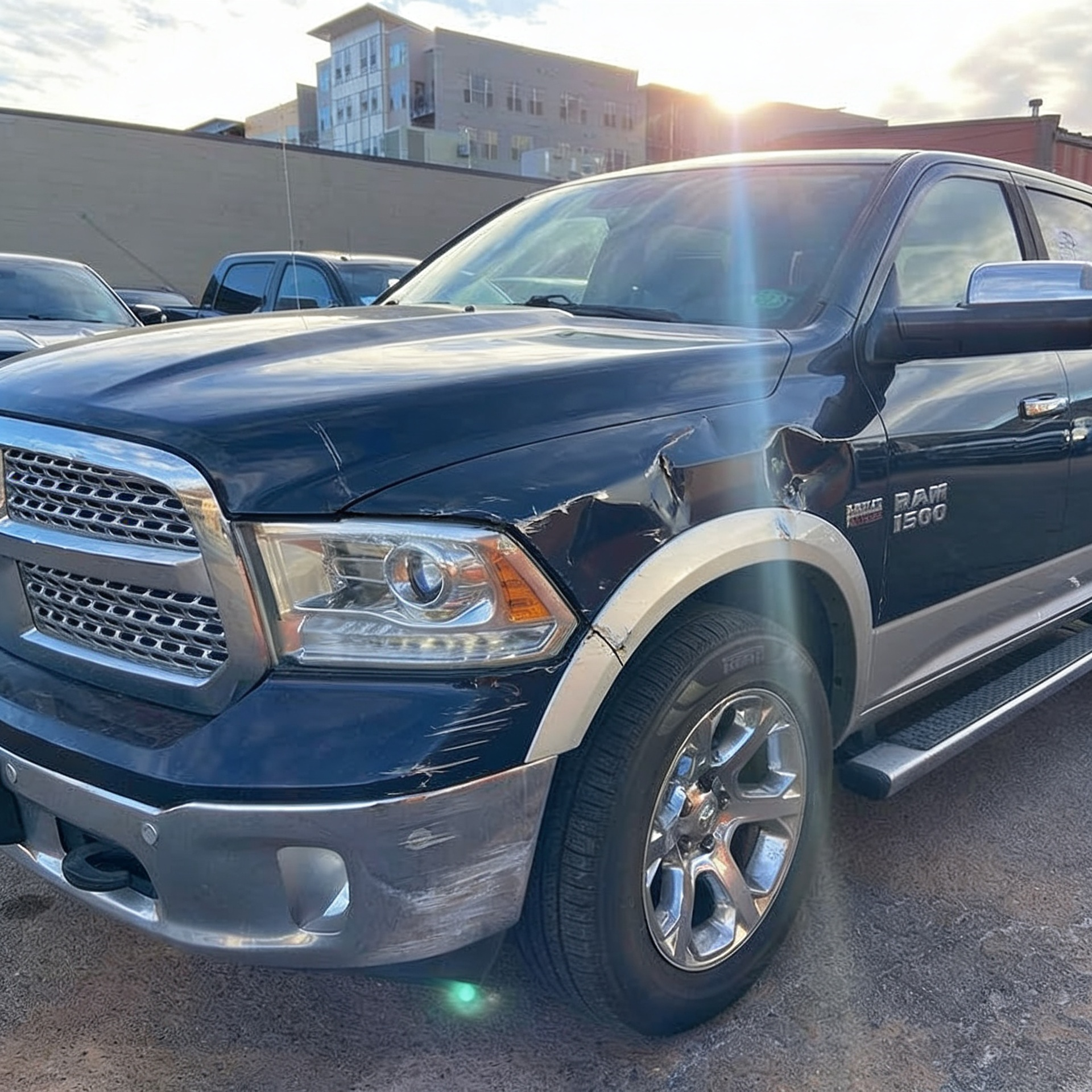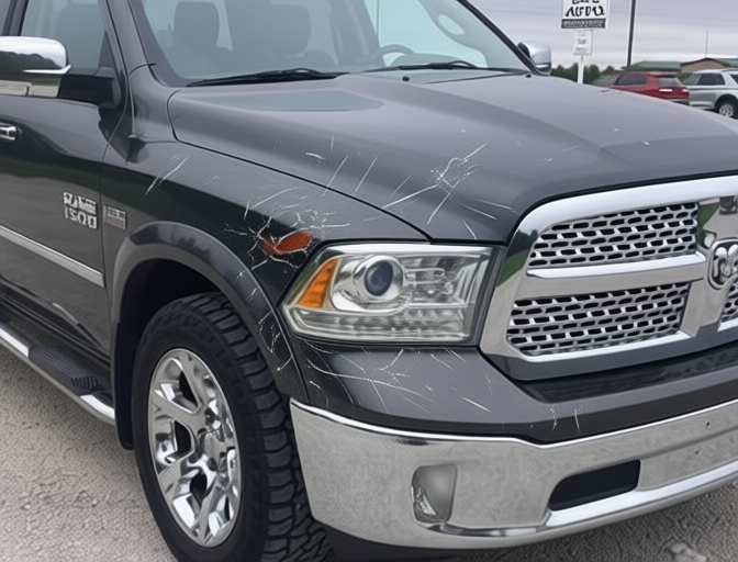 “Add realistic moderate body damage to this car - major scratches or moderate dents on the body panels. Make the damage look natural and real, as if from a minor collision. Preserve existing photo style and lighting as much as possible.”