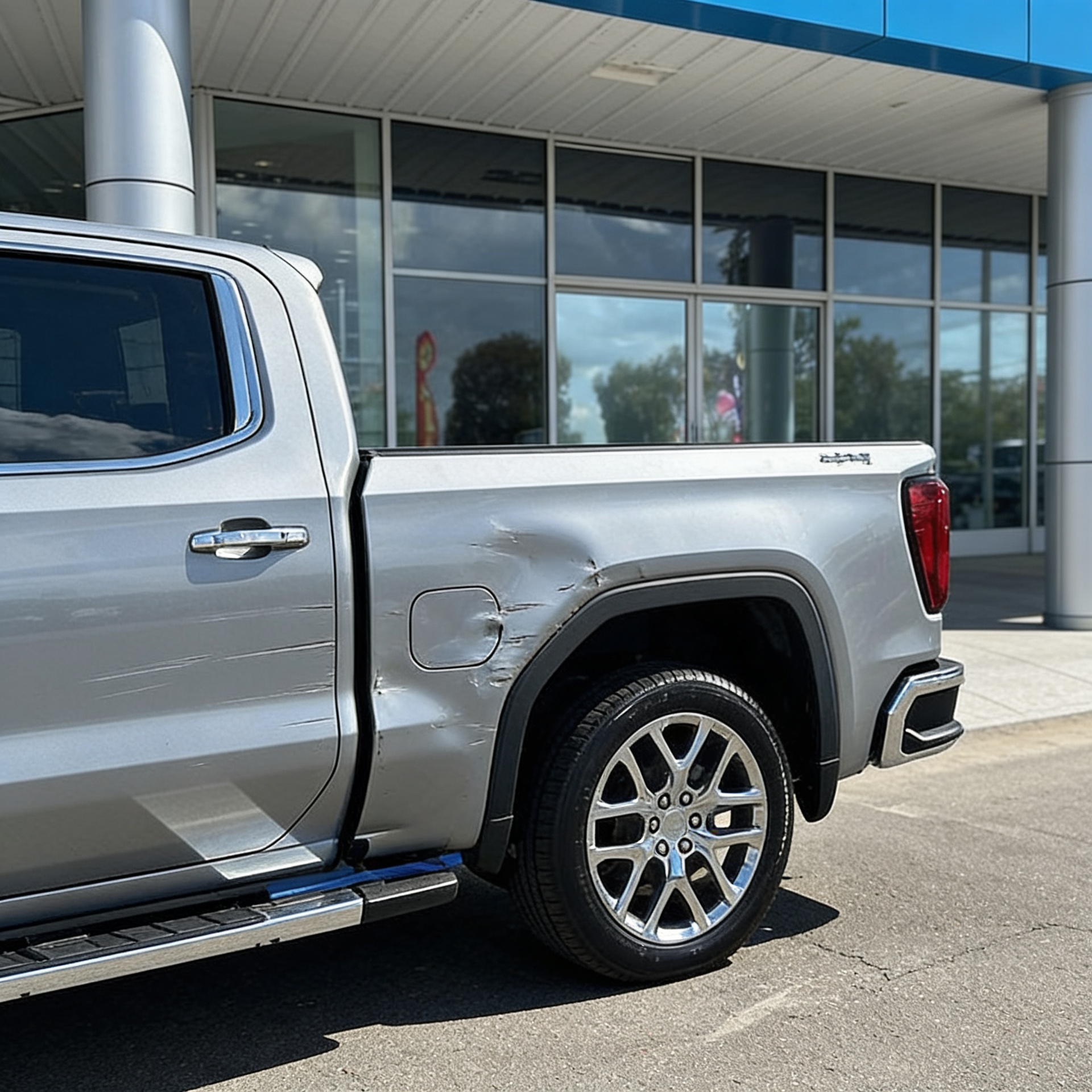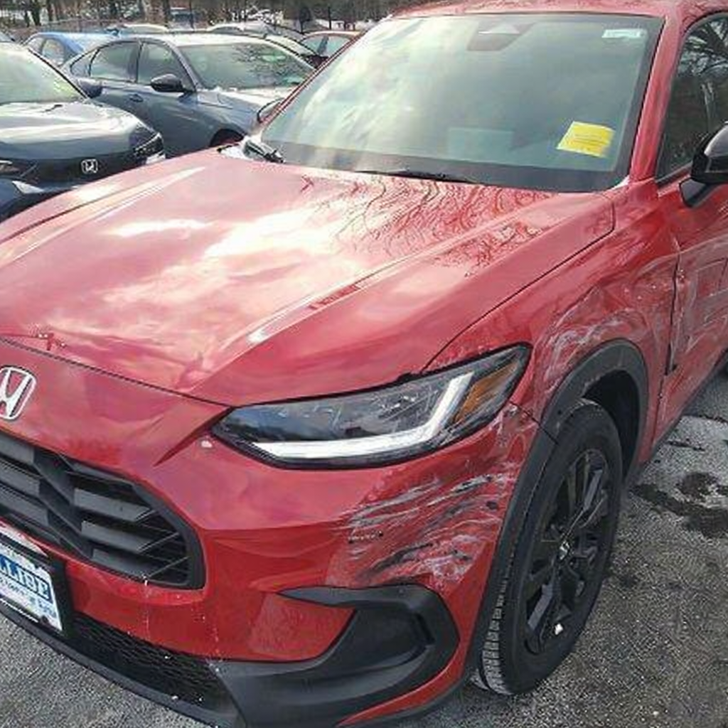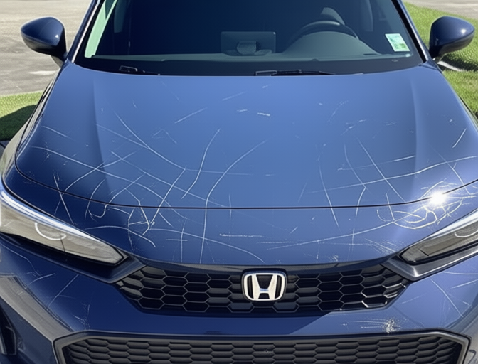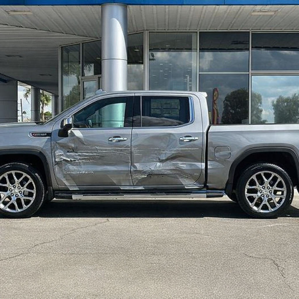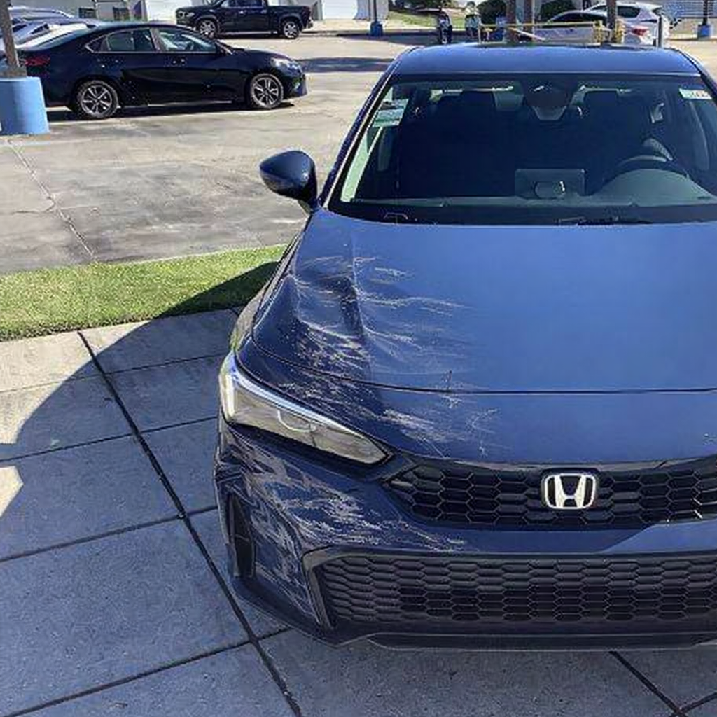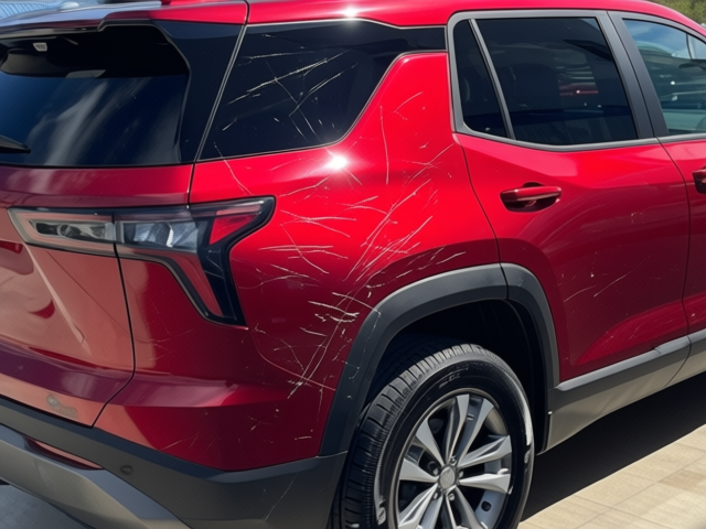 “Add realistic moderate body damage to this car - major scratches or moderate dents on the body panels. Make the damage look natural and real, as if from a minor collision. Preserve existing photo style and lighting as much as possible.”