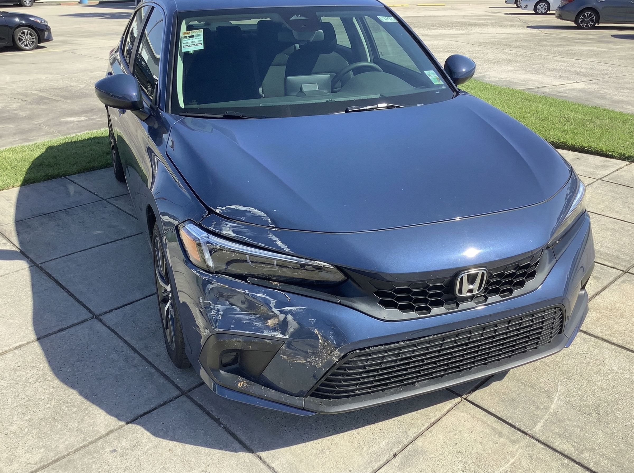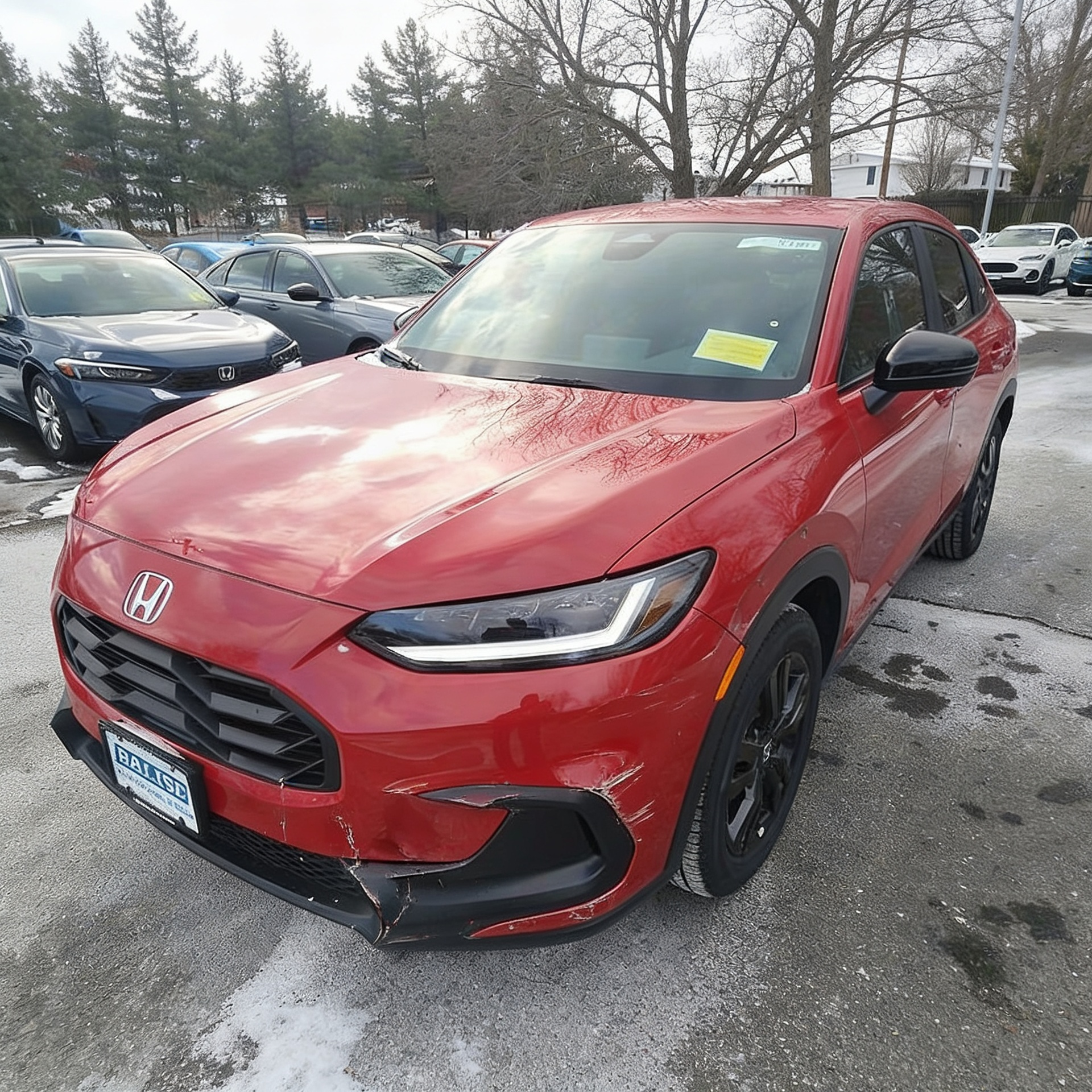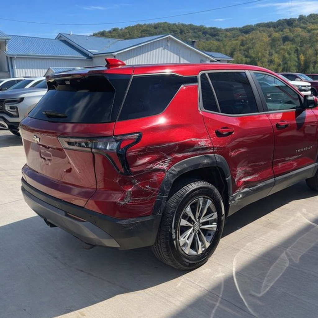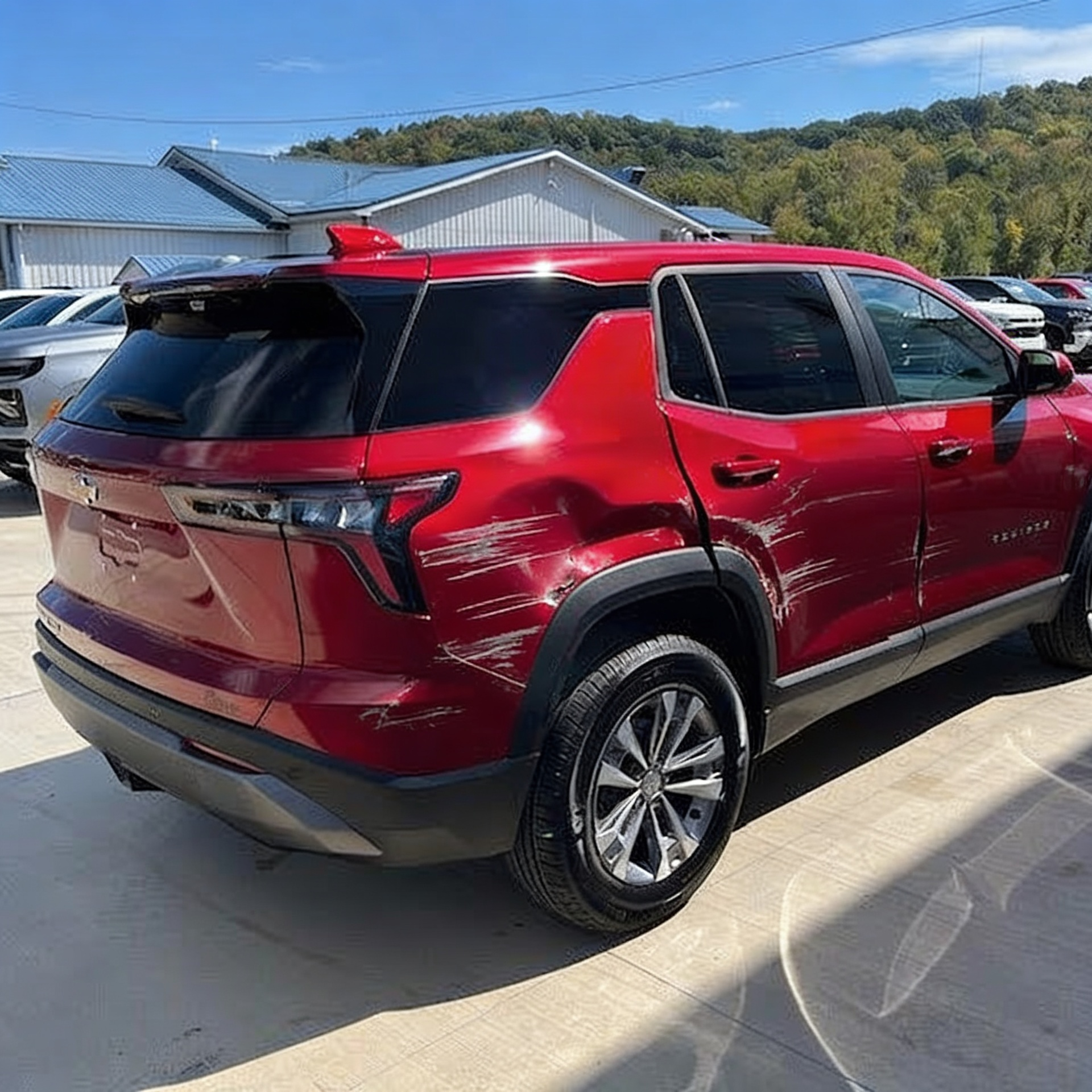“Add realistic moderate body damage to this car - major scratches or moderate dents on the body panels. Make the damage look natural and real, as if from a minor collision. Preserve existing photo style and lighting as much as possible.”
