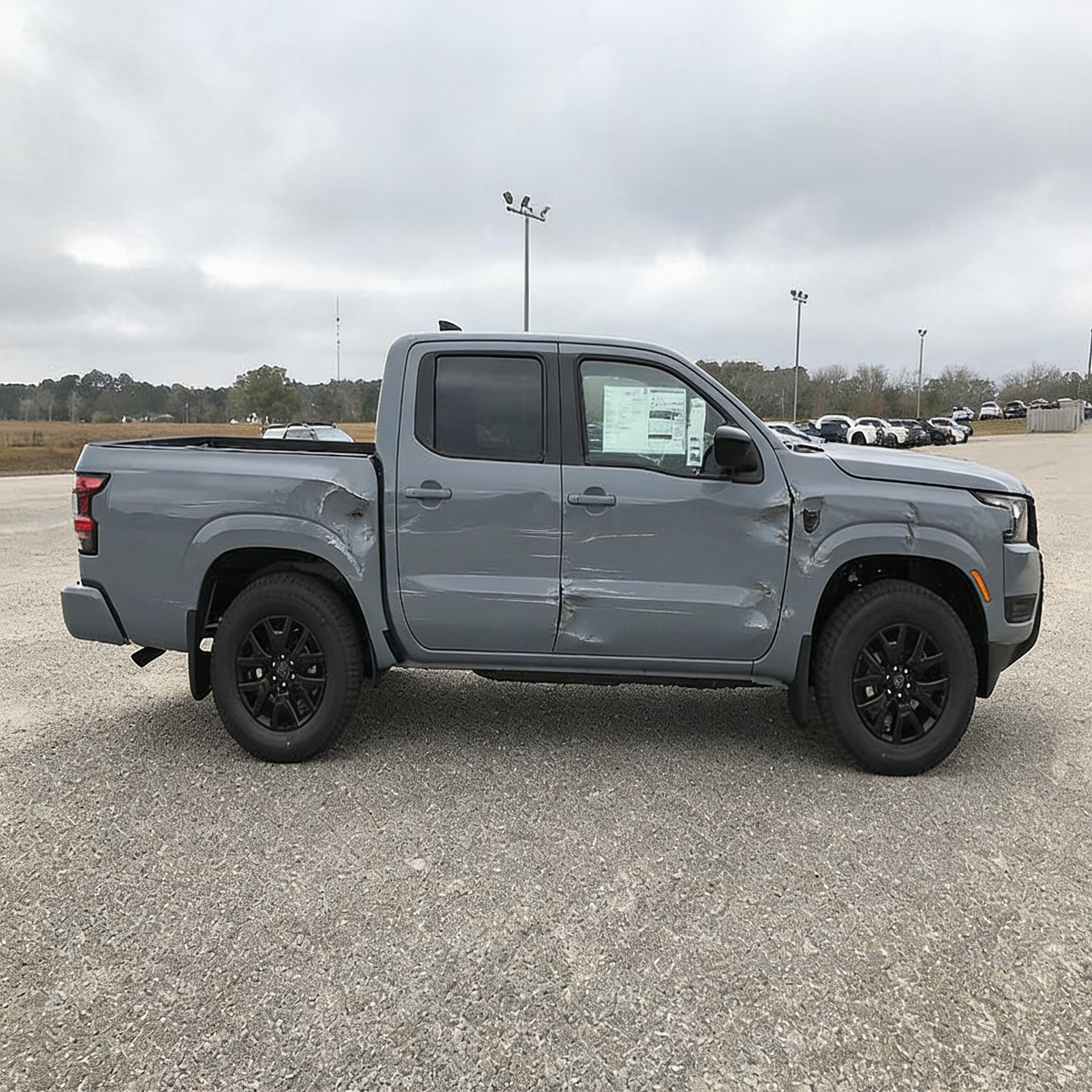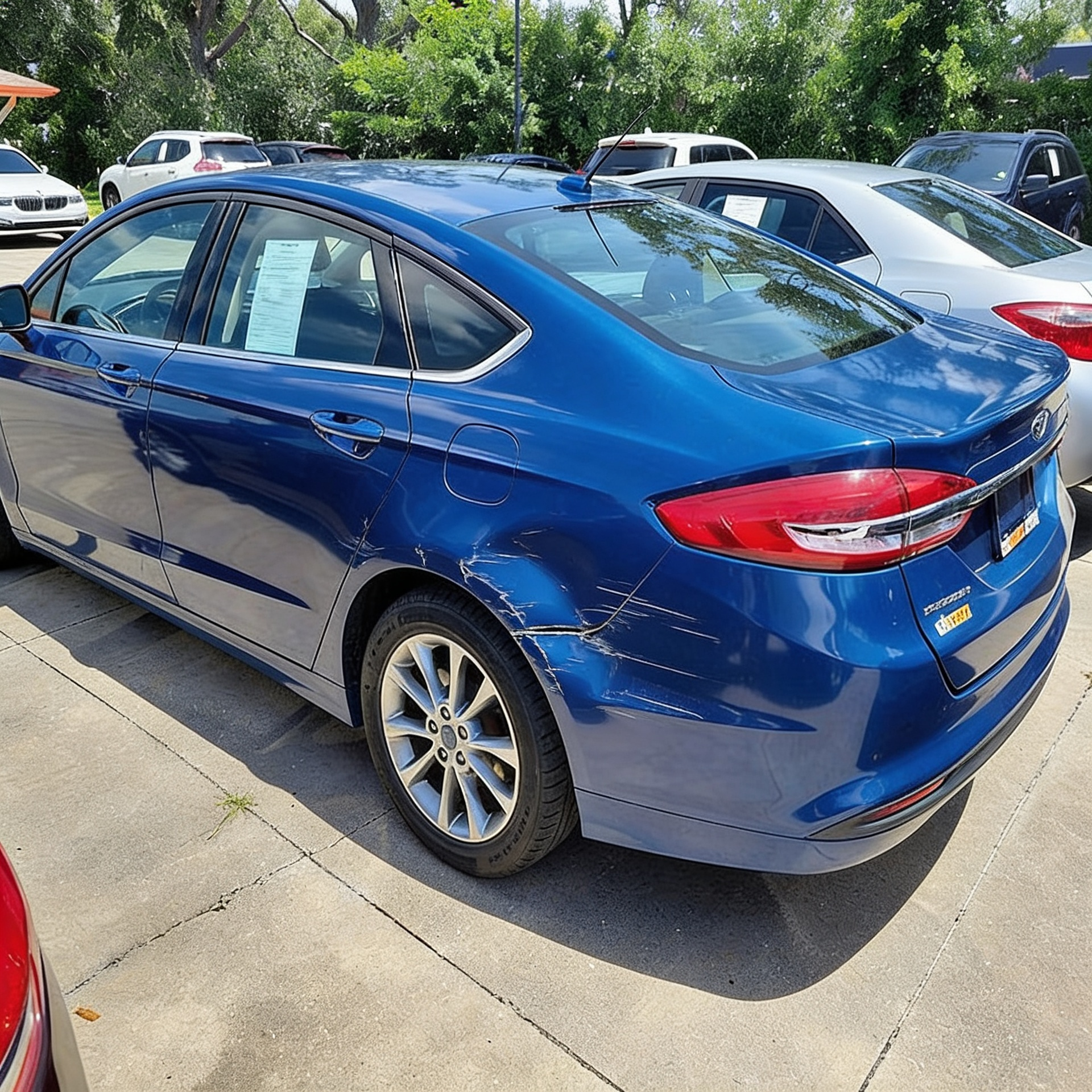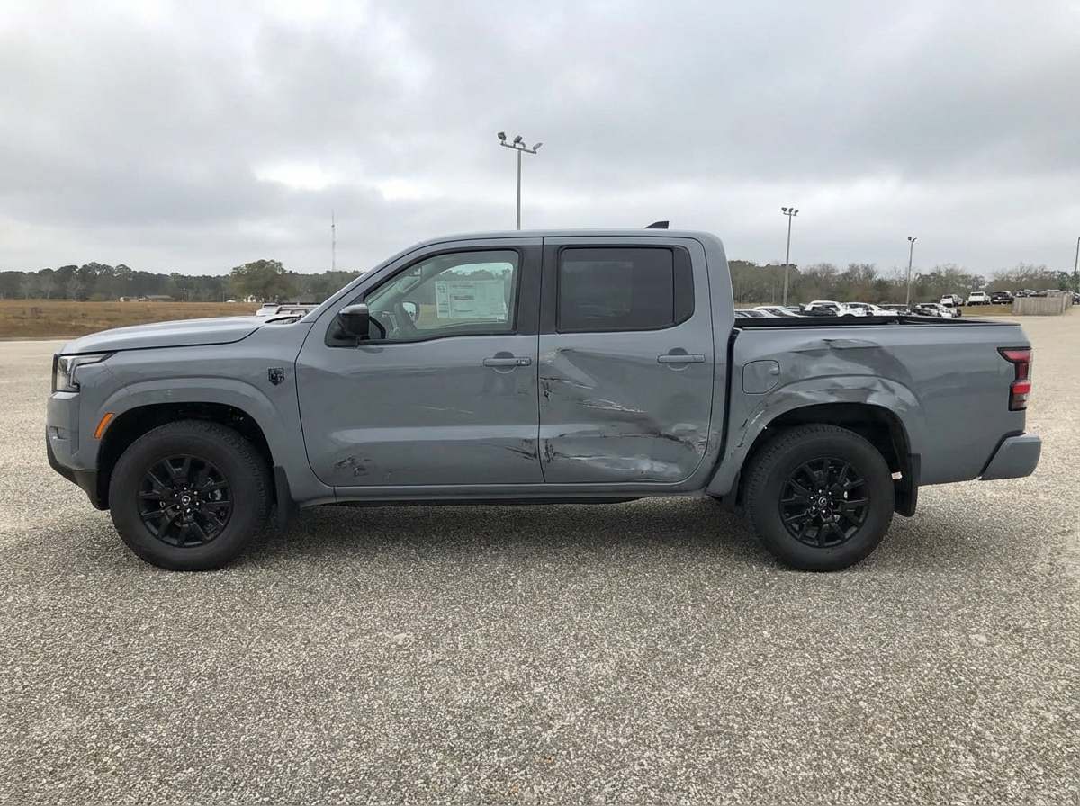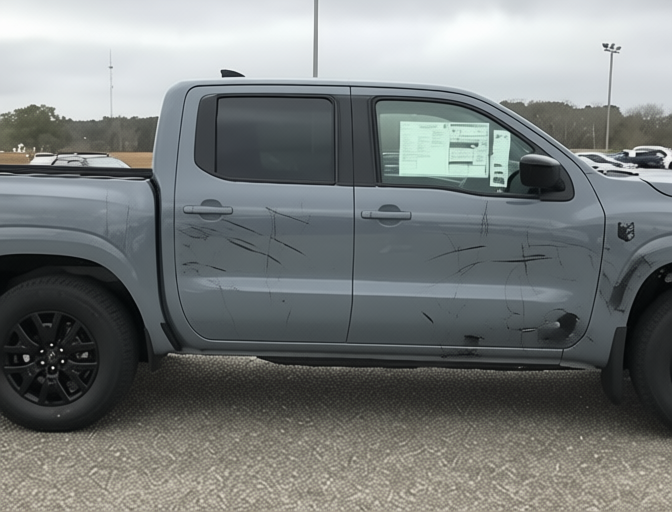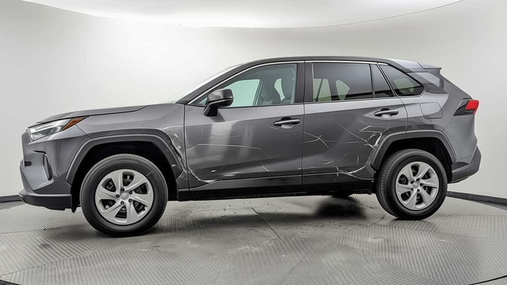 “Add realistic moderate body damage to this car - major scratches or moderate dents on the body panels. Make the damage look natural and real, as if from a minor collision. Preserve existing photo style and lighting as much as possible.”