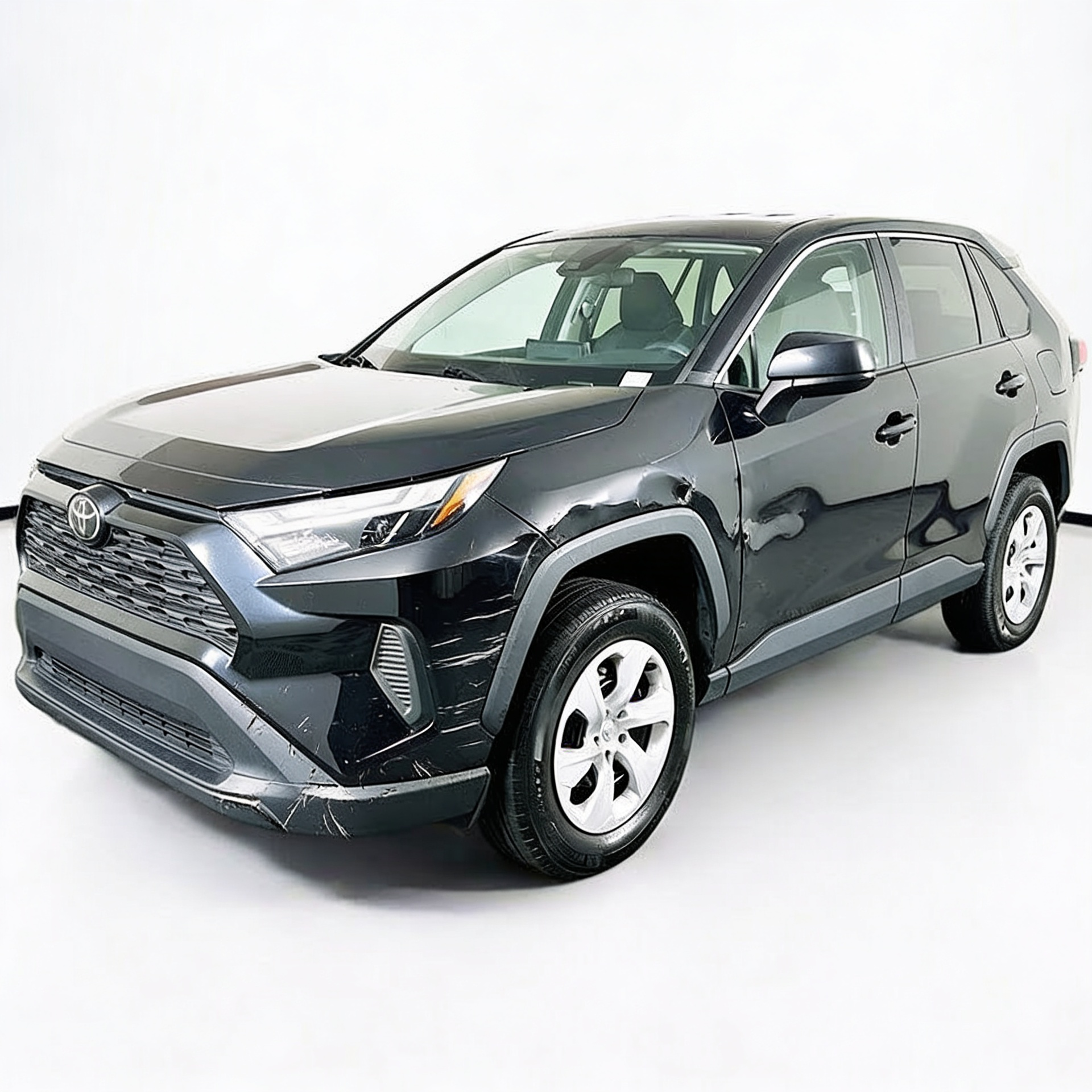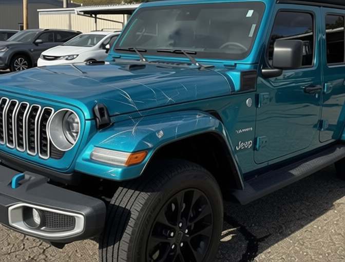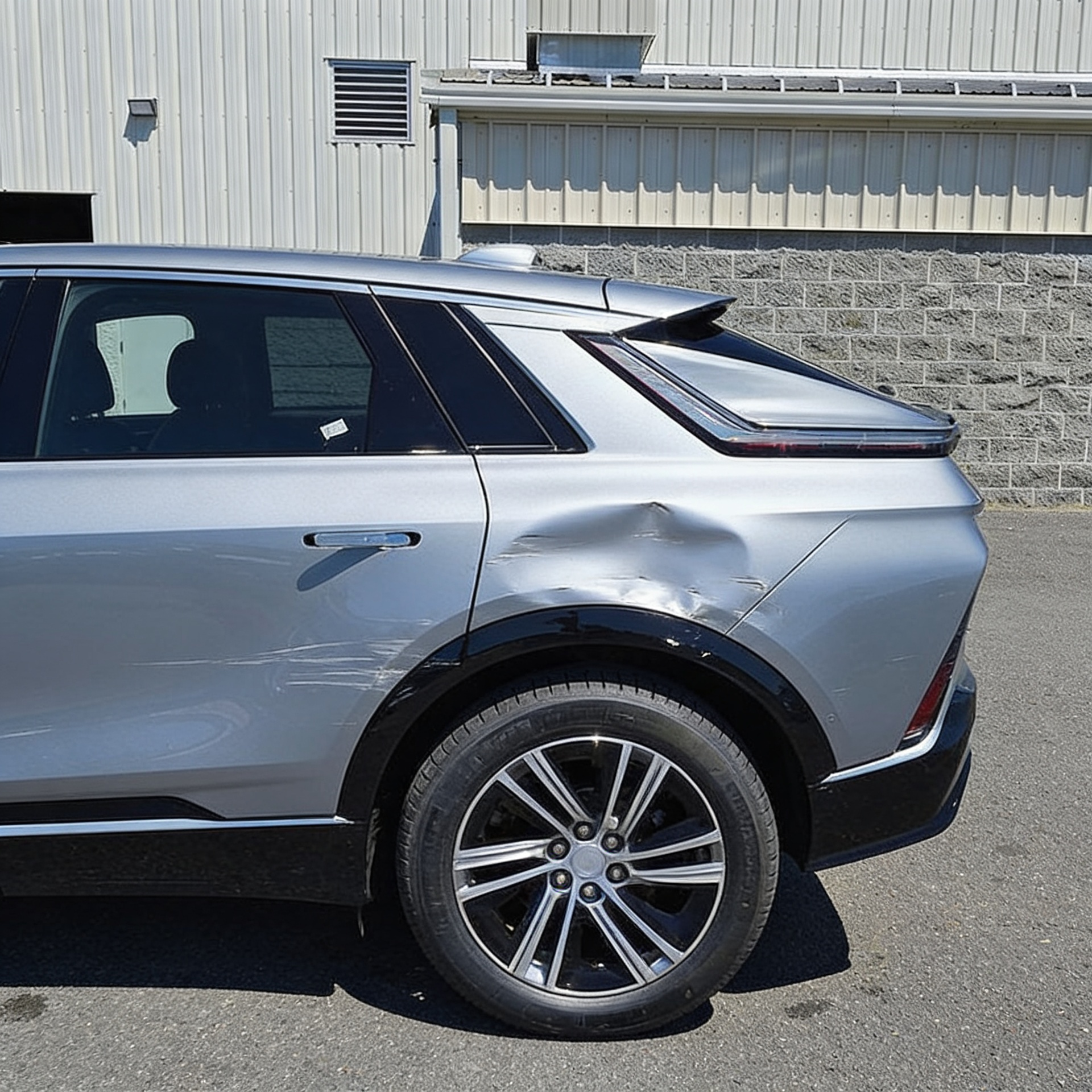 “Add realistic moderate body damage to this car - major scratches or moderate dents on the body panels. Make the damage look natural and real, as if from a minor collision. Preserve existing photo style and lighting as much as possible.”