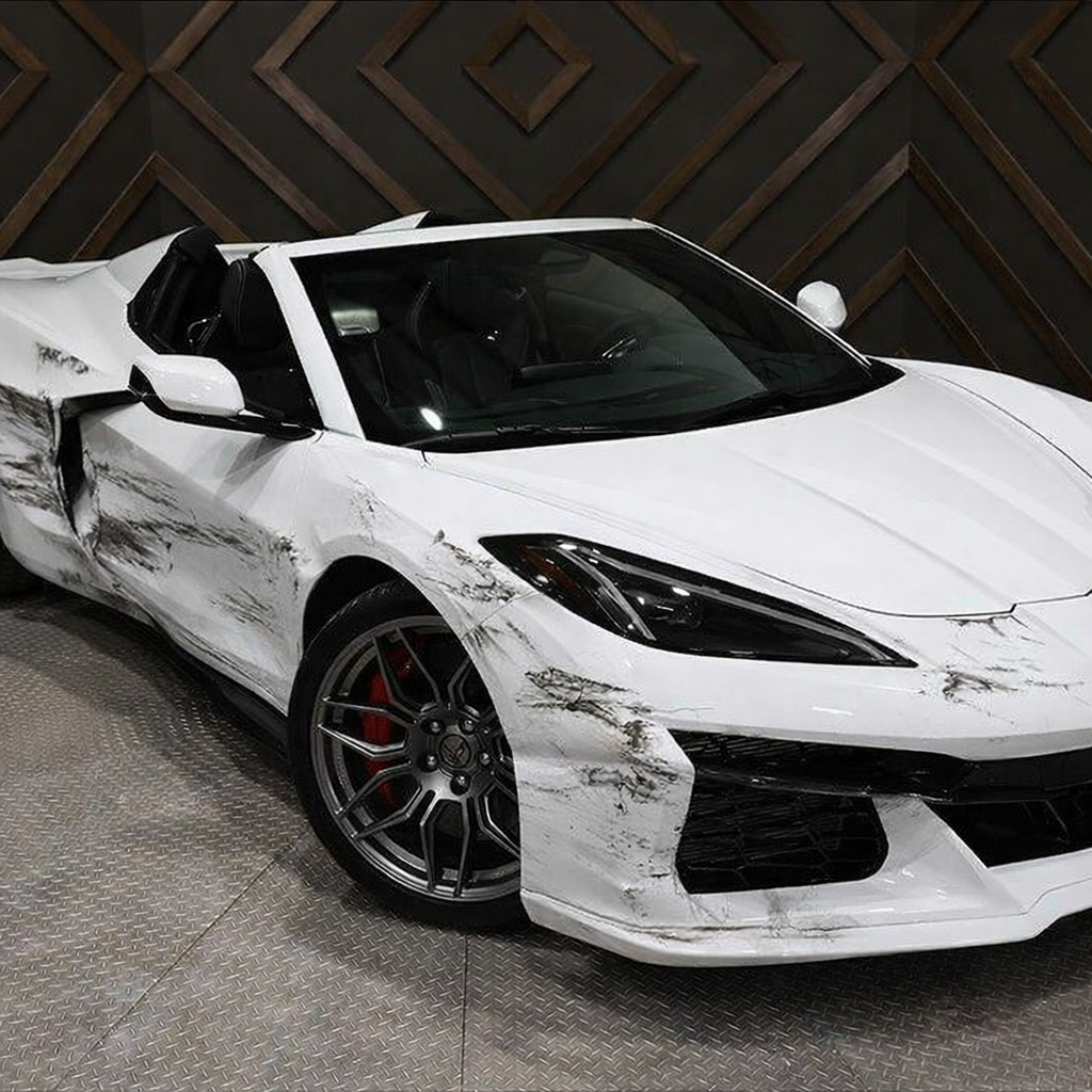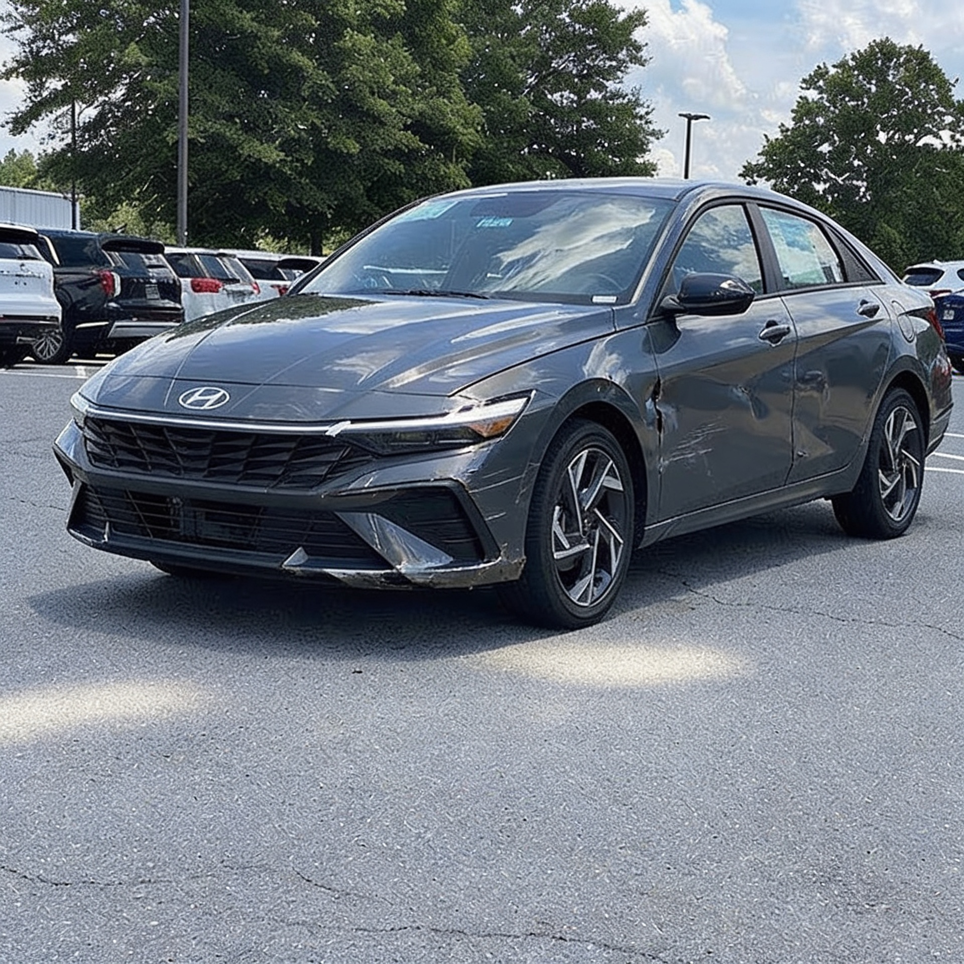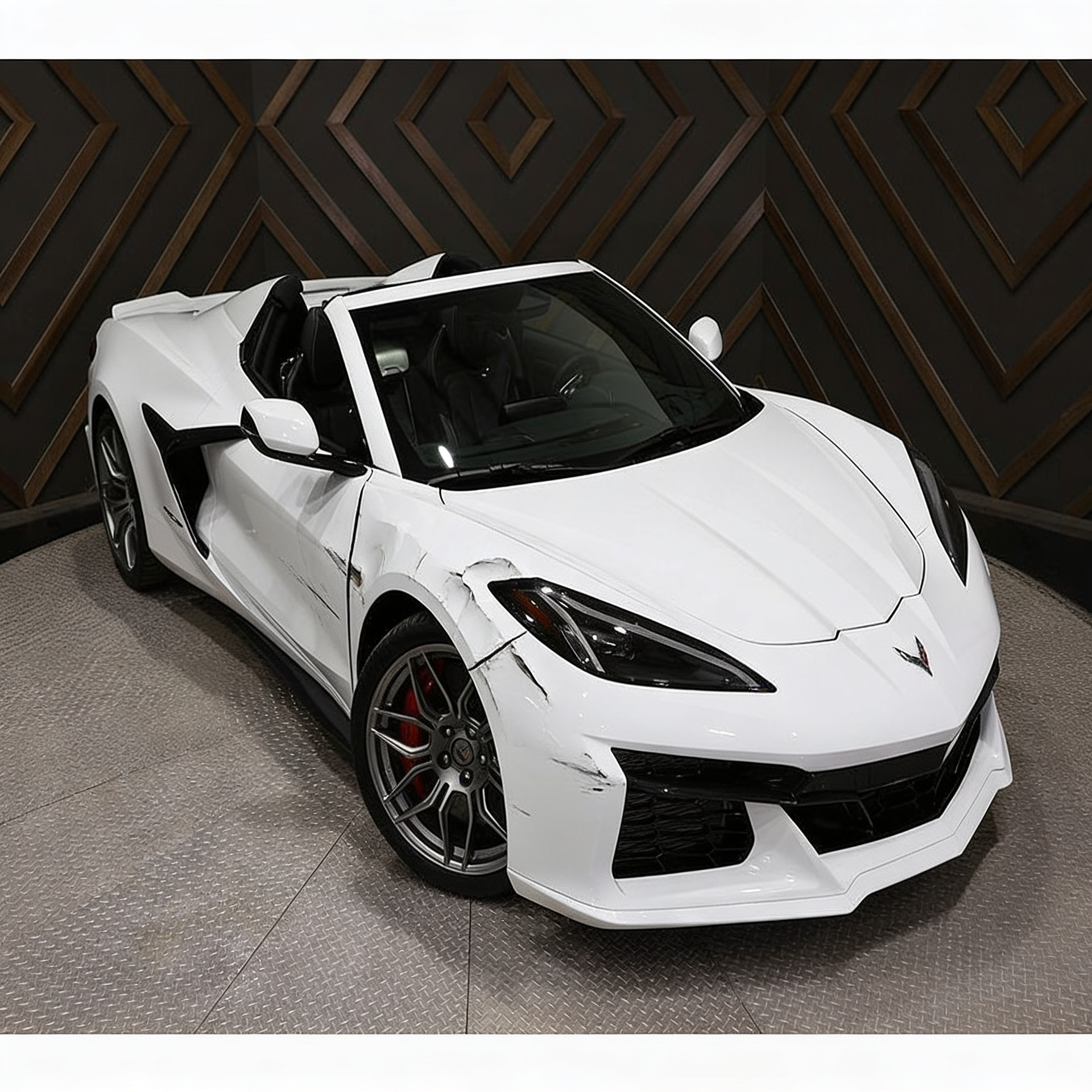 “Add realistic moderate body damage to this car - major scratches or moderate dents on the body panels. Make the damage look natural and real, as if from a minor collision. Preserve existing photo style and lighting as much as possible.”