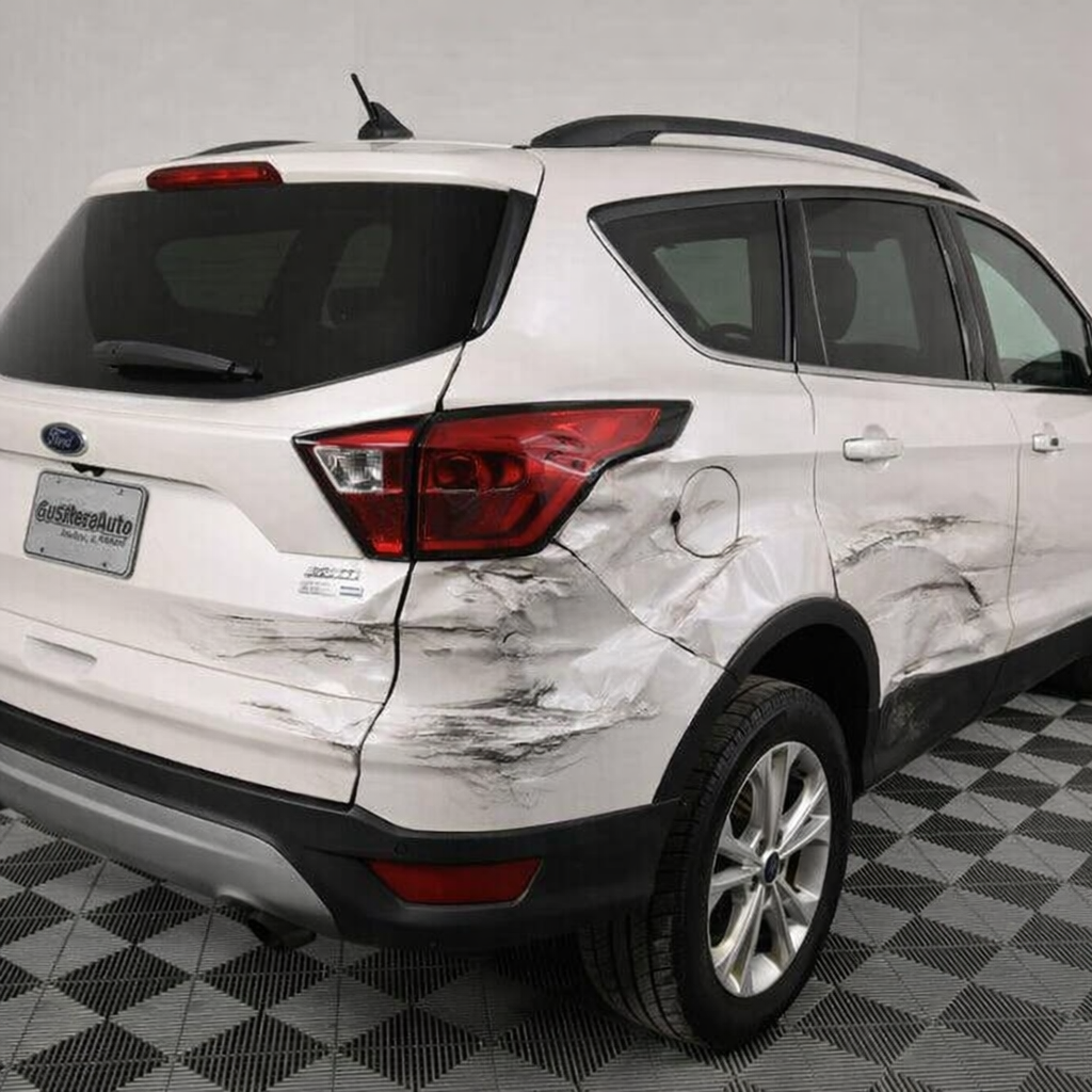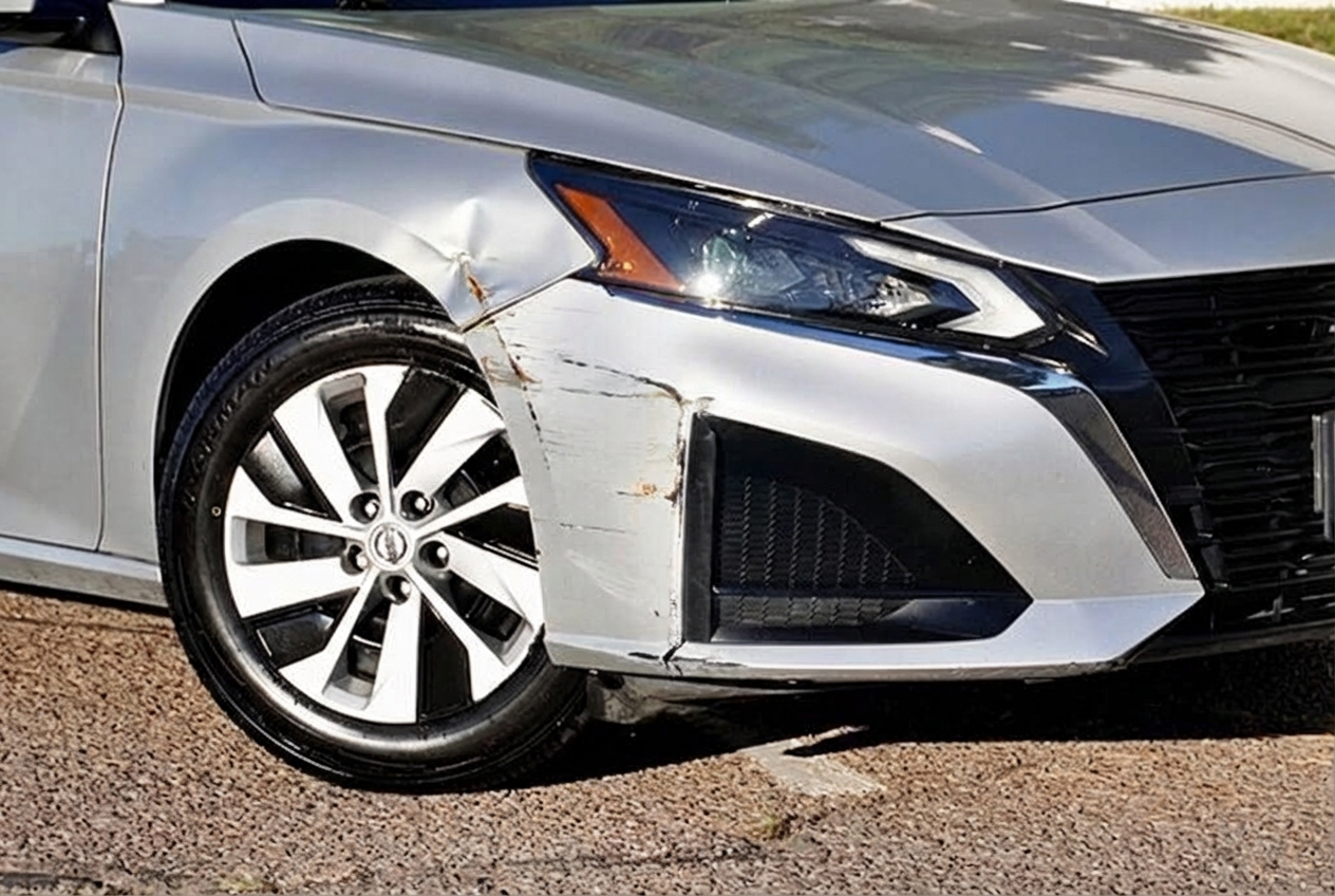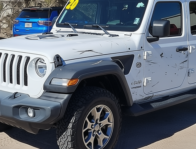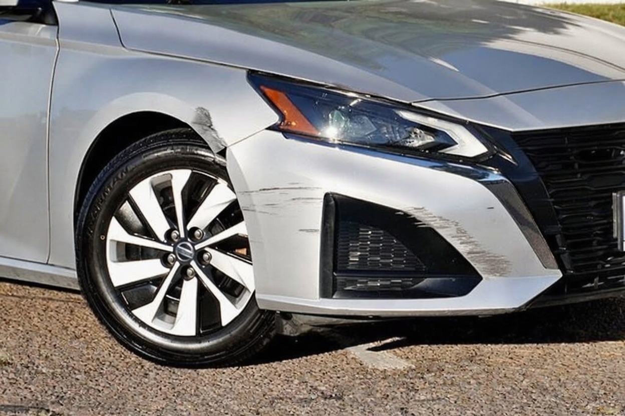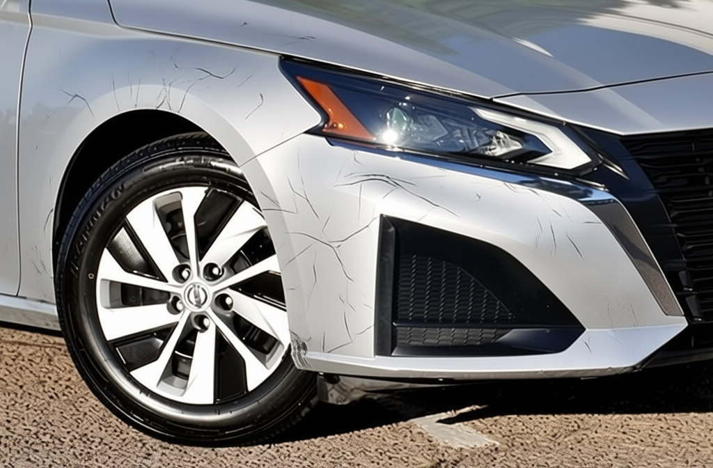 “Add realistic moderate body damage to this car - major scratches or moderate dents on the body panels. Make the damage look natural and real, as if from a minor collision. Preserve existing photo style and lighting as much as possible.”