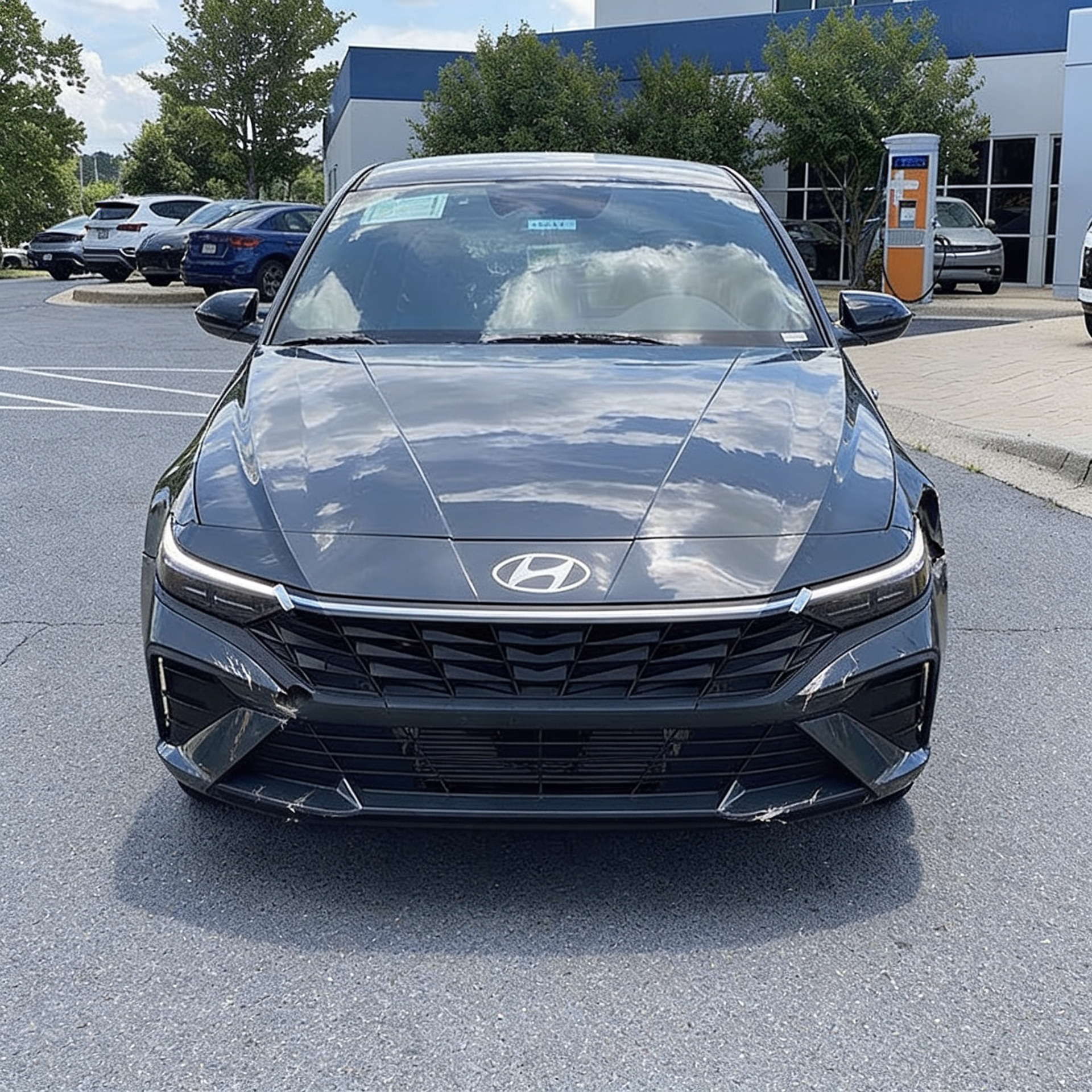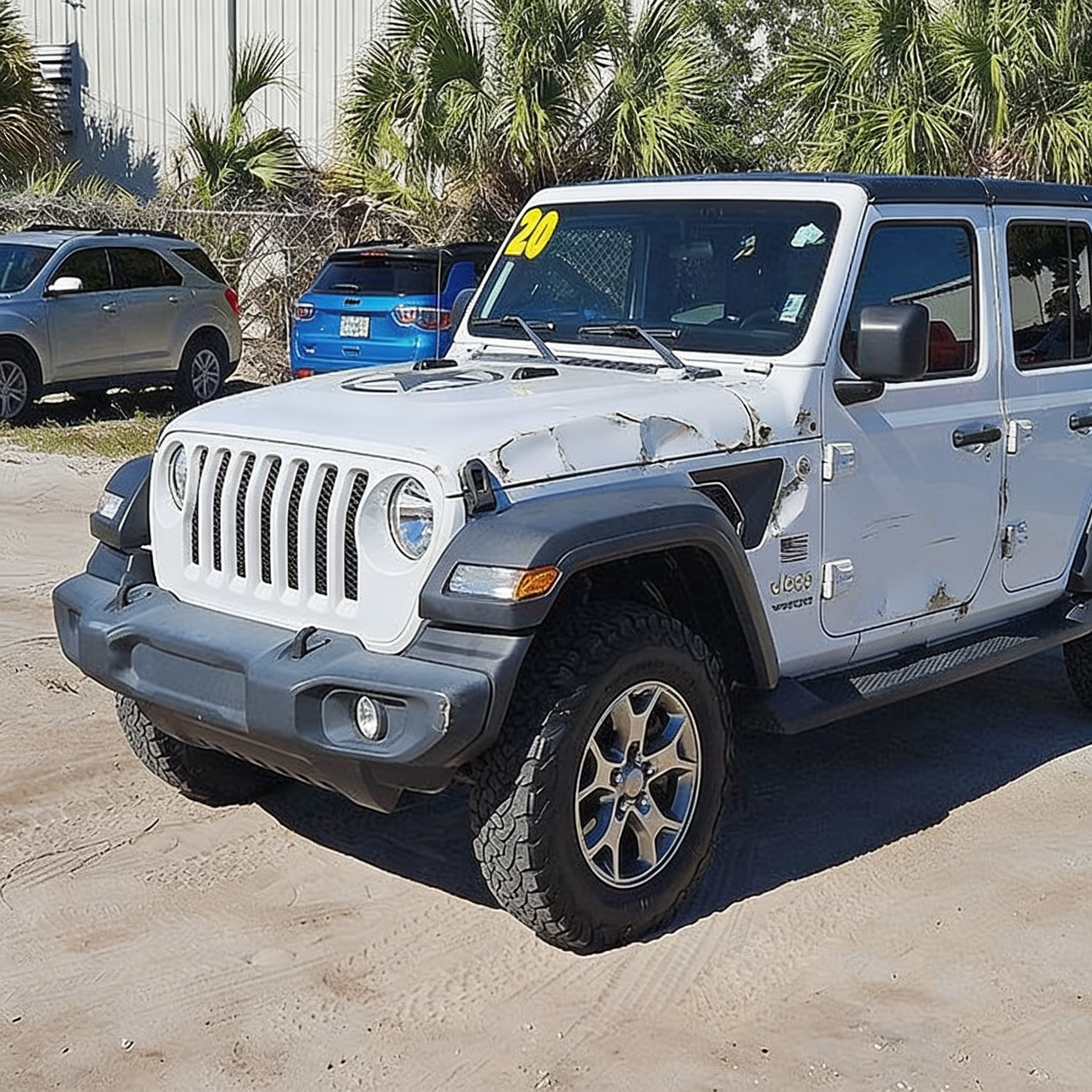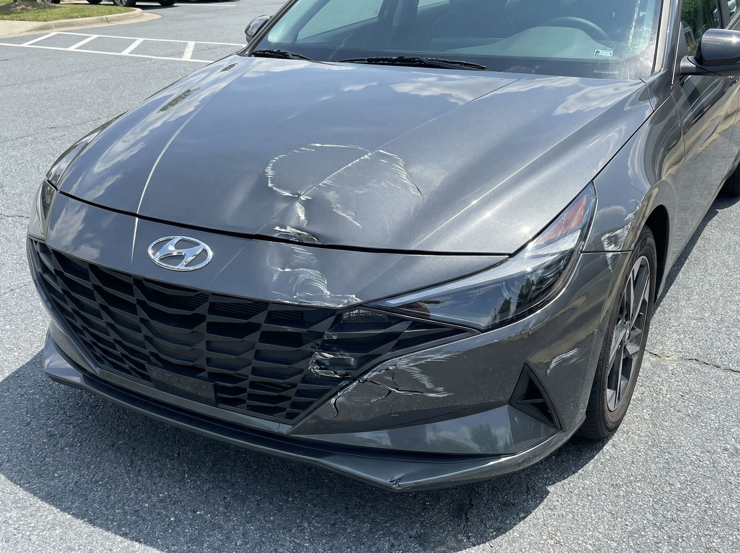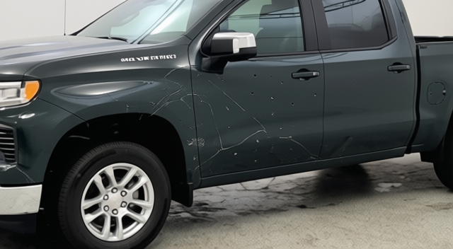 “Add realistic moderate body damage to this car - major scratches or moderate dents on the body panels. Make the damage look natural and real, as if from a minor collision. Preserve existing photo style and lighting as much as possible.”