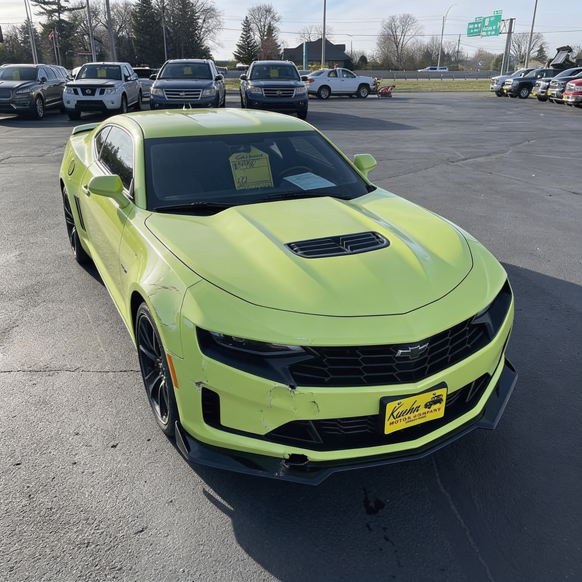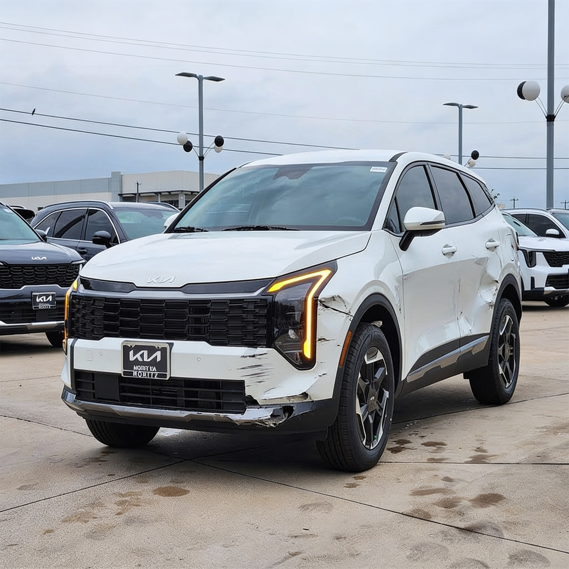 “Add realistic moderate body damage to this car - major scratches or moderate dents on the body panels. Make the damage look natural and real, as if from a minor collision. Preserve existing photo style and lighting as much as possible.”