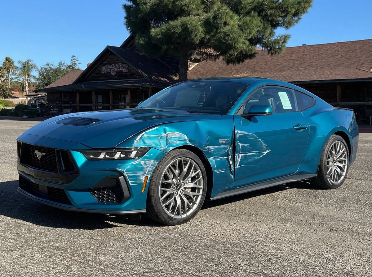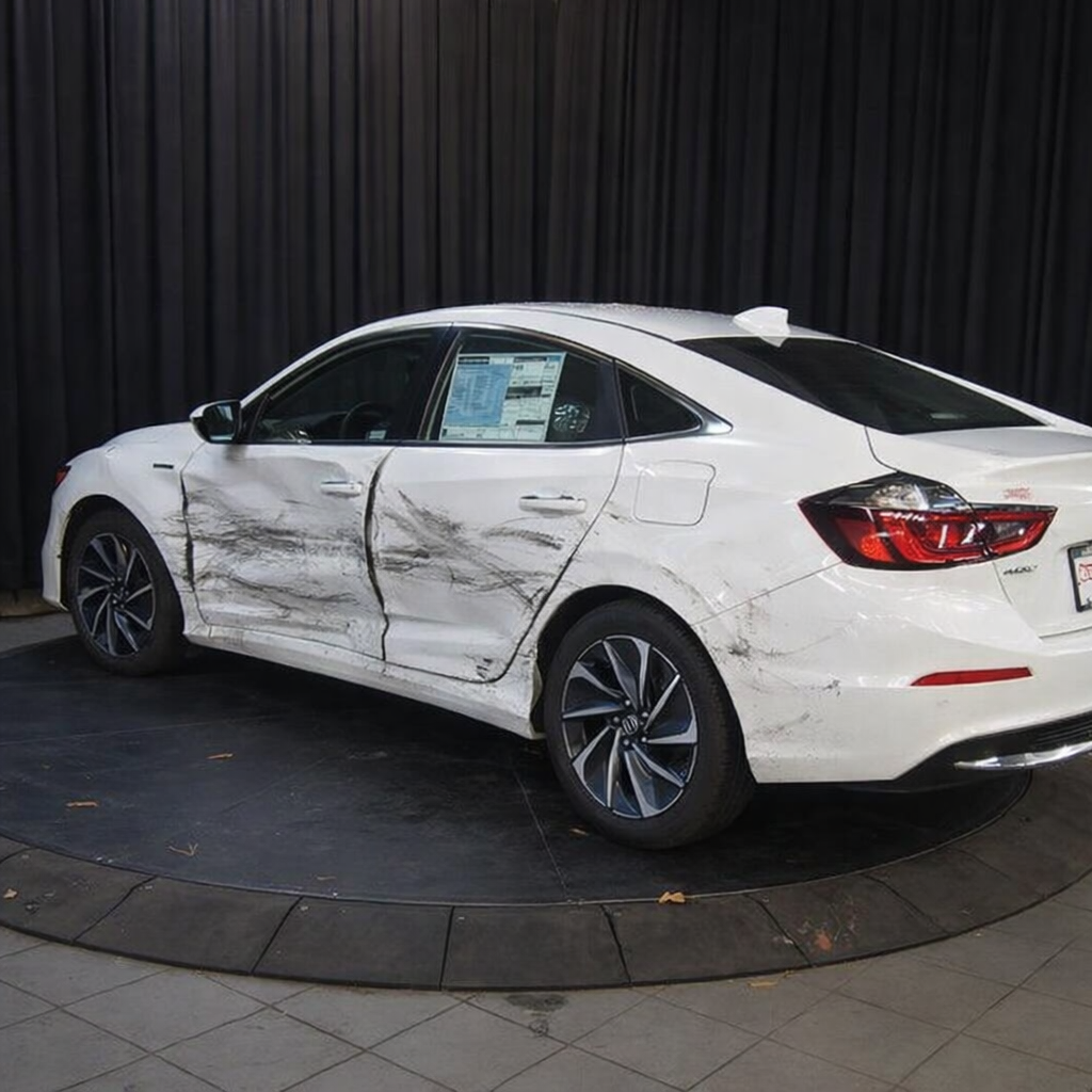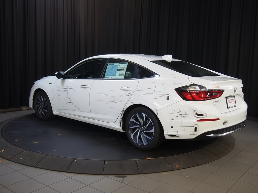 “Add realistic moderate body damage to this car - major scratches or moderate dents on the body panels. Make the damage look natural and real, as if from a minor collision. Preserve existing photo style and lighting as much as possible.”