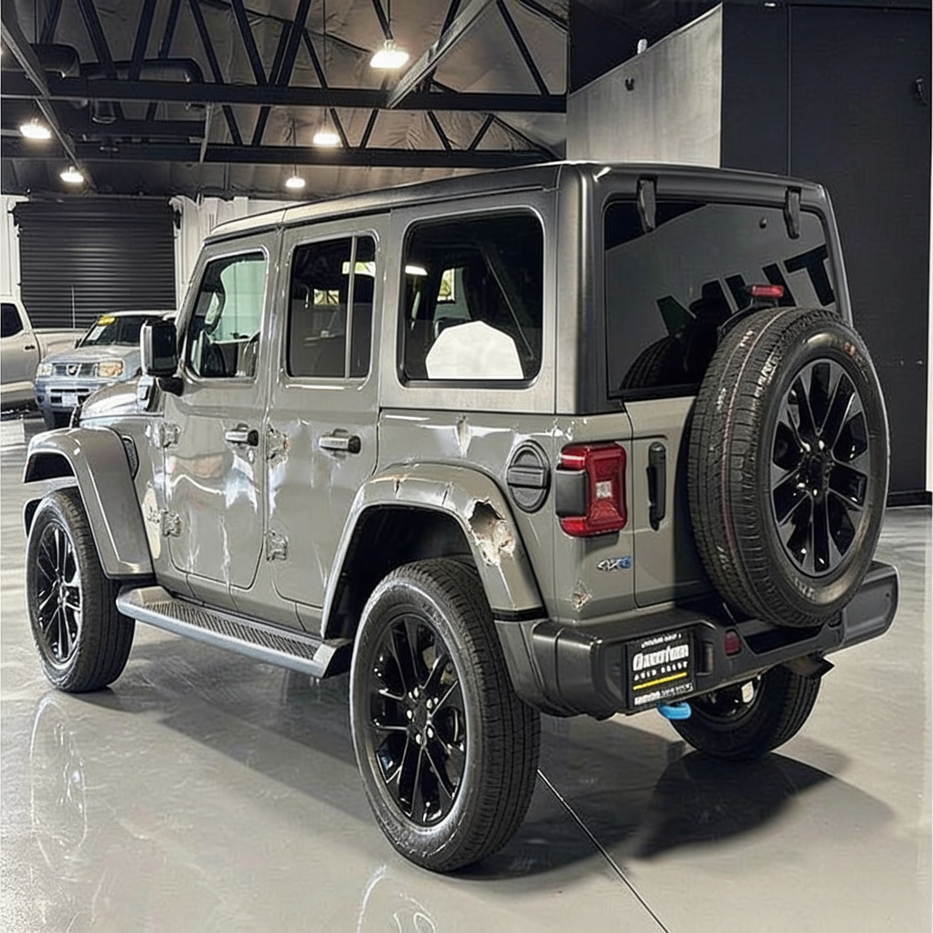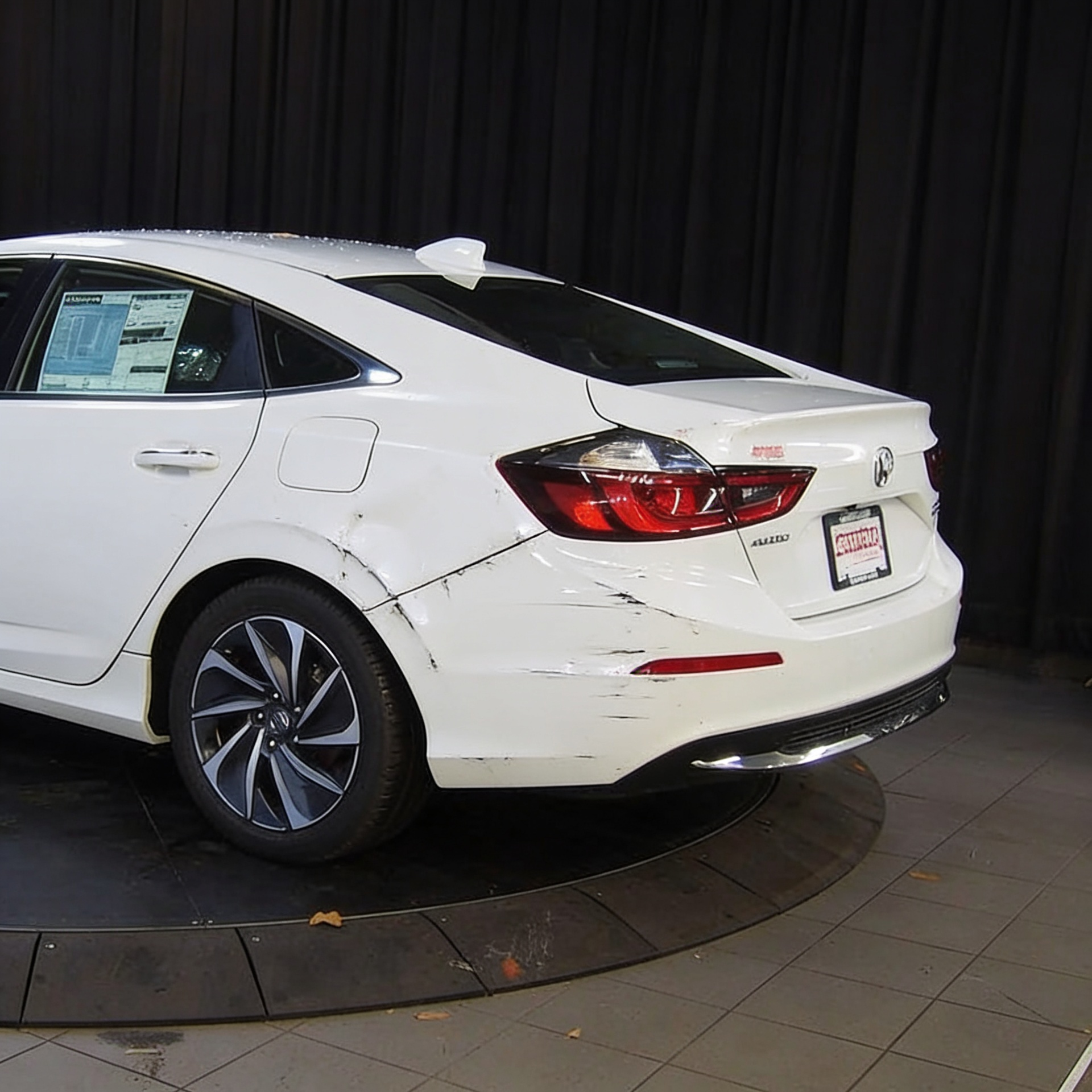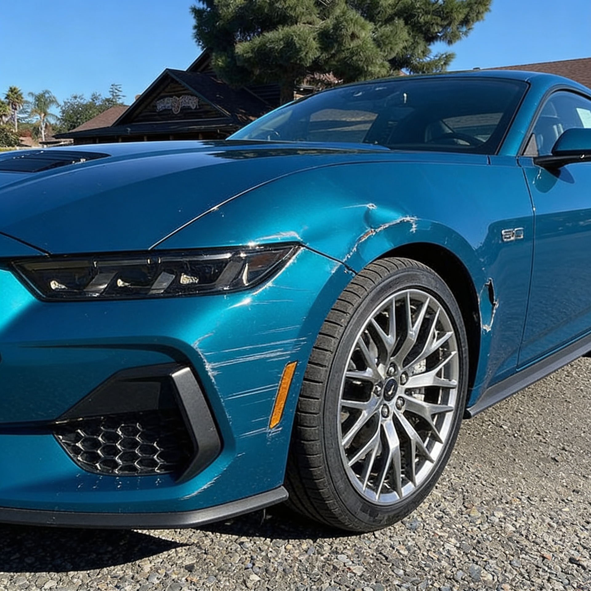 “Add realistic moderate body damage to this car - major scratches or moderate dents on the body panels. Make the damage look natural and real, as if from a minor collision. Preserve existing photo style and lighting as much as possible.”