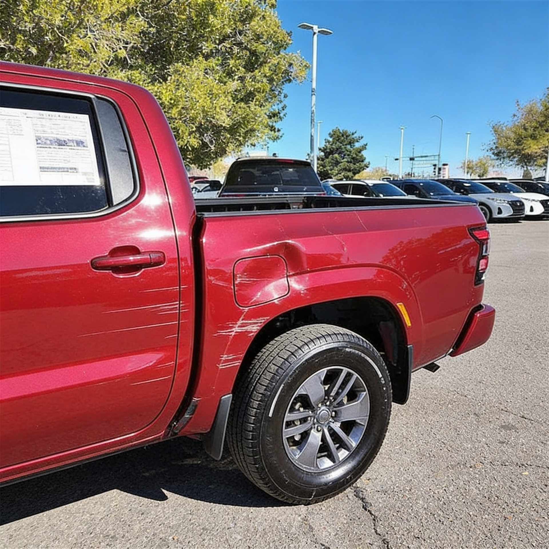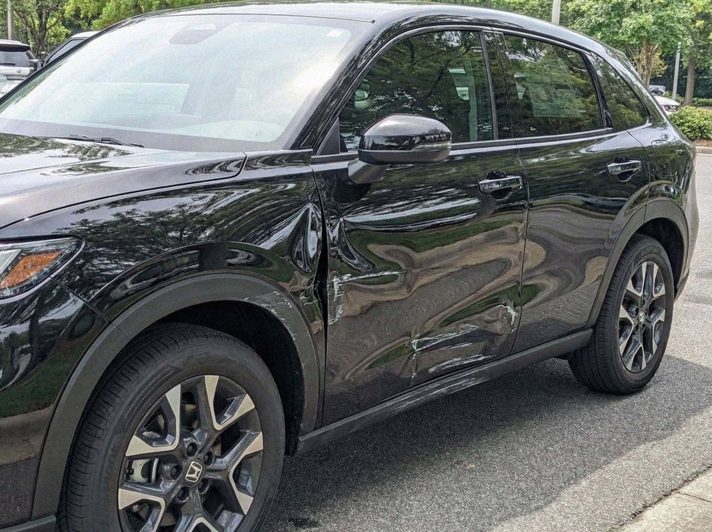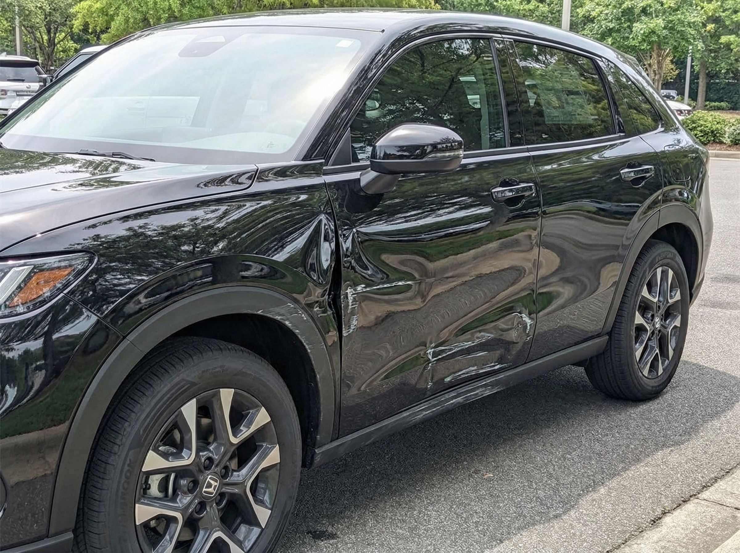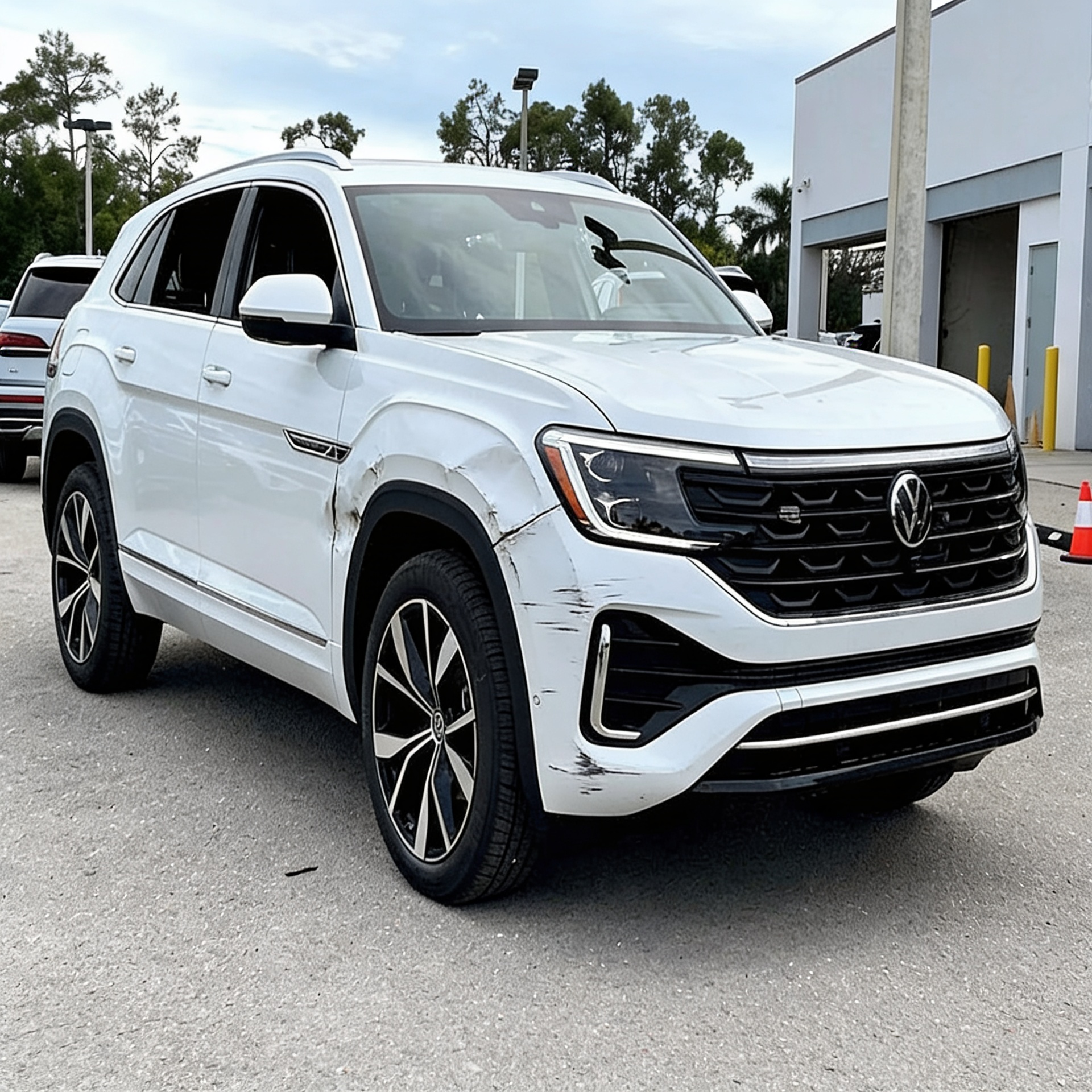 “Add realistic moderate body damage to this car - major scratches or moderate dents on the body panels. Make the damage look natural and real, as if from a minor collision. Preserve existing photo style and lighting as much as possible.”