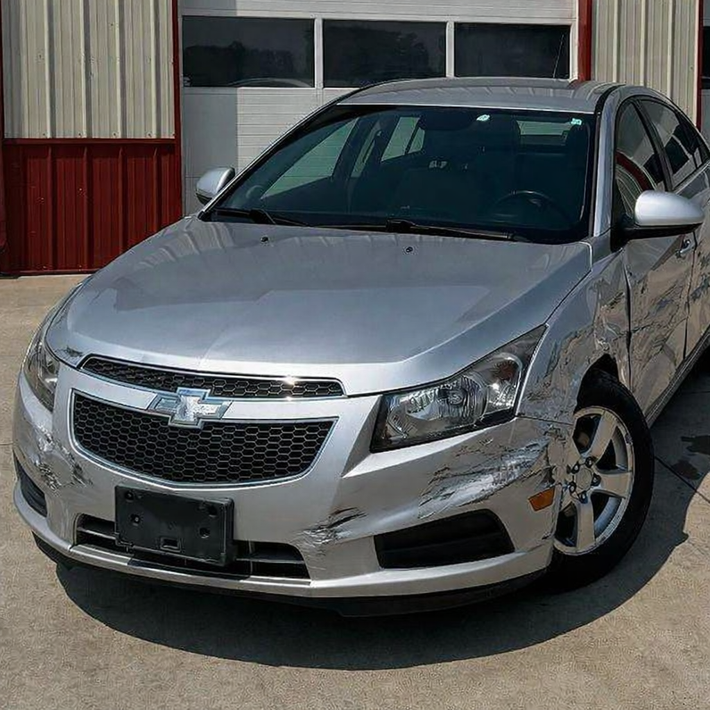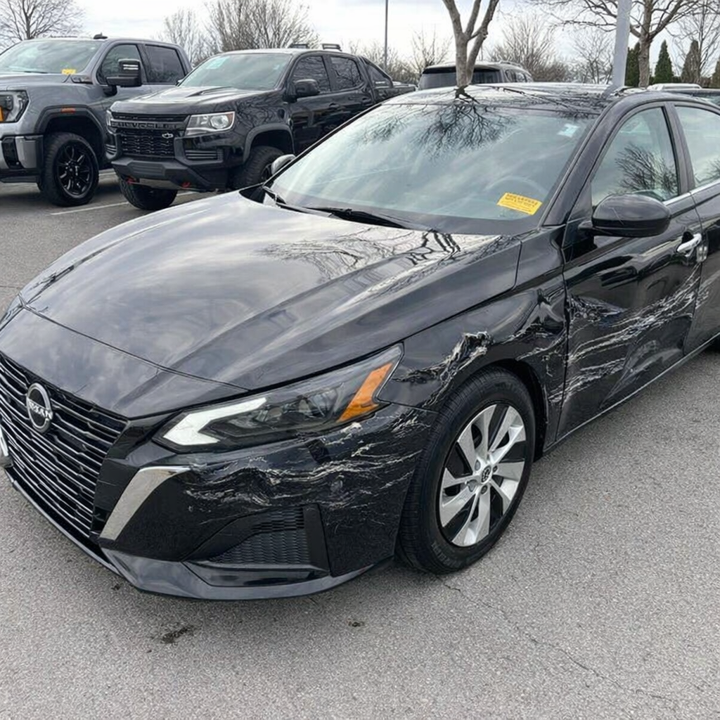 “Add realistic moderate body damage to this car - major scratches or moderate dents on the body panels. Make the damage look natural and real, as if from a minor collision. Preserve existing photo style and lighting as much as possible.”