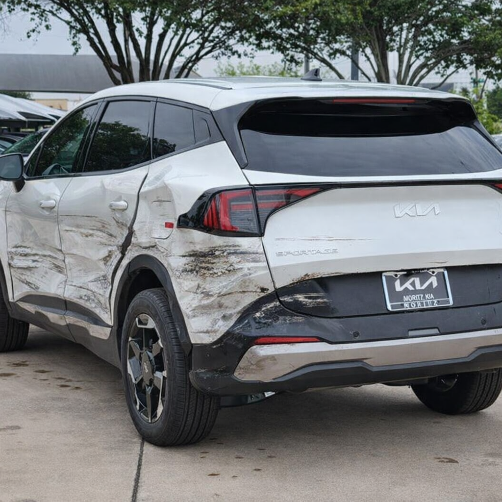 “Add realistic moderate body damage to this car - major scratches or moderate dents on the body panels. Make the damage look natural and real, as if from a minor collision. Preserve existing photo style and lighting as much as possible.”