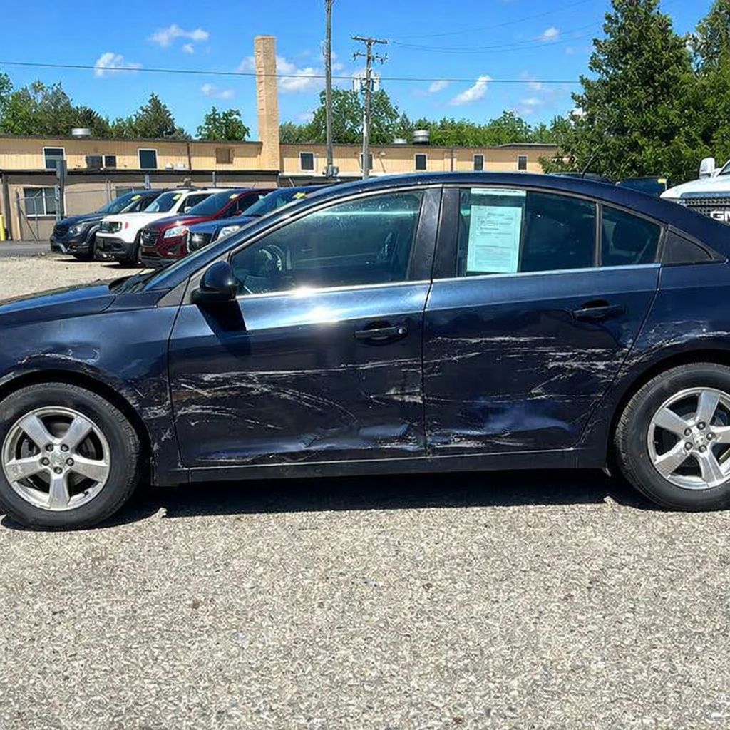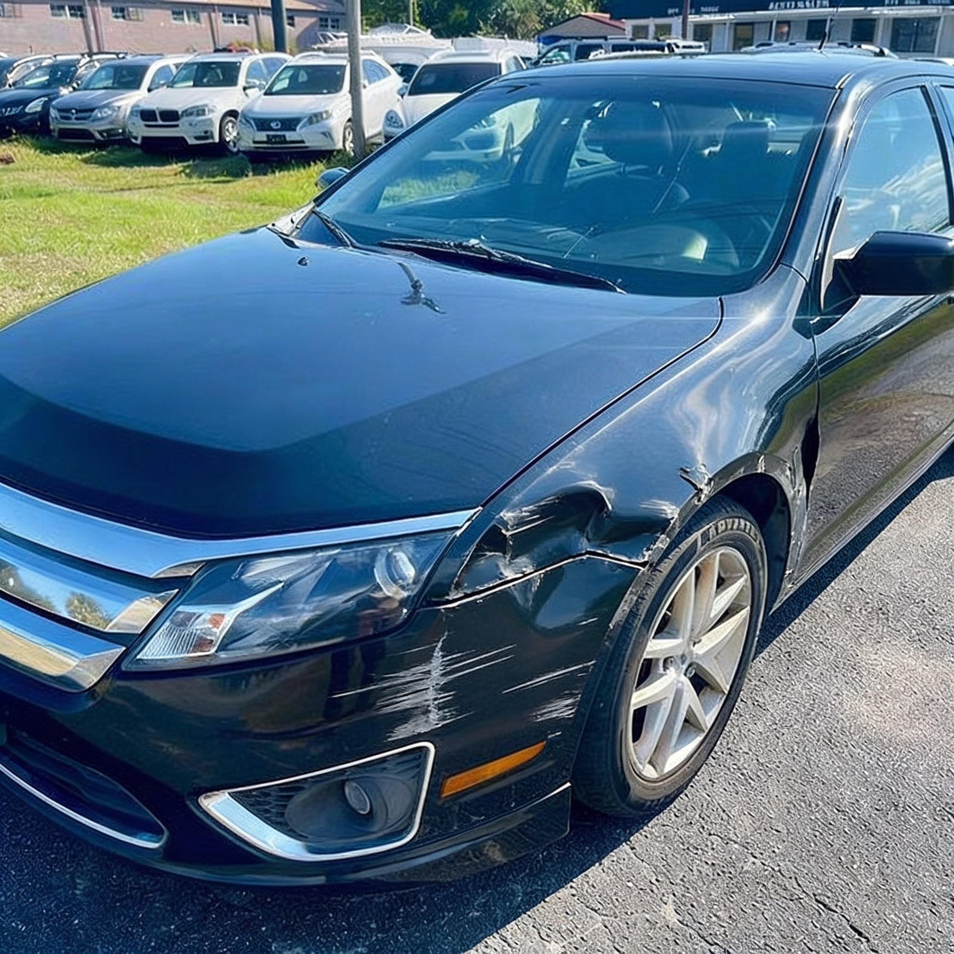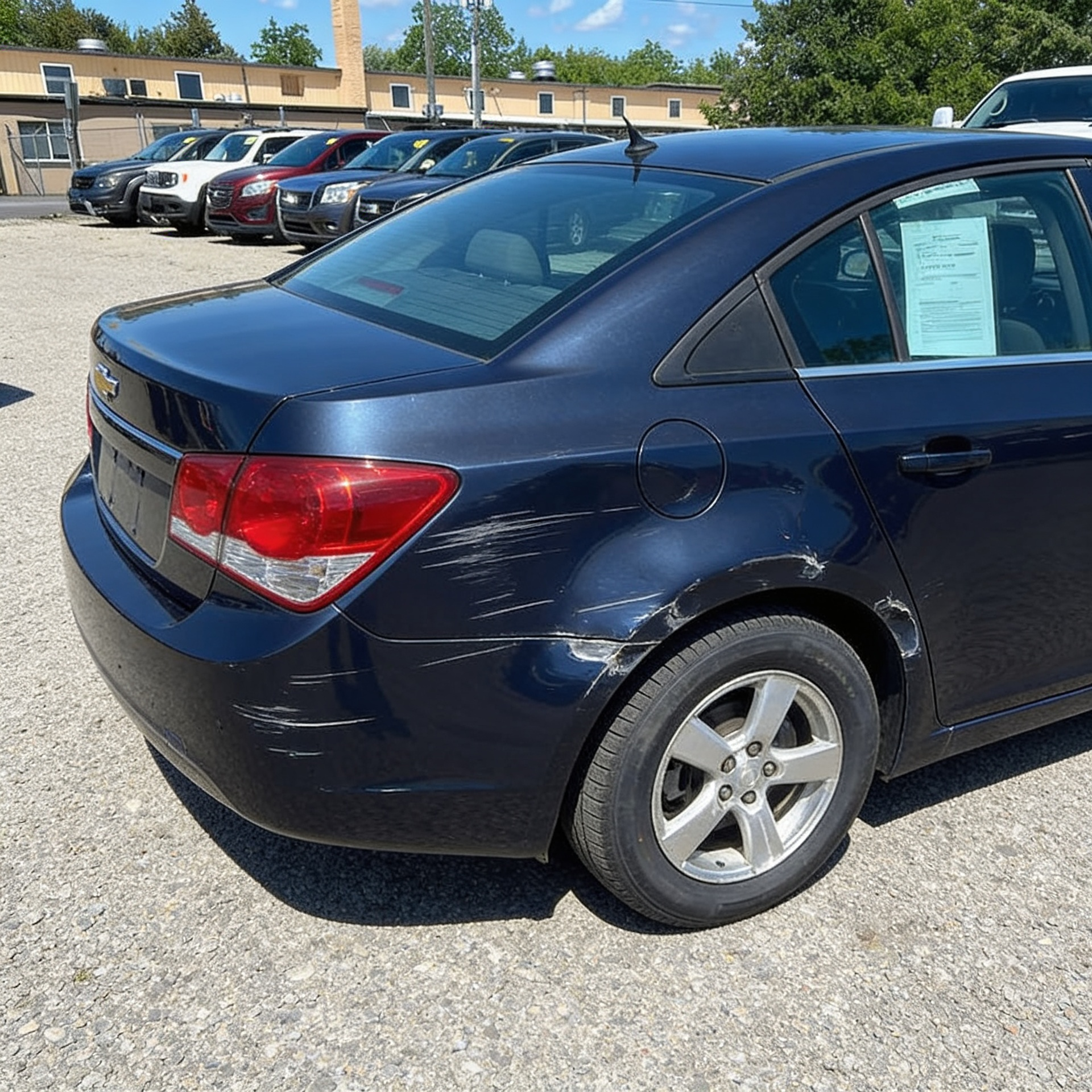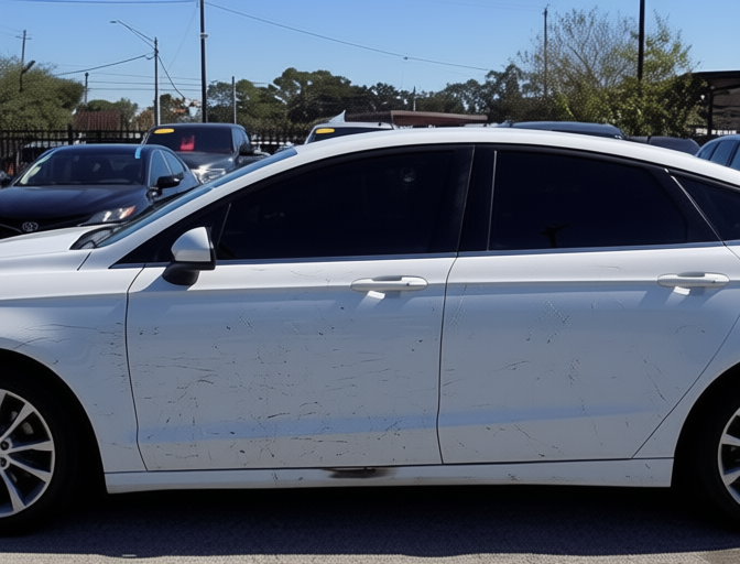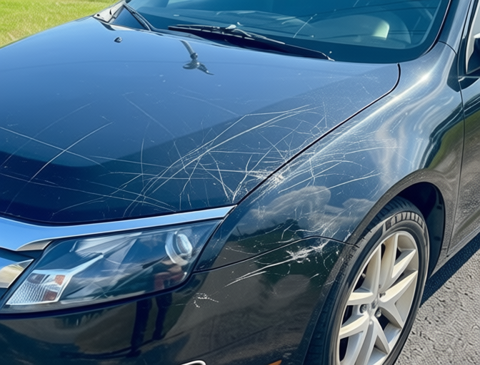 “Add realistic moderate body damage to this car - major scratches or moderate dents on the body panels. Make the damage look natural and real, as if from a minor collision. Preserve existing photo style and lighting as much as possible.”