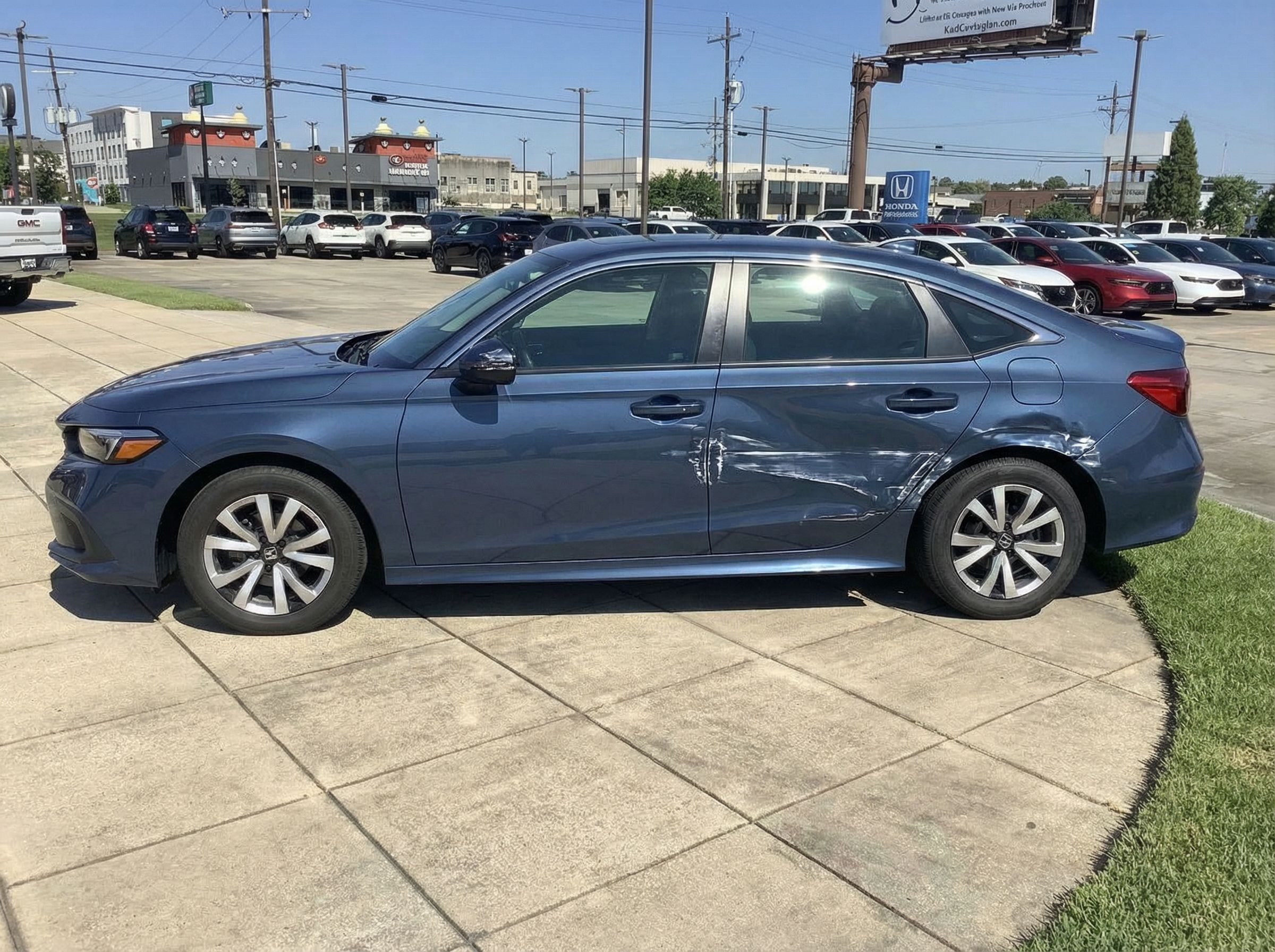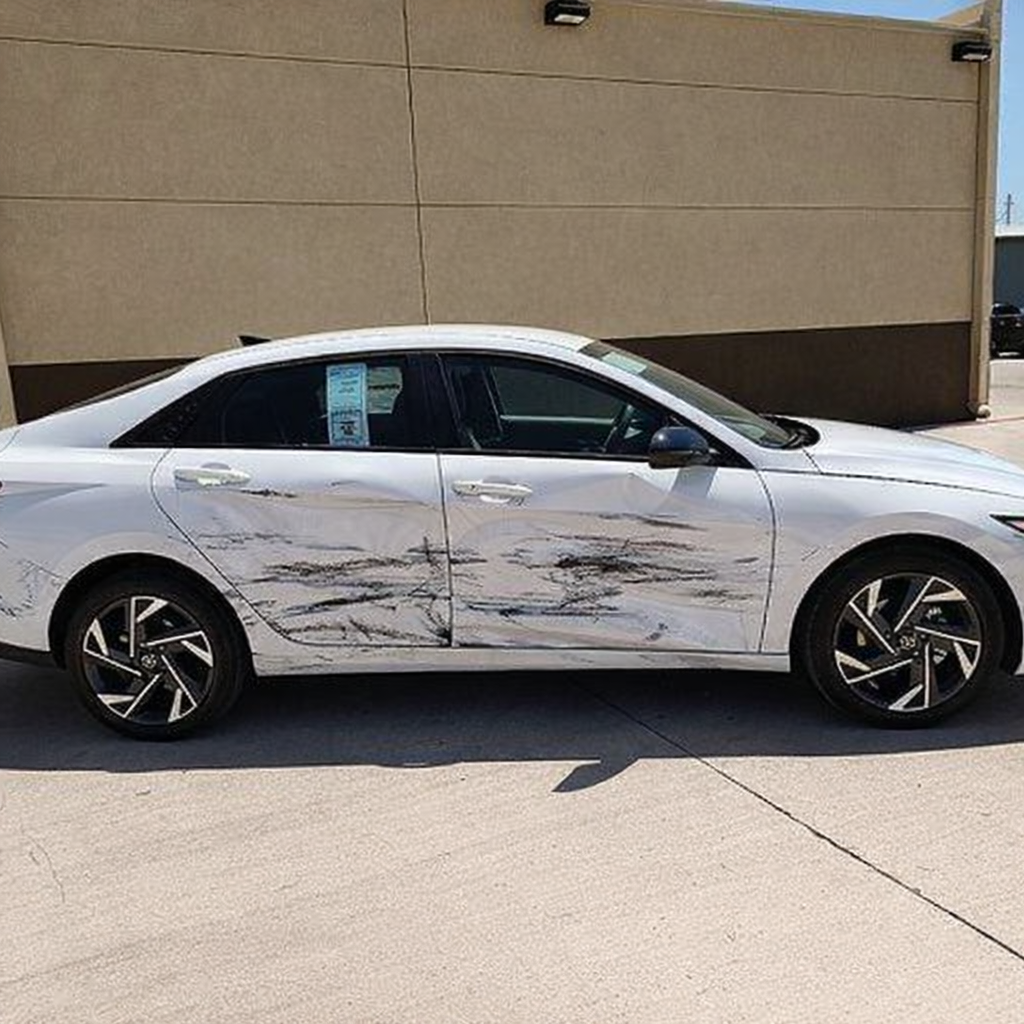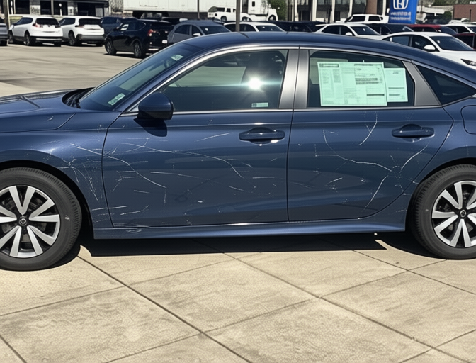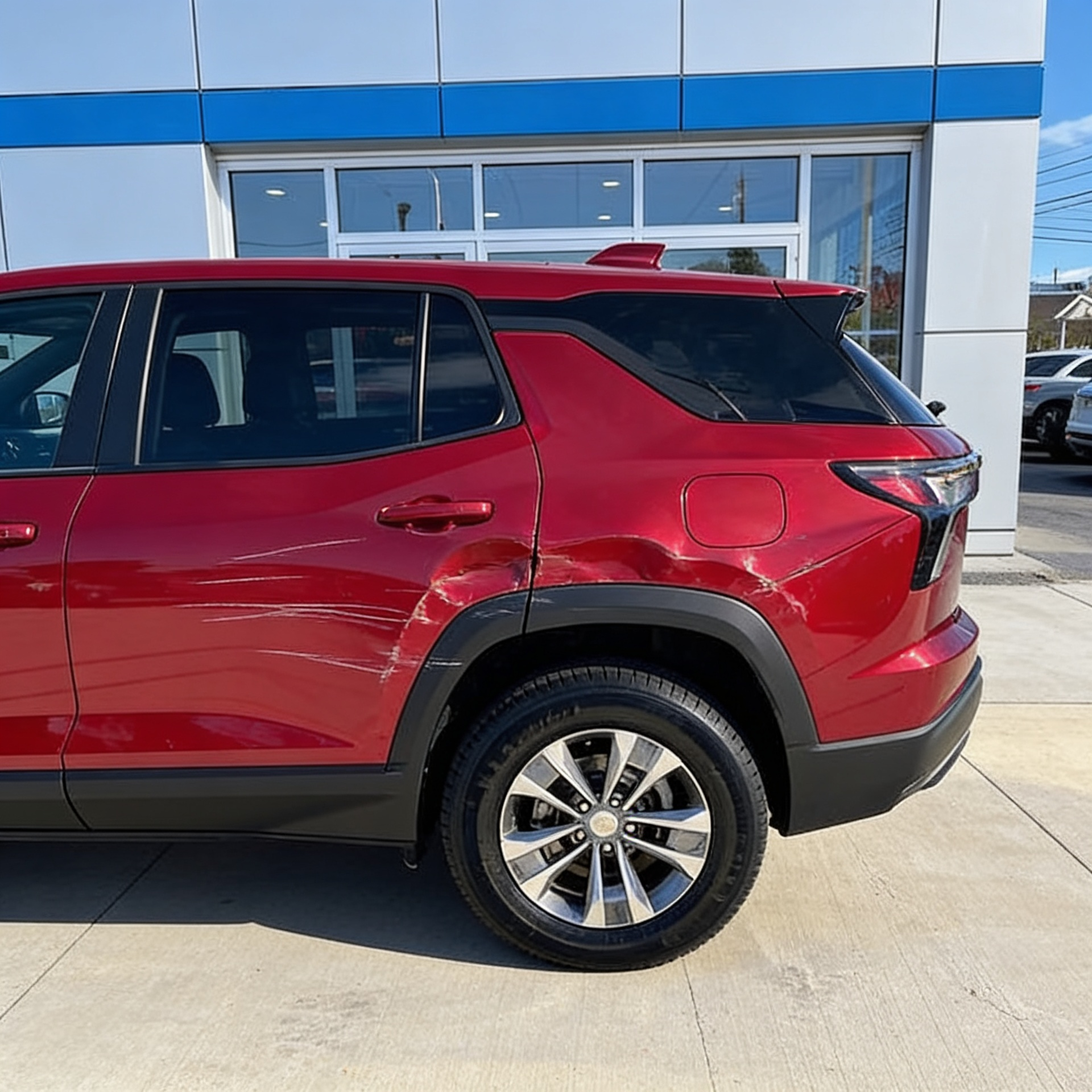 “Add realistic moderate body damage to this car - major scratches or moderate dents on the body panels. Make the damage look natural and real, as if from a minor collision. Preserve existing photo style and lighting as much as possible.”