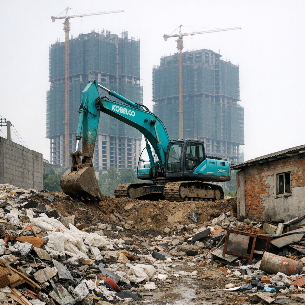 Construction: We took real construction site photos, converted them to a text prompt using AI, and then used AI to generate a new image.