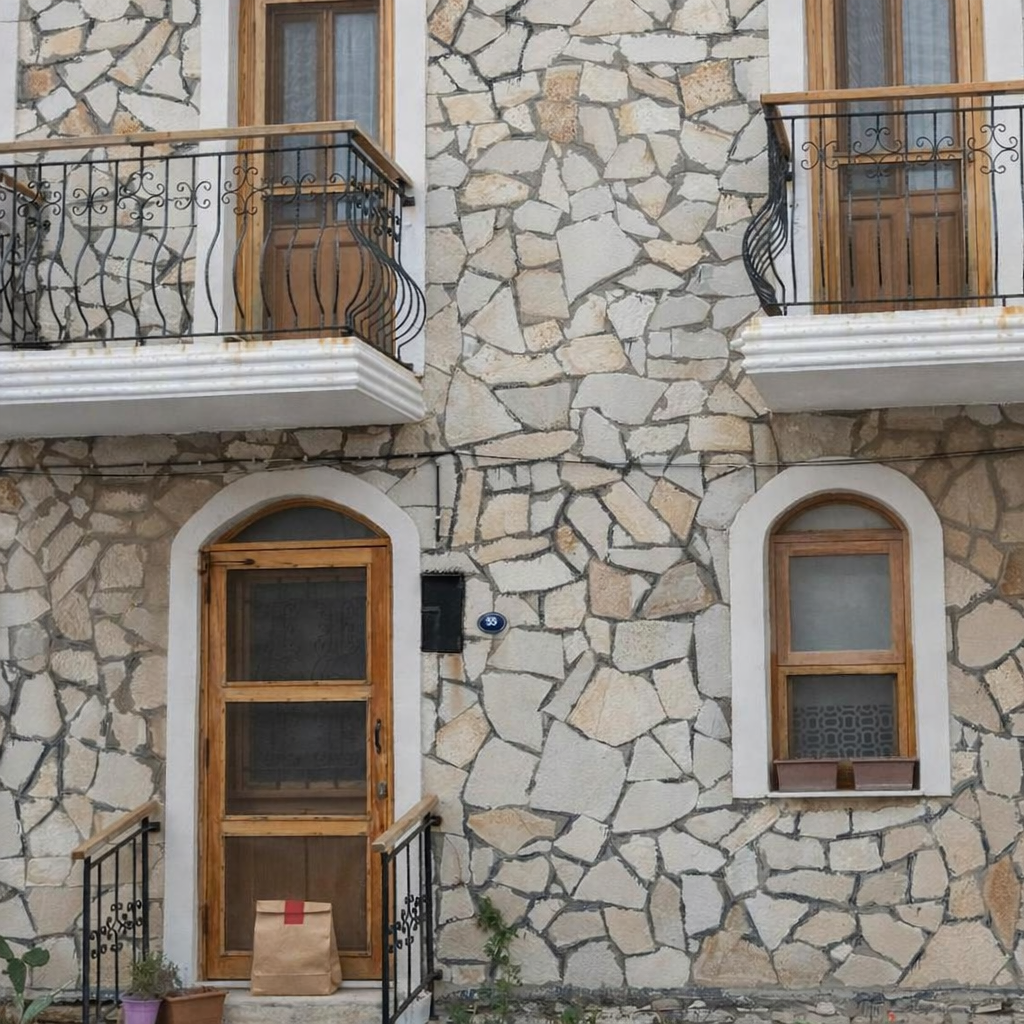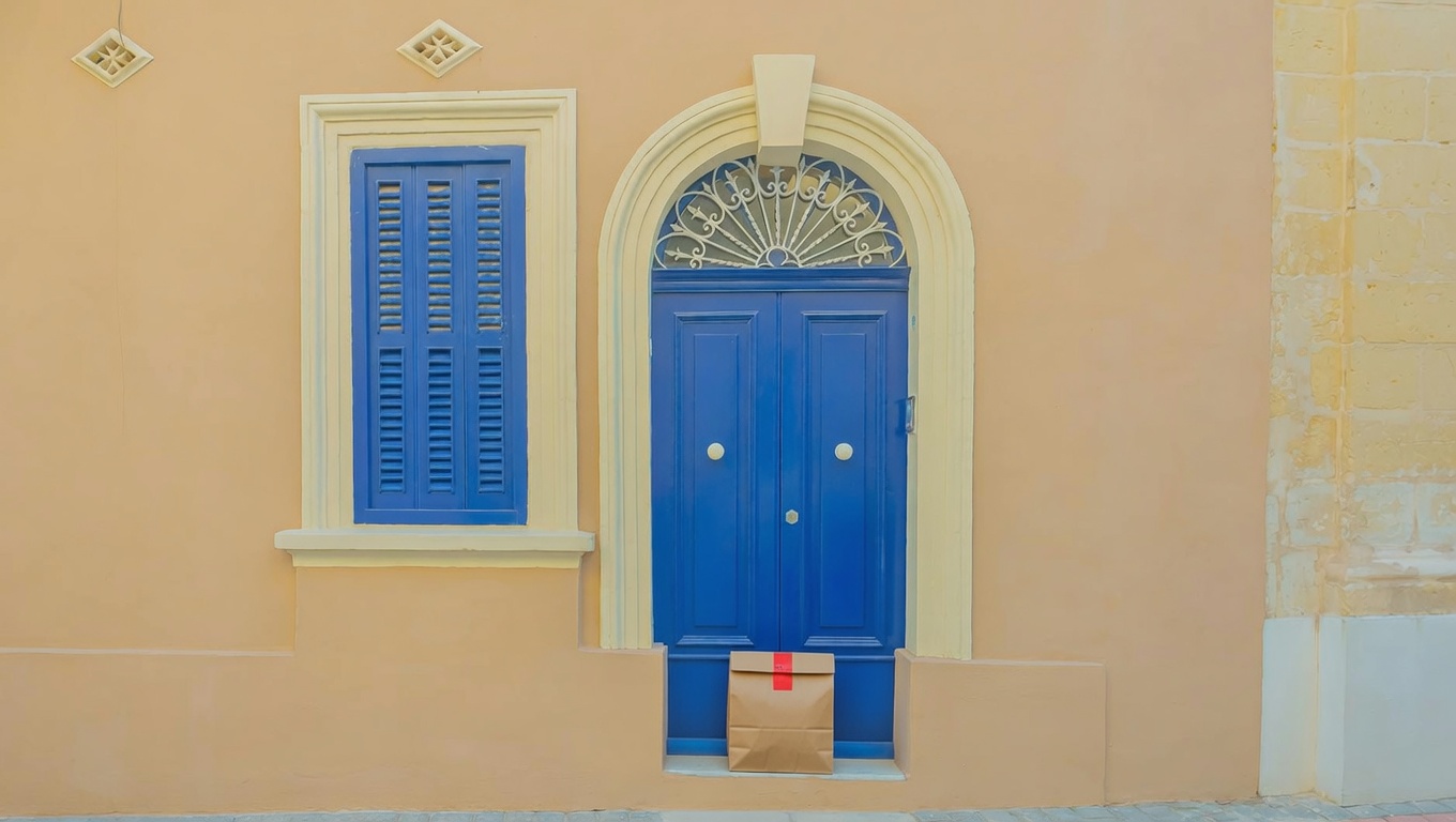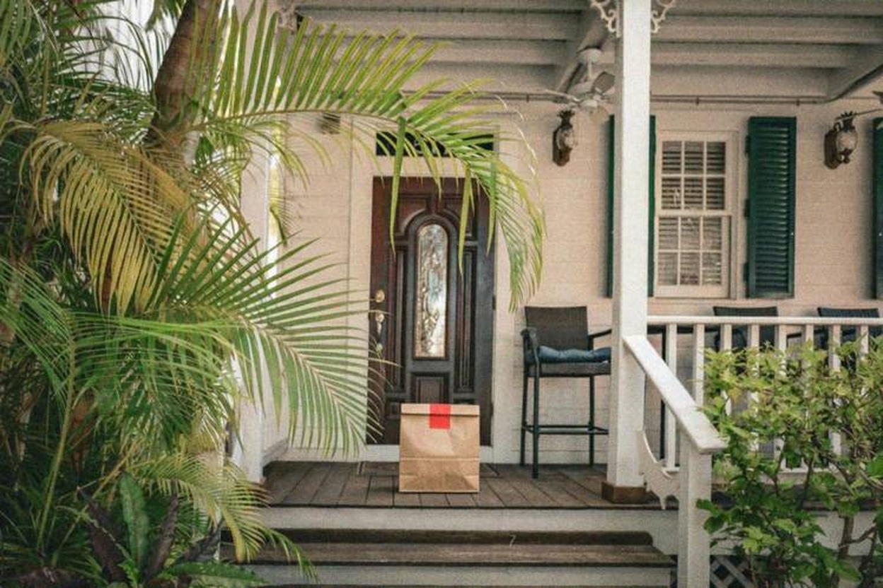 Delivery: We took real front door photos and used AI to add a fake delivery bag to the photo.