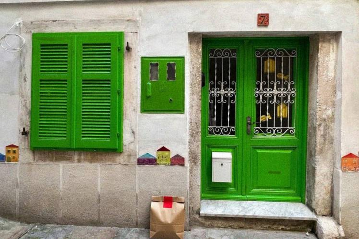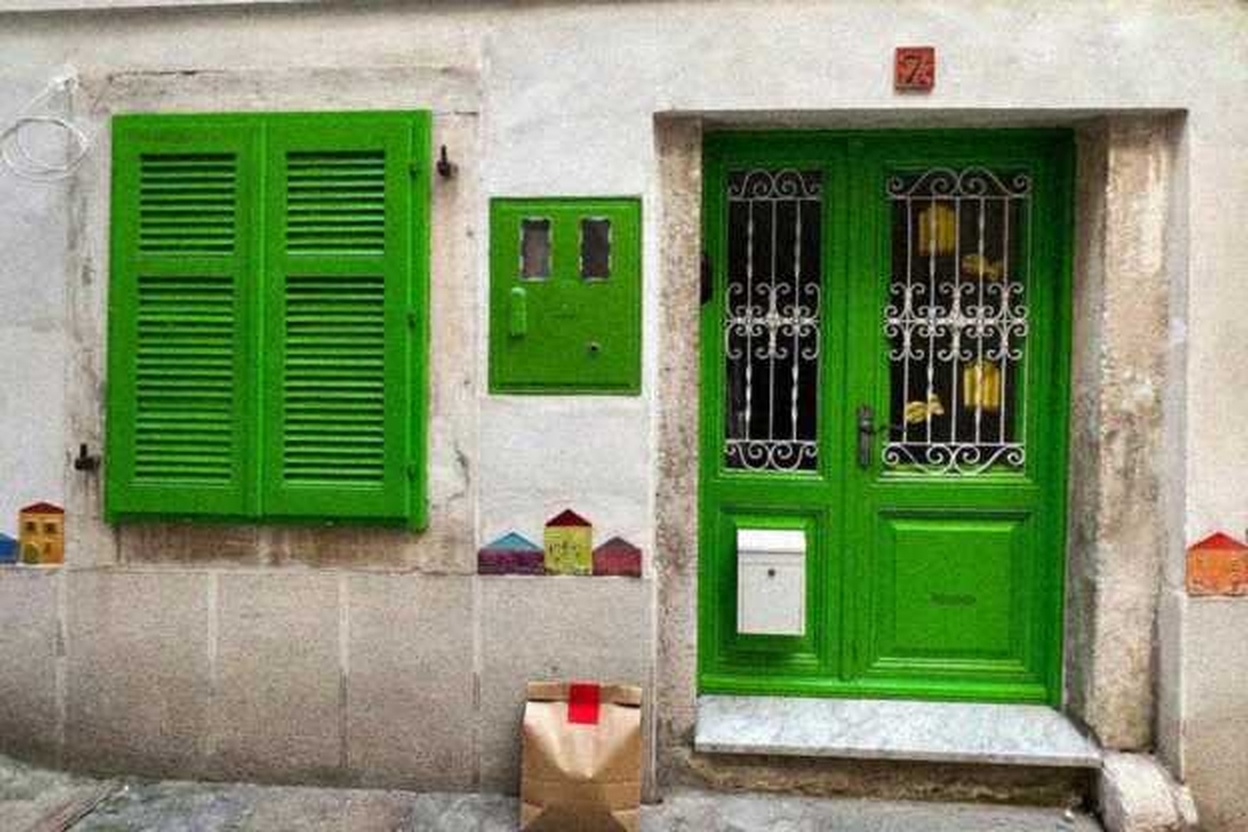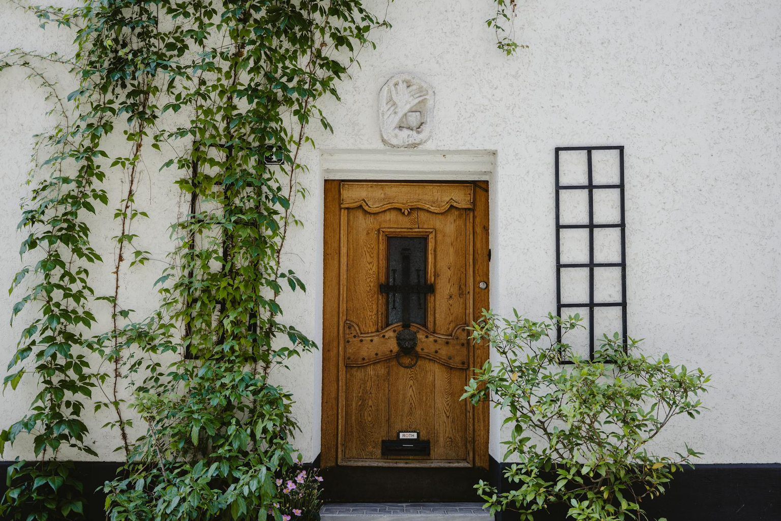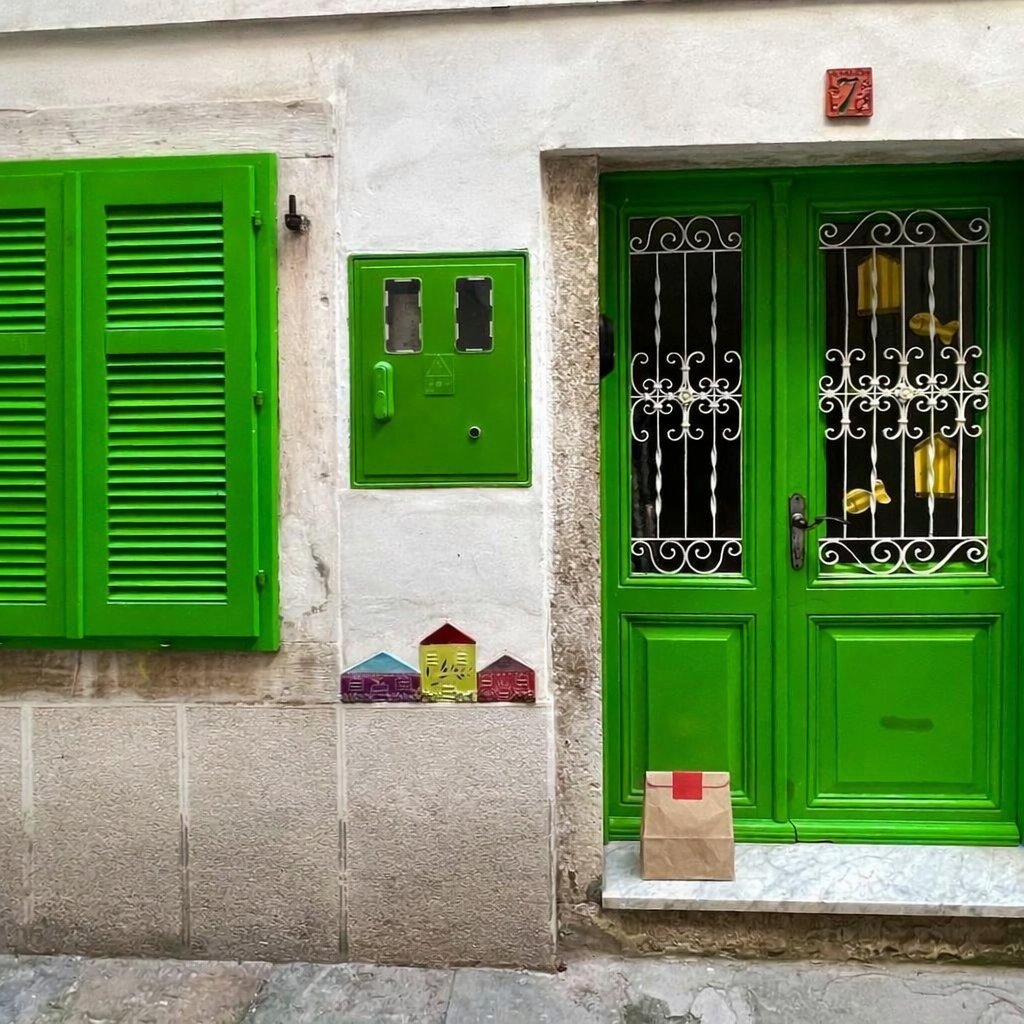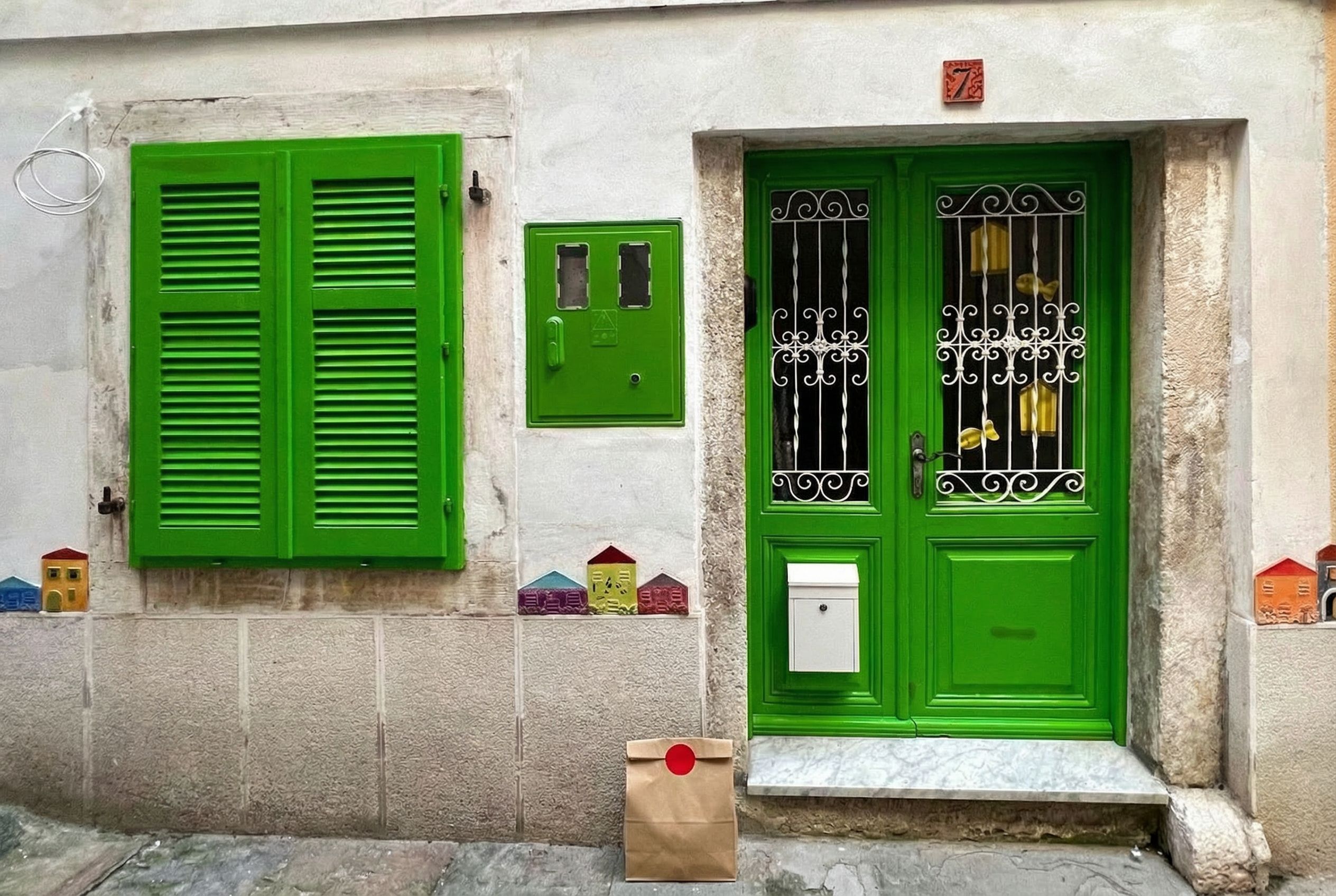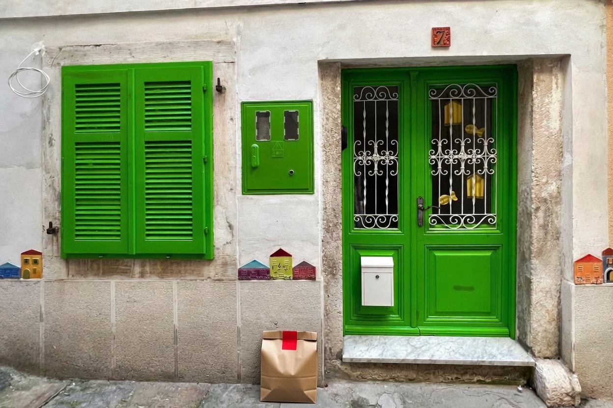 “In this existing photo, add a food delivery paper bag on the ground right in front of the door. The bag should be a small brown paper bag with a solid plain red sticker on the top keeping it closed. Preserve existing photo style and lighting as much as possible.”