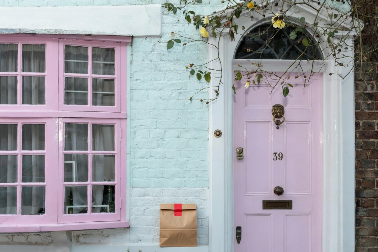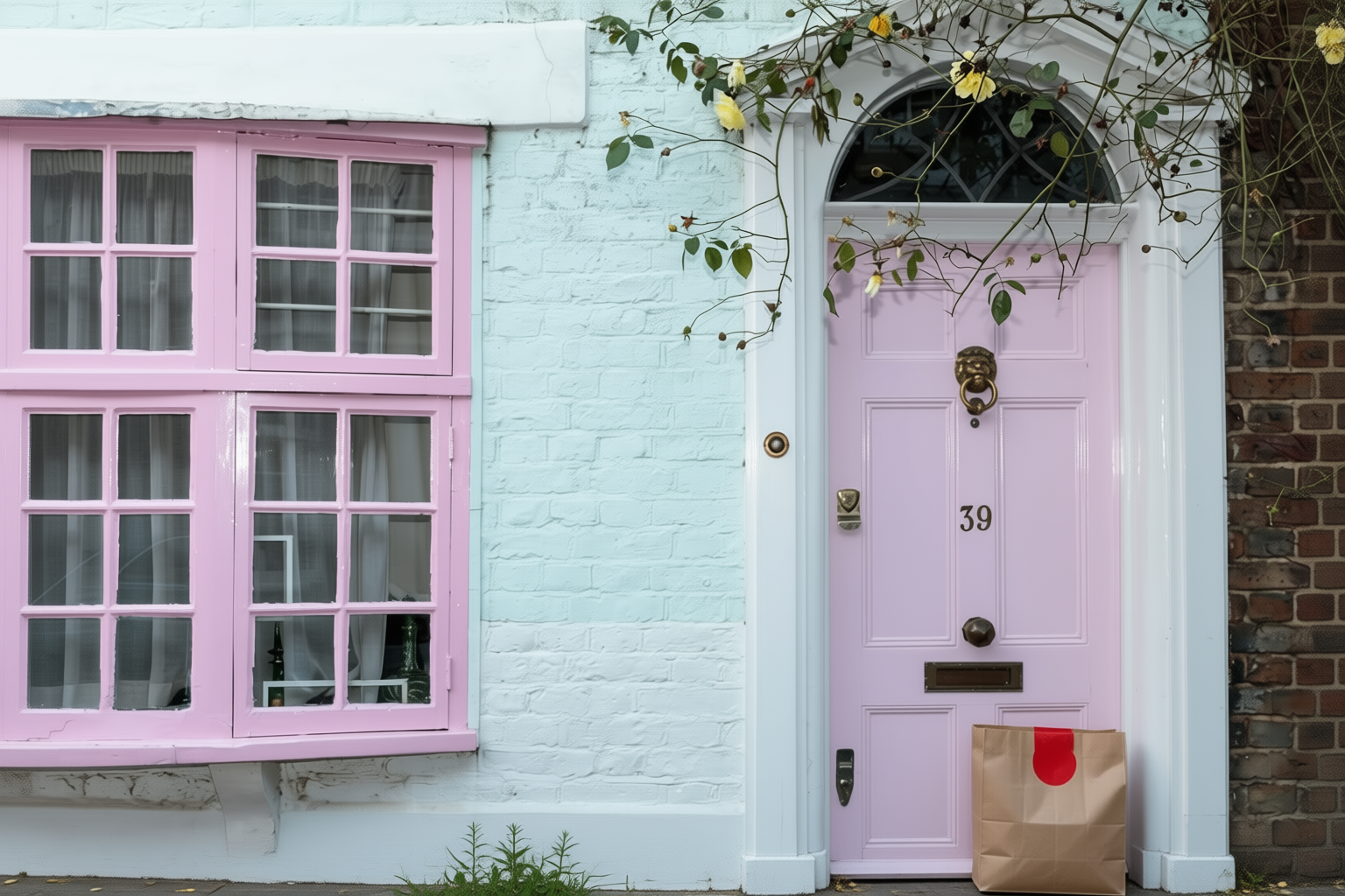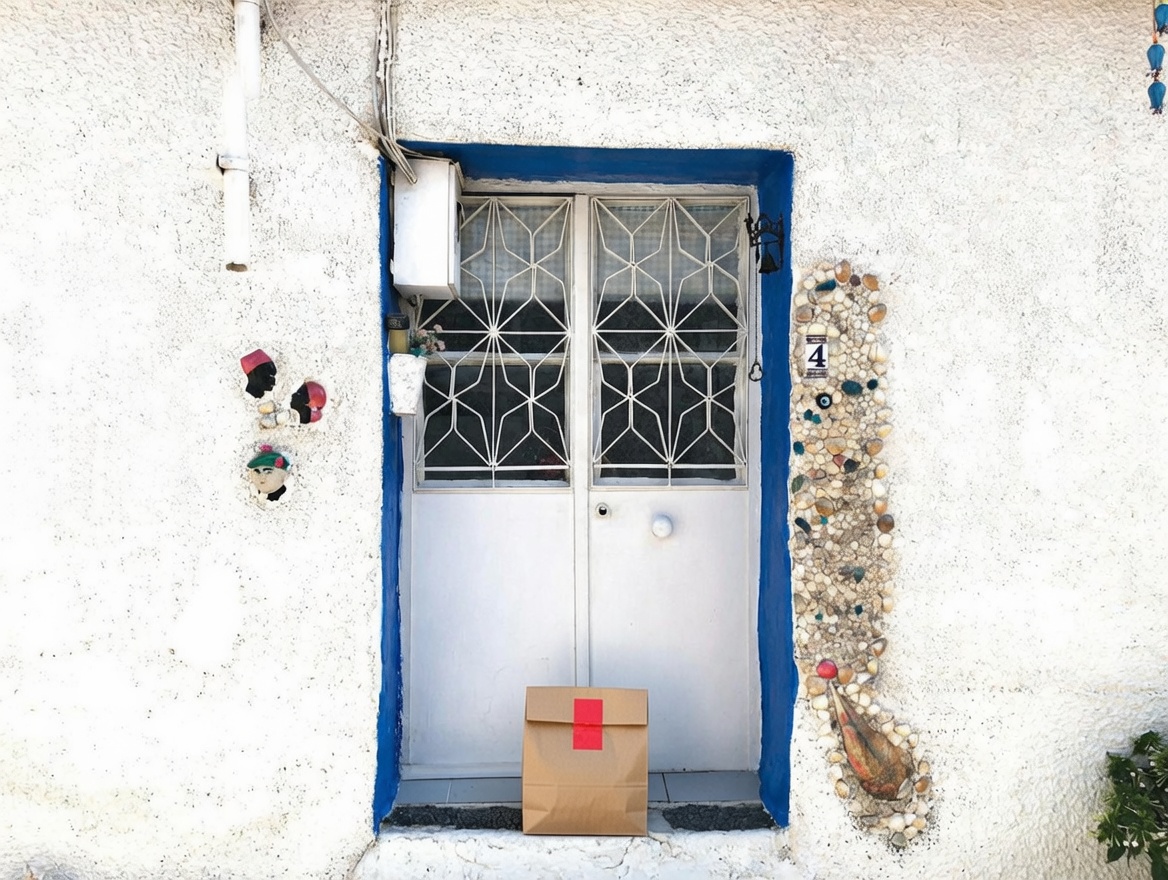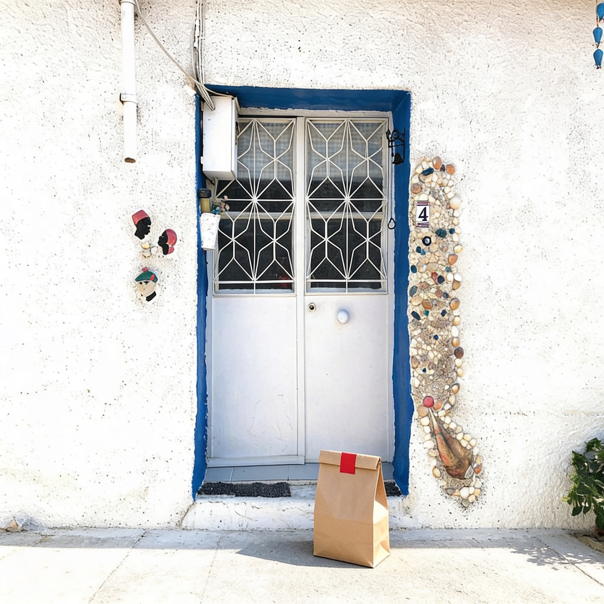 Delivery: We took real front door photos and used AI to add a fake delivery bag to the photo.