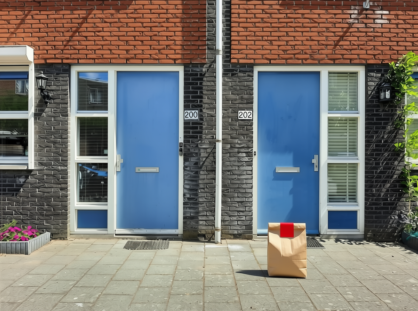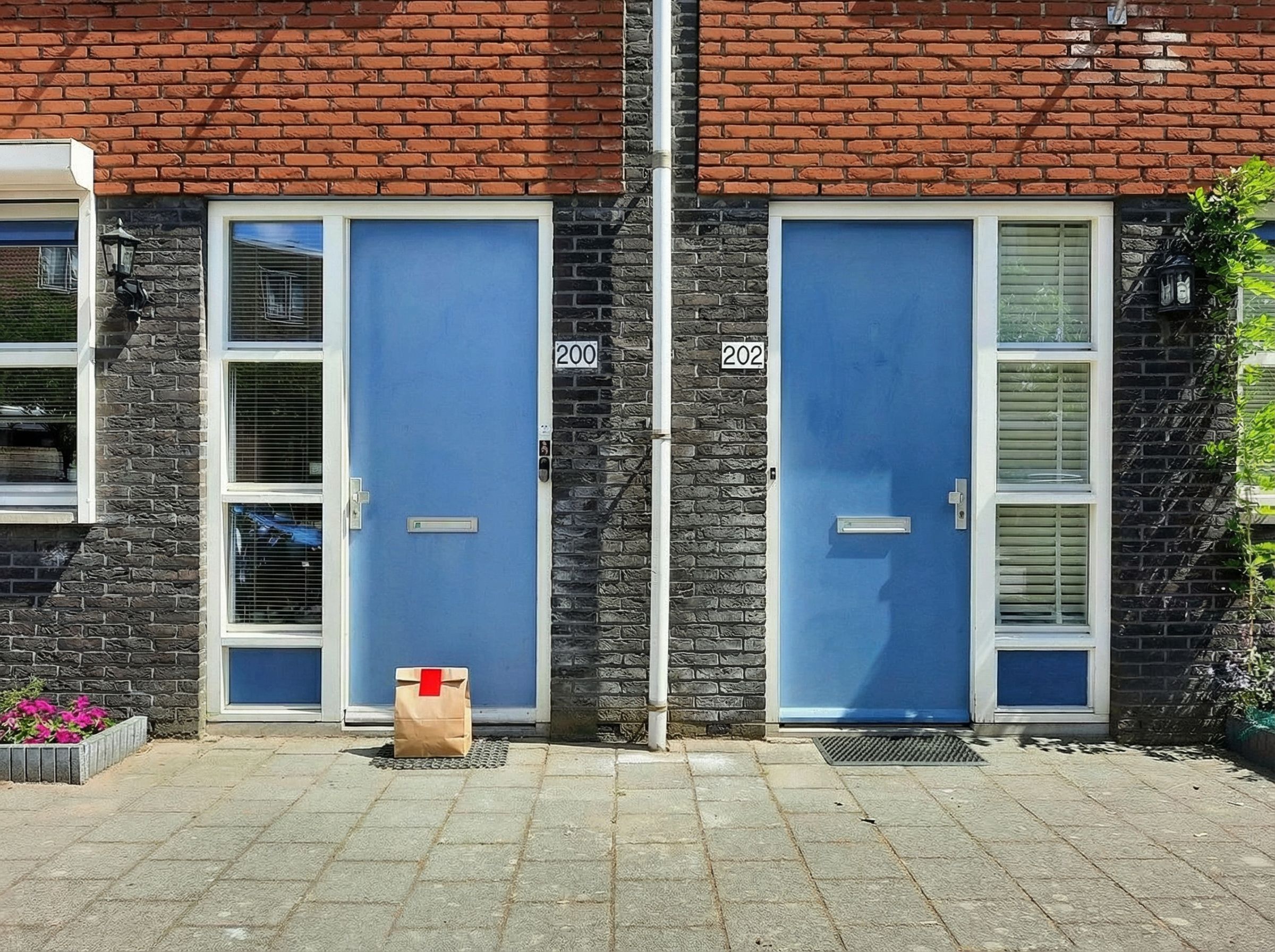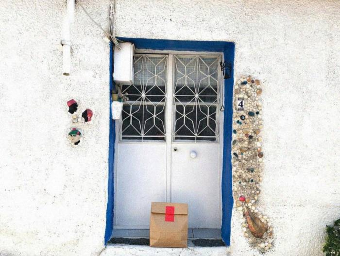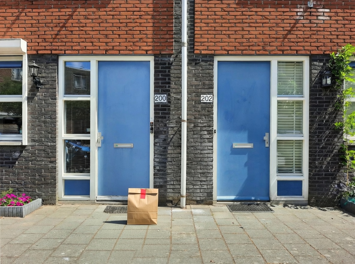 Delivery: We took real front door photos and used AI to add a fake delivery bag to the photo.