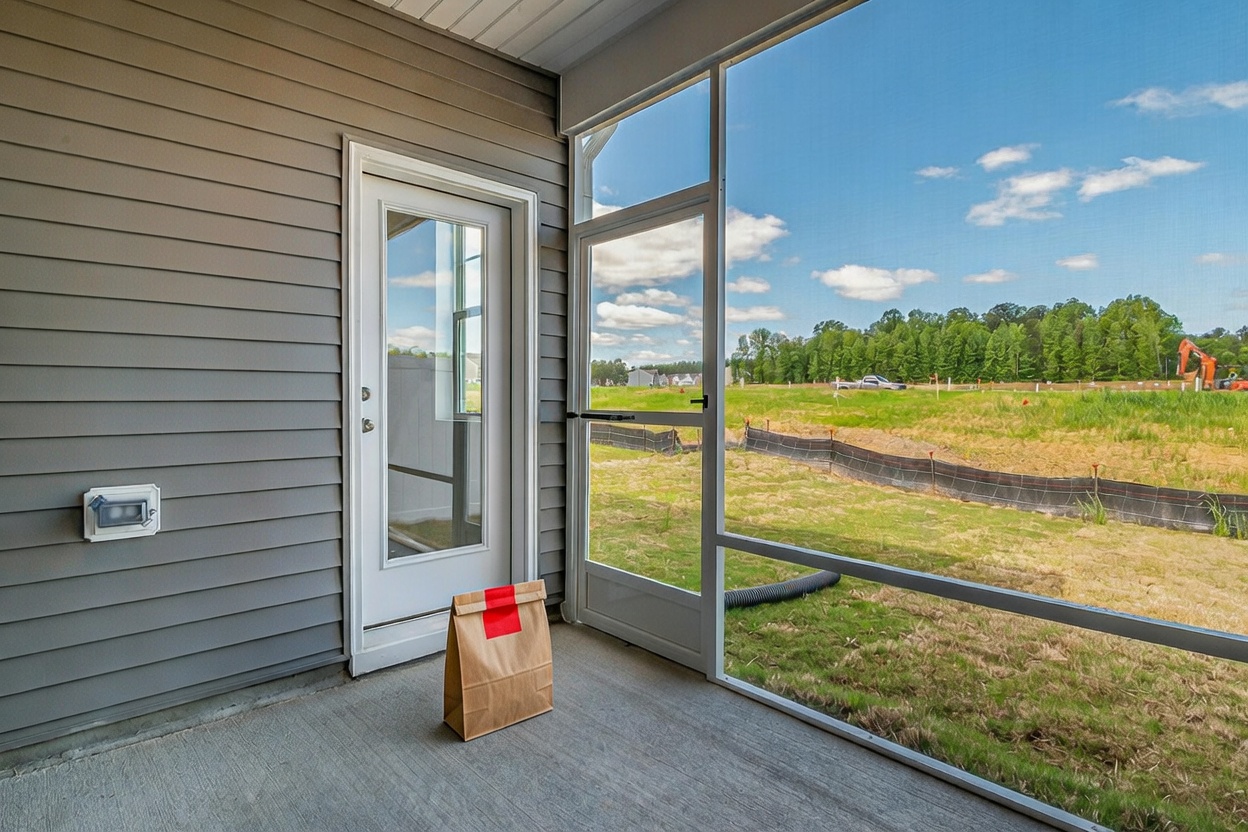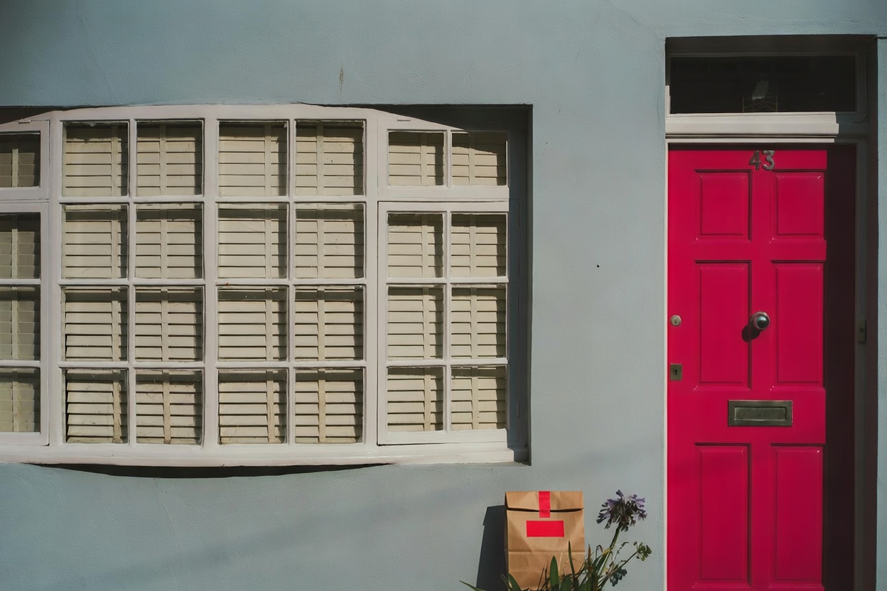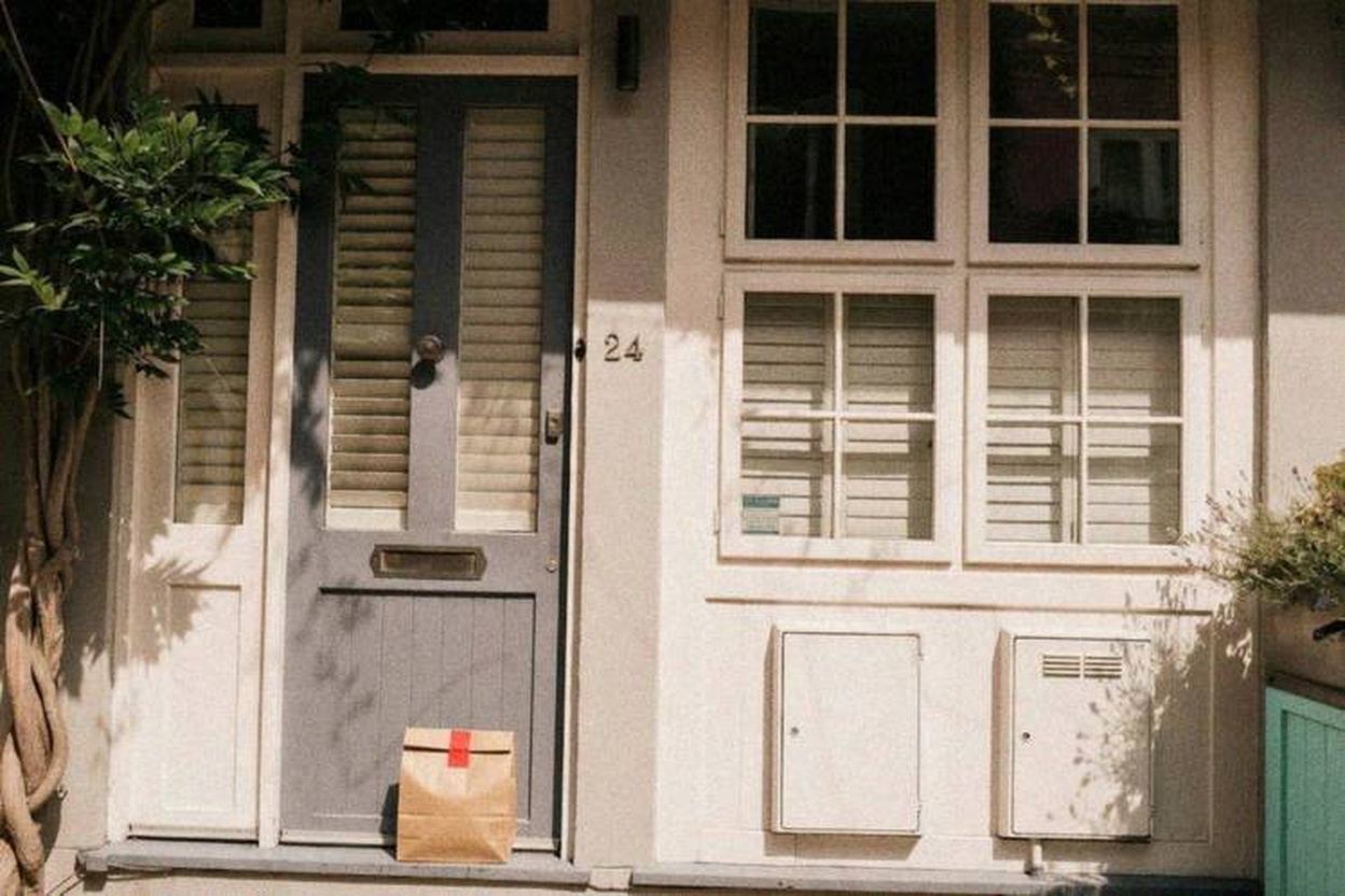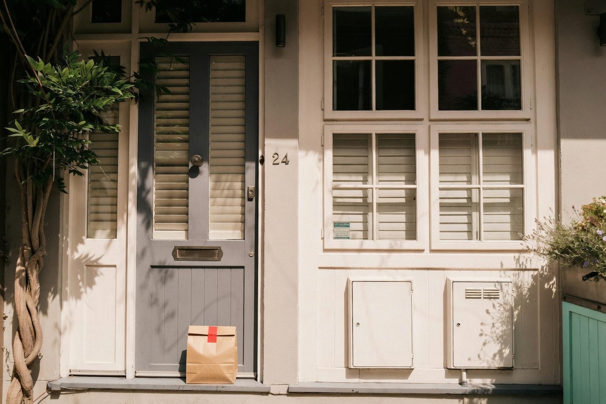 Delivery: We took real front door photos and used AI to add a fake delivery bag to the photo.