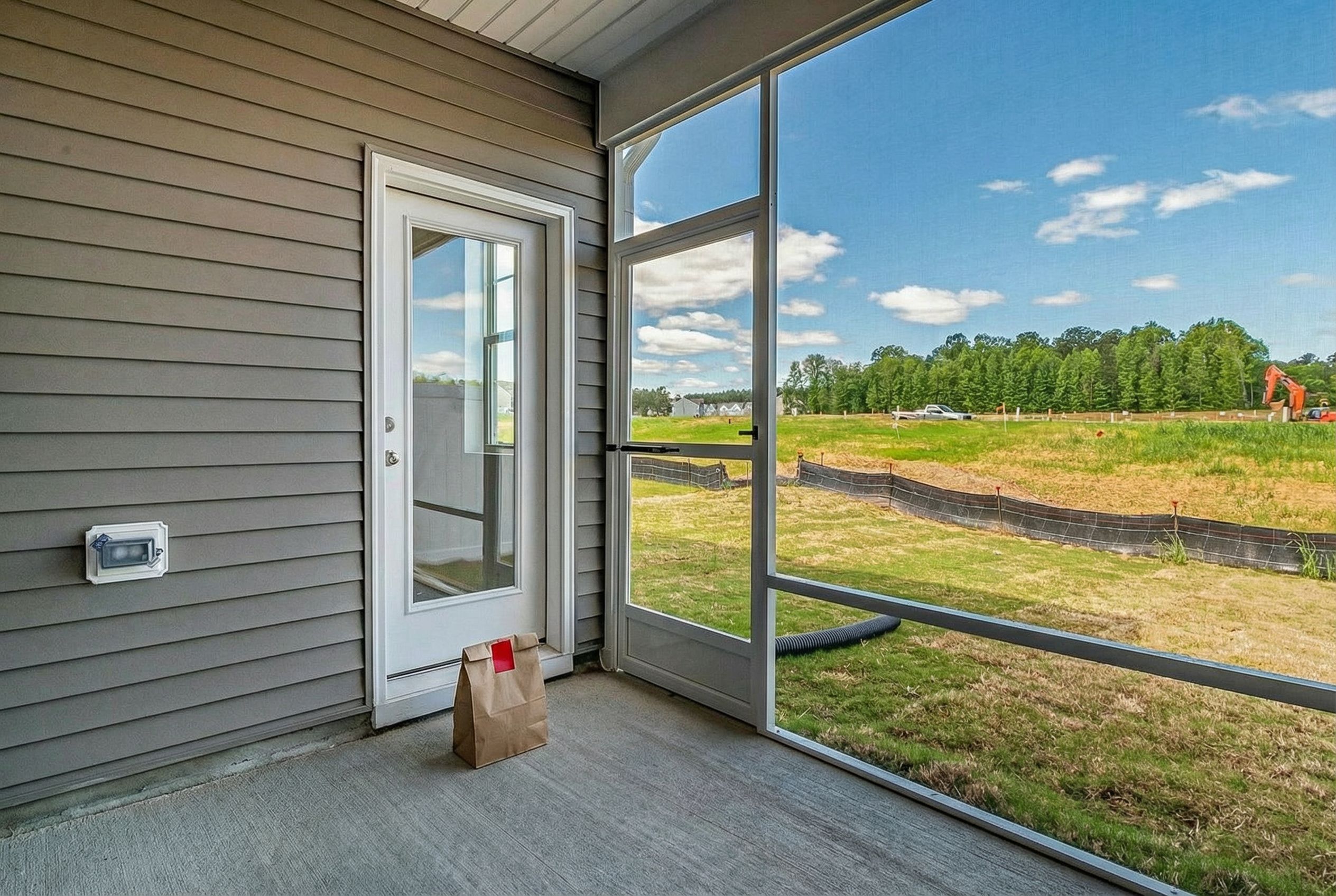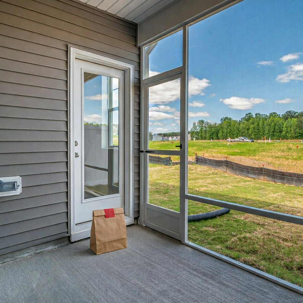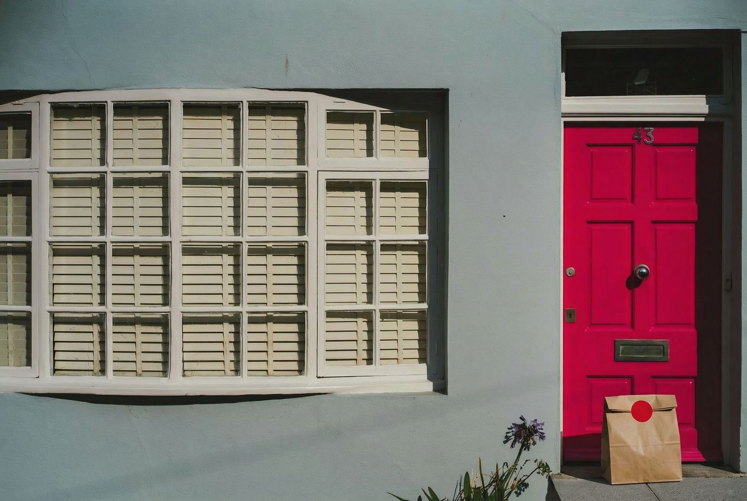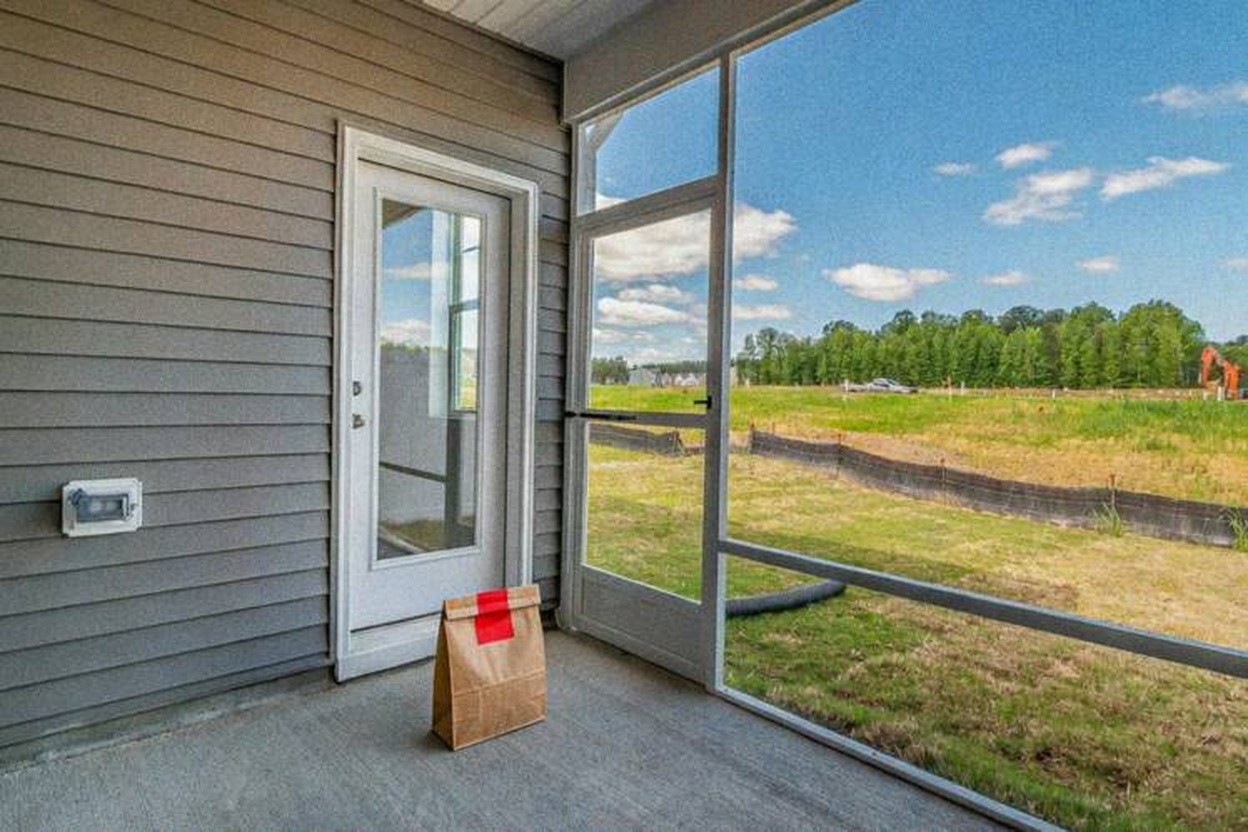 Delivery: We took real front door photos and used AI to add a fake delivery bag to the photo.