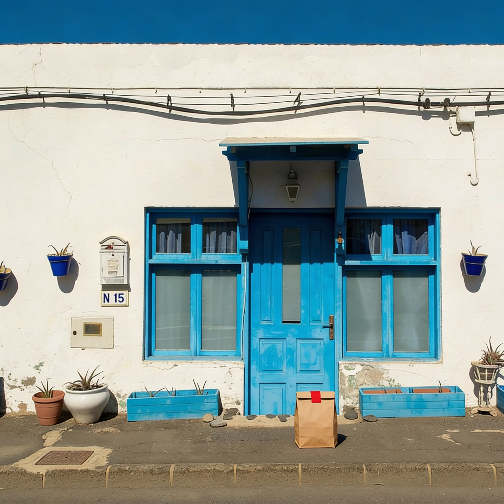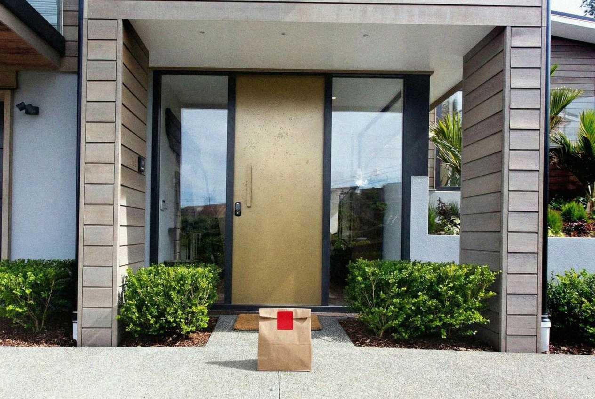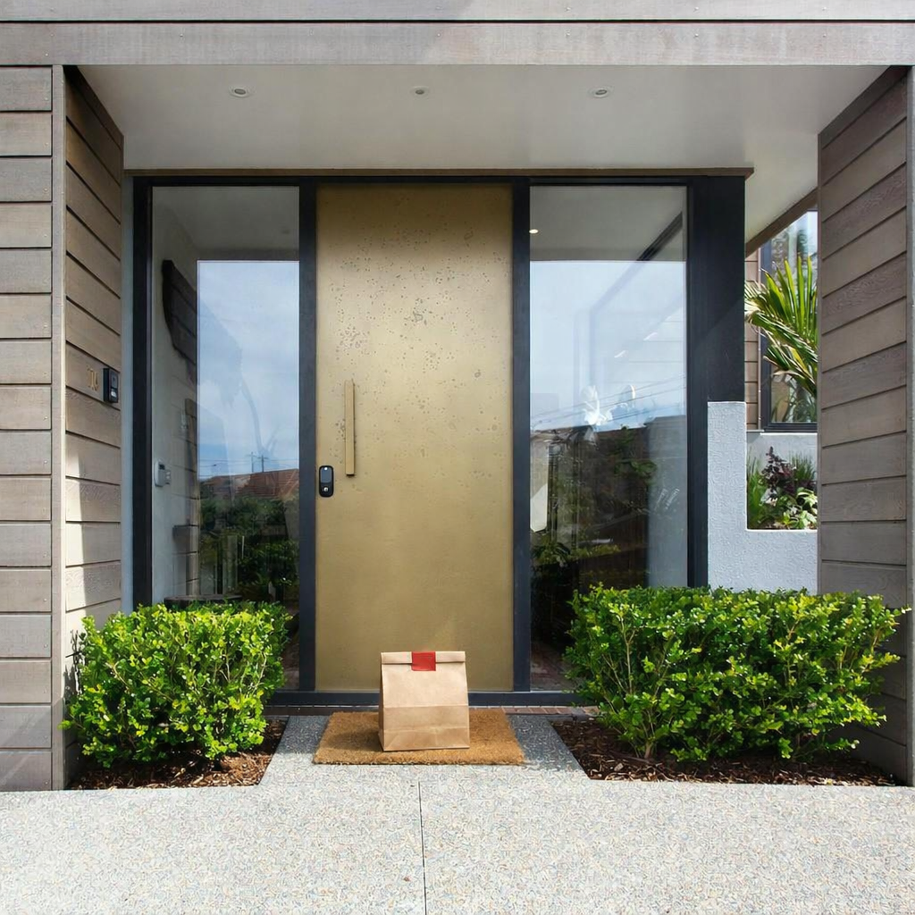 Delivery: We took real front door photos and used AI to add a fake delivery bag to the photo.