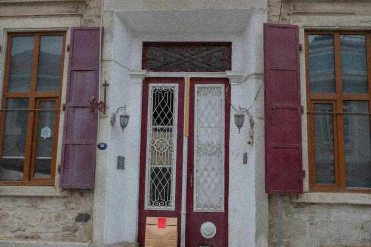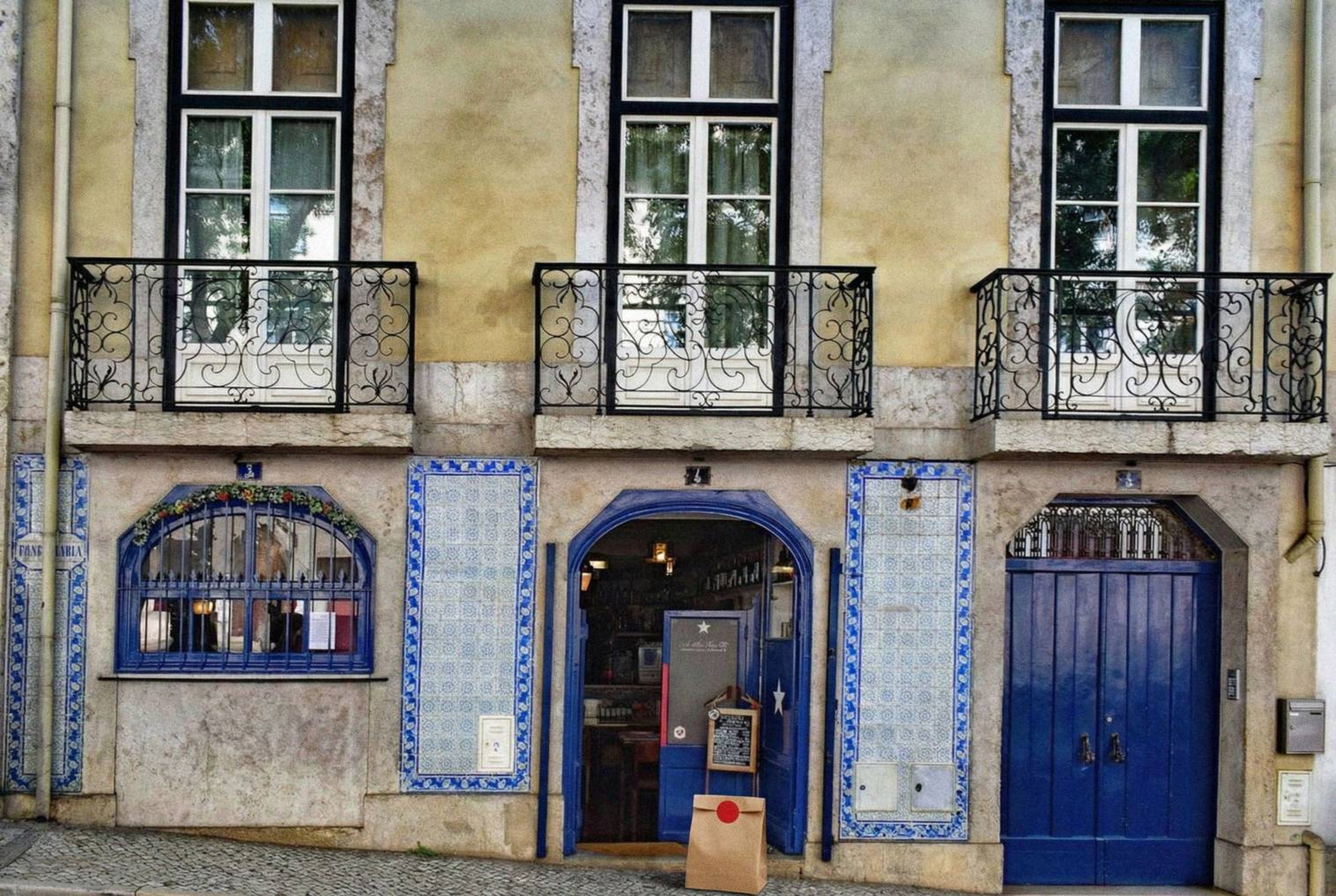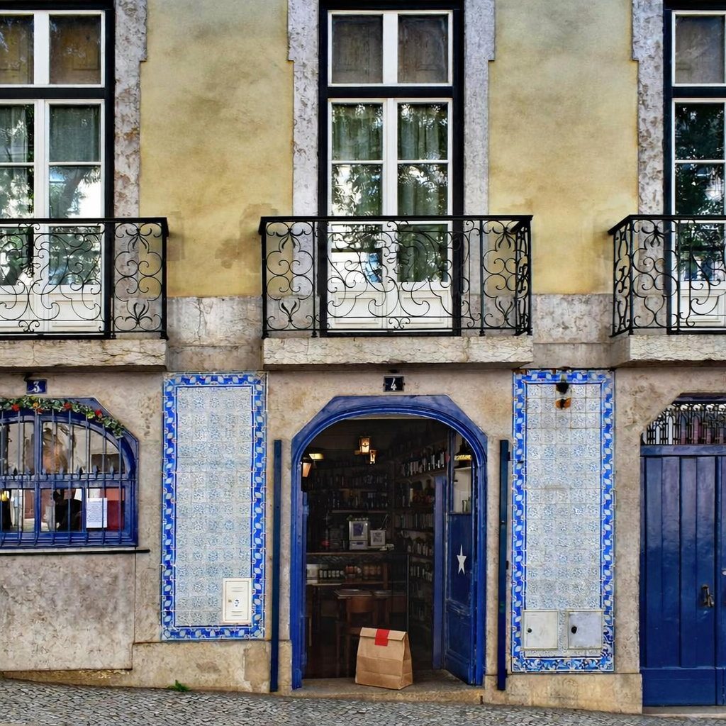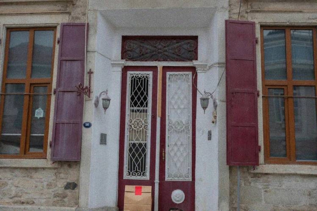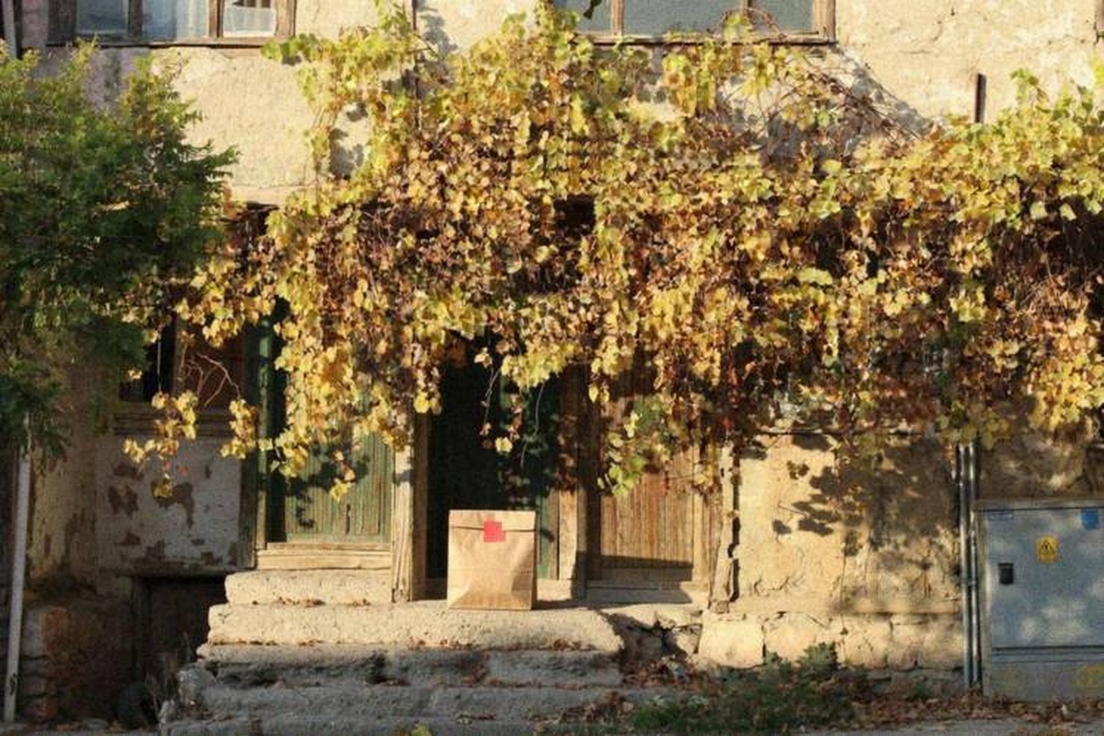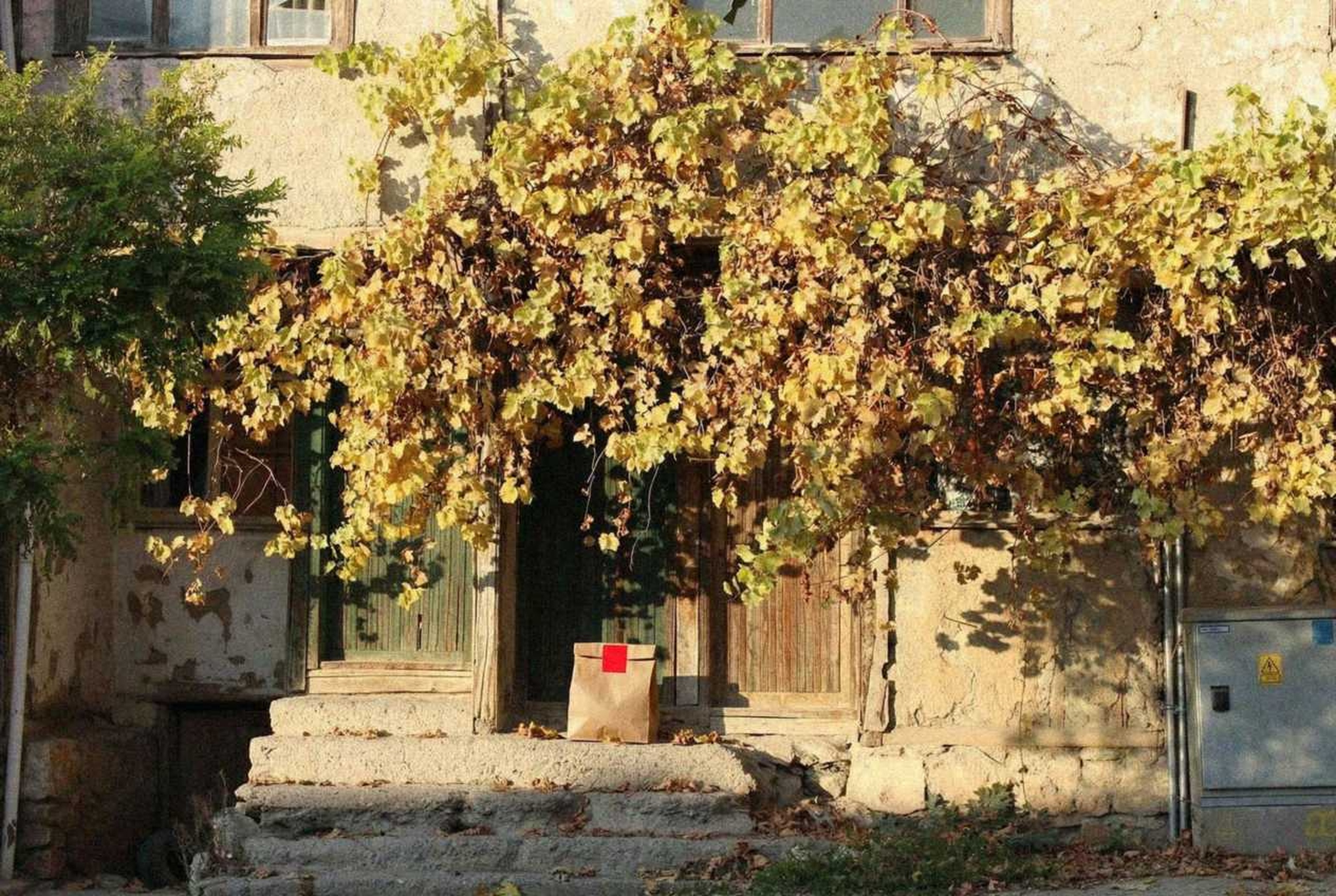 “In this existing photo, add a food delivery paper bag on the ground right in front of the door. The bag should be a small brown paper bag with a solid plain red sticker on the top keeping it closed. Preserve existing photo style and lighting as much as possible.”