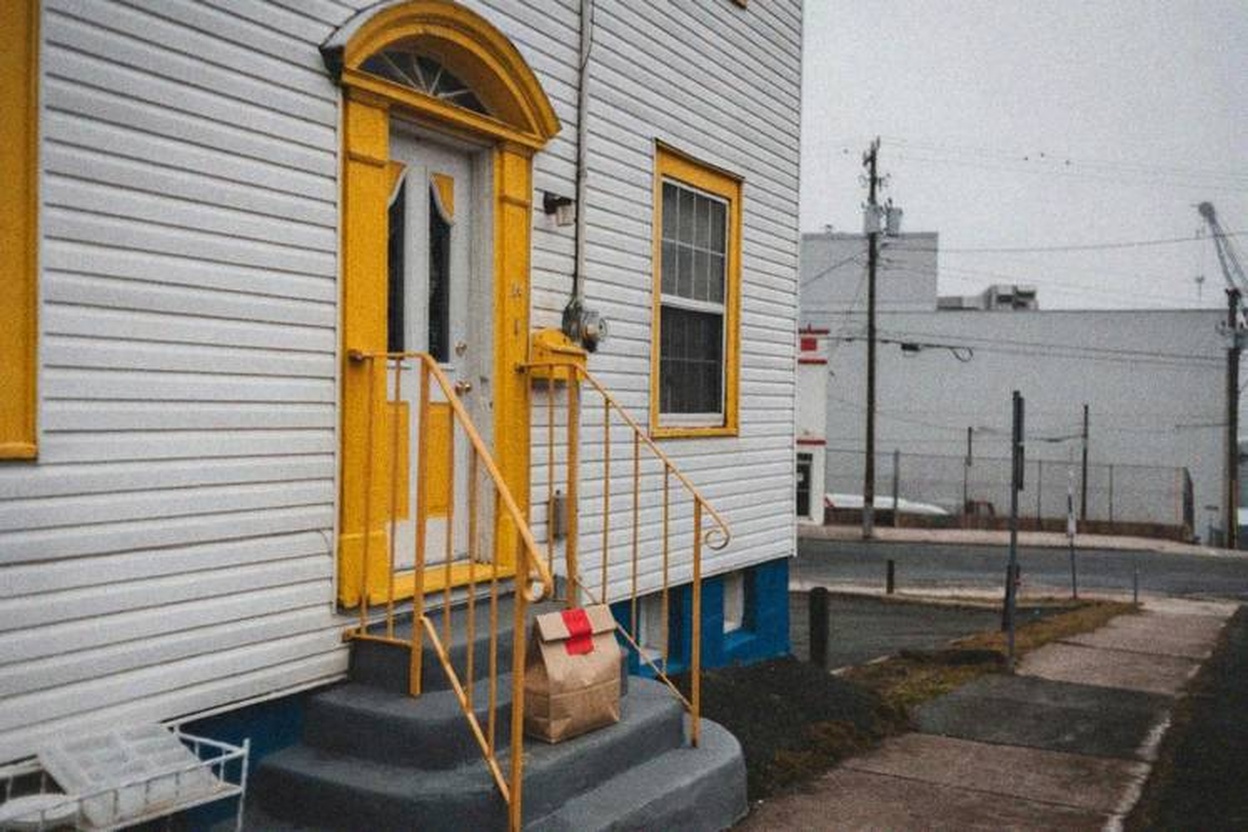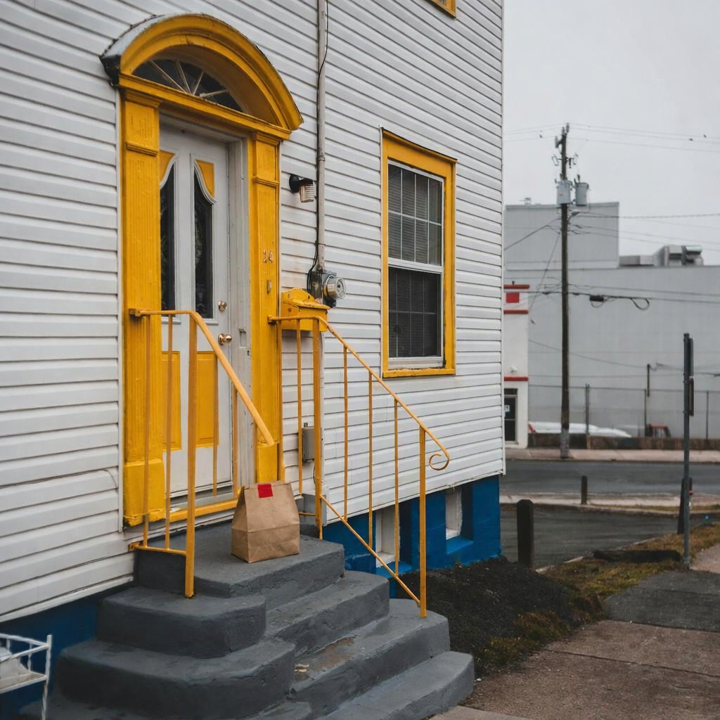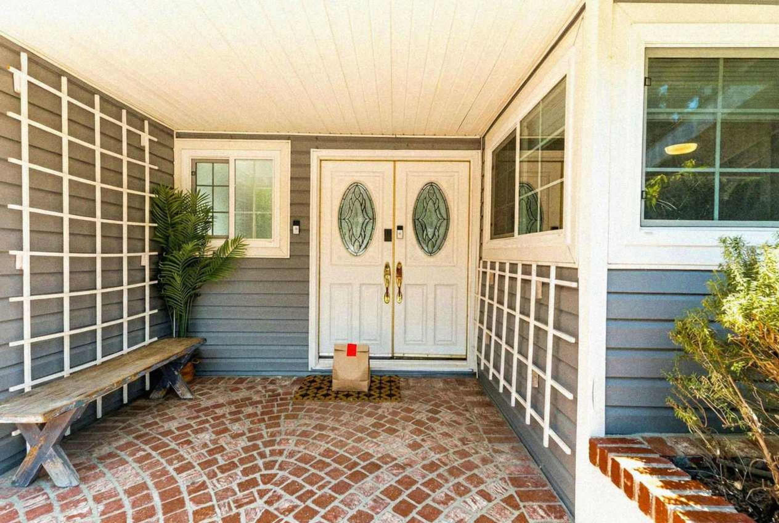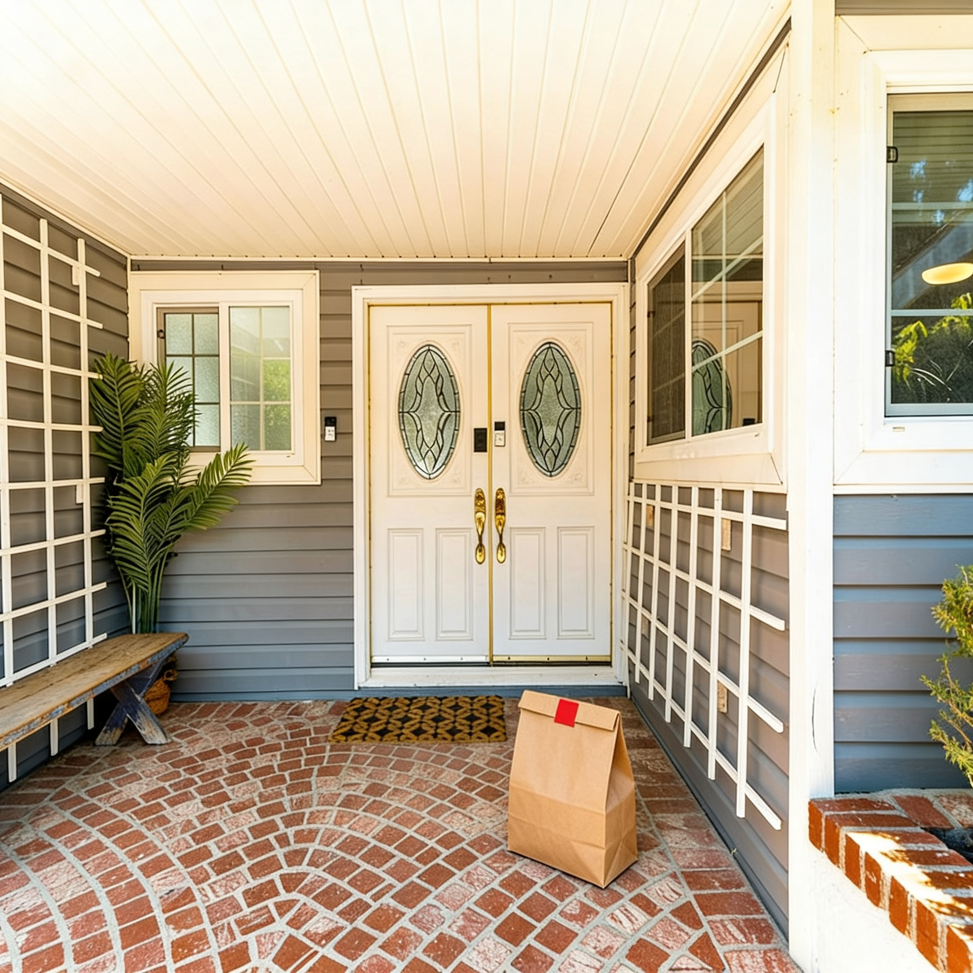 Delivery: We took real front door photos and used AI to add a fake delivery bag to the photo.