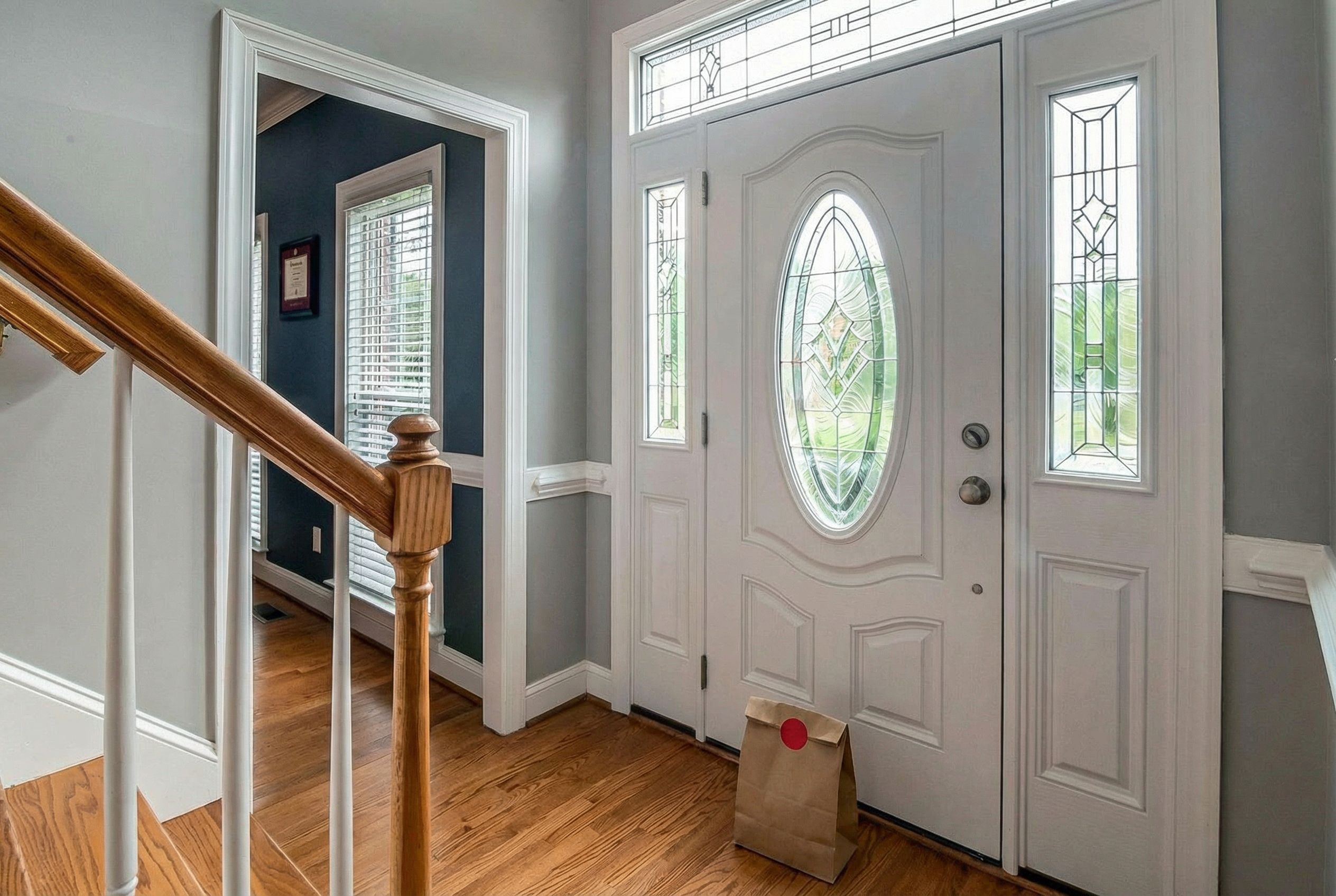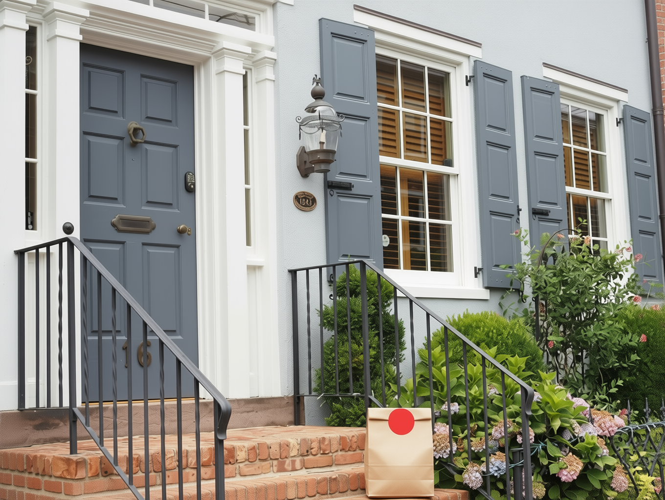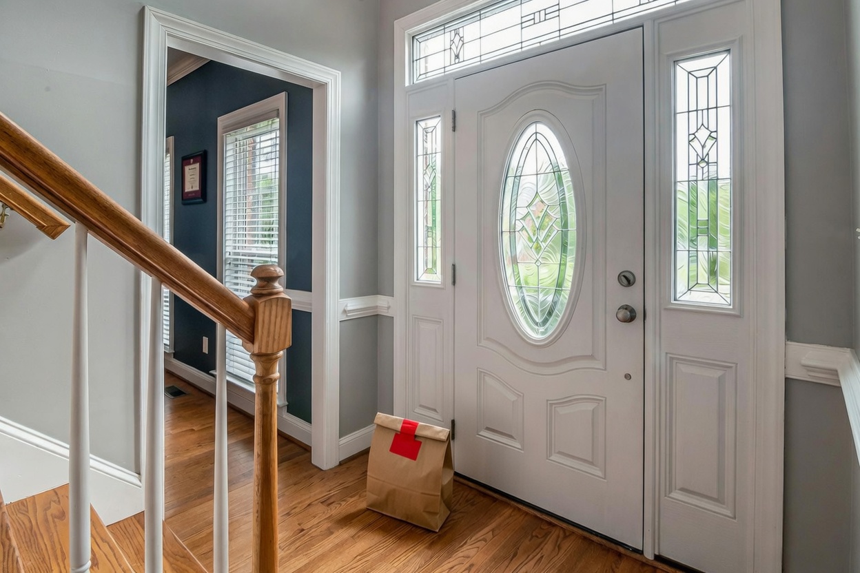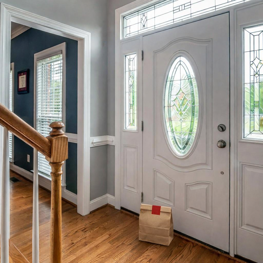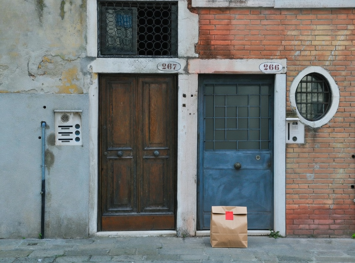 Delivery: We took real front door photos and used AI to add a fake delivery bag to the photo.