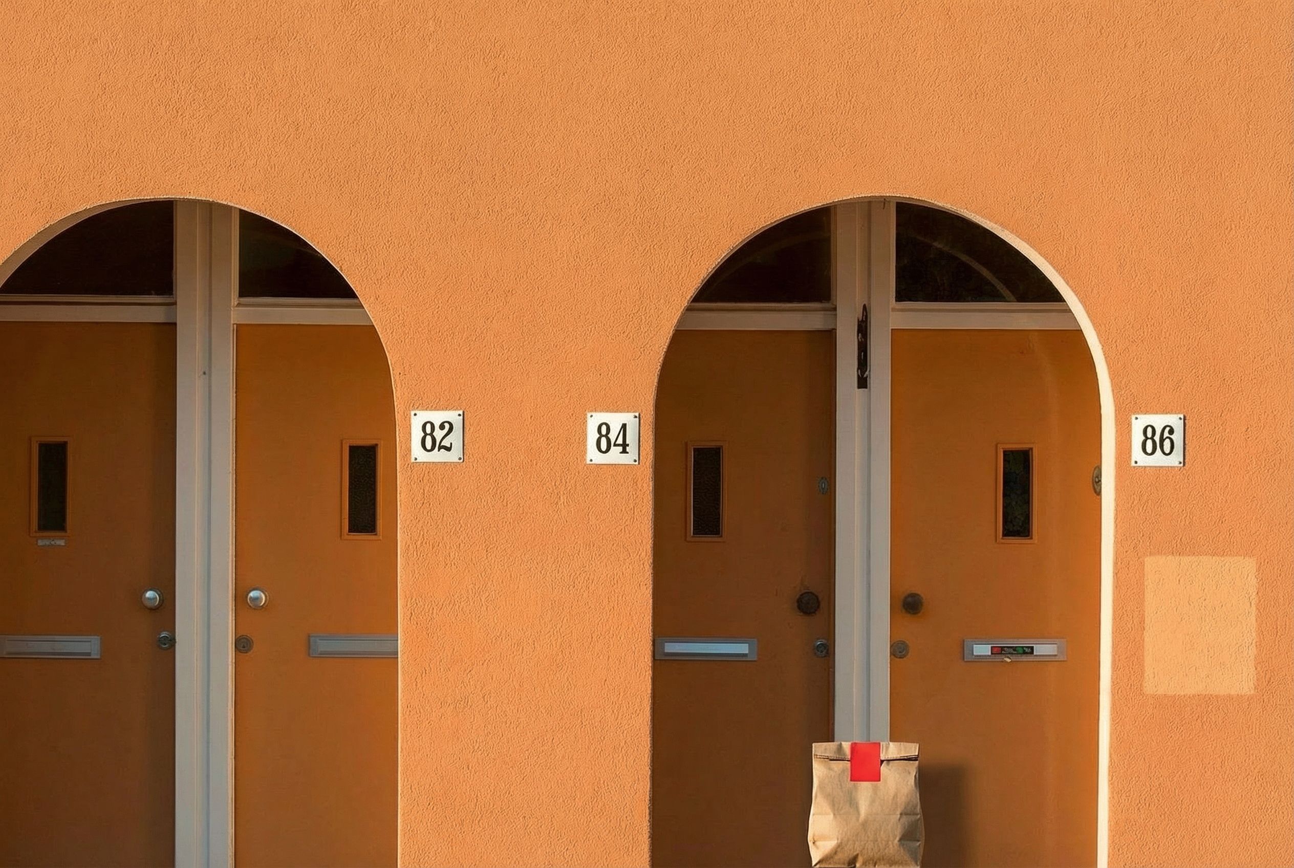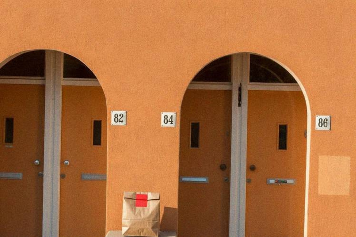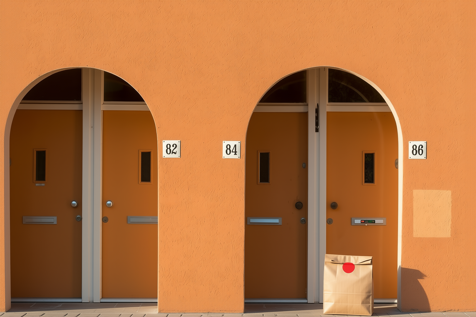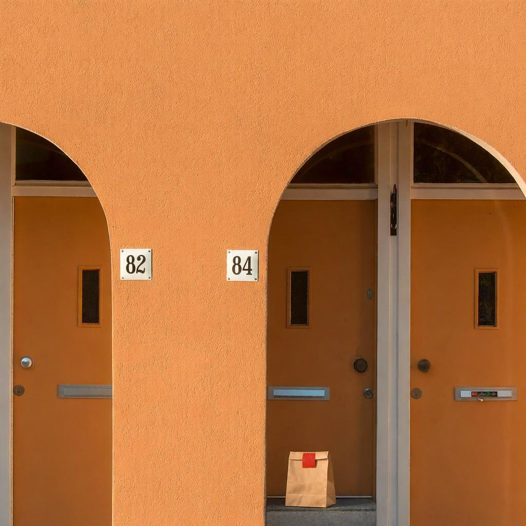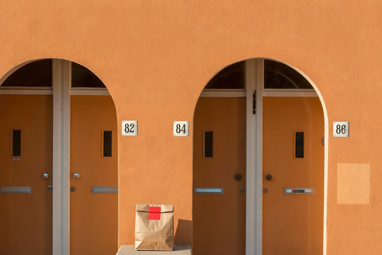 Delivery: We took real front door photos and used AI to add a fake delivery bag to the photo.