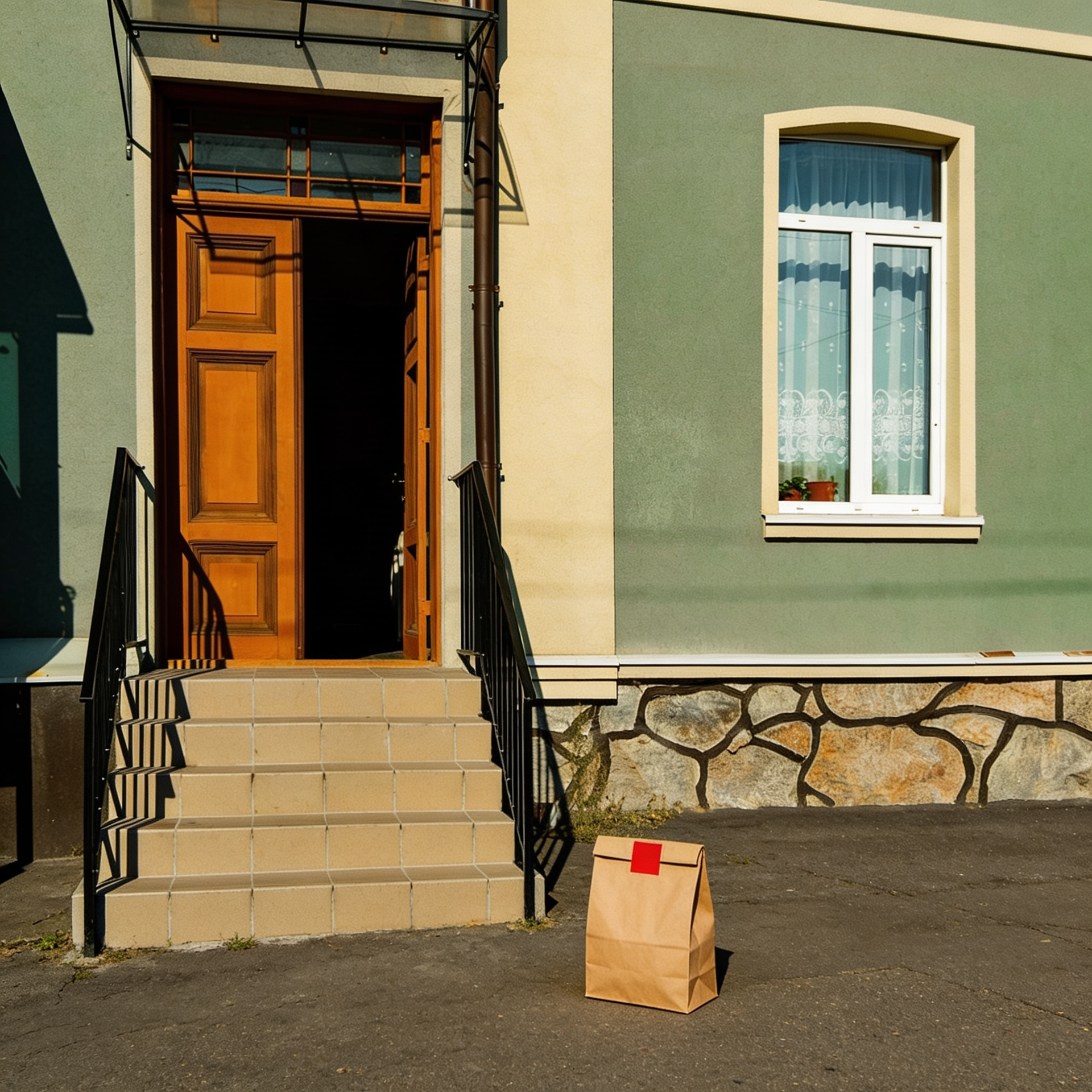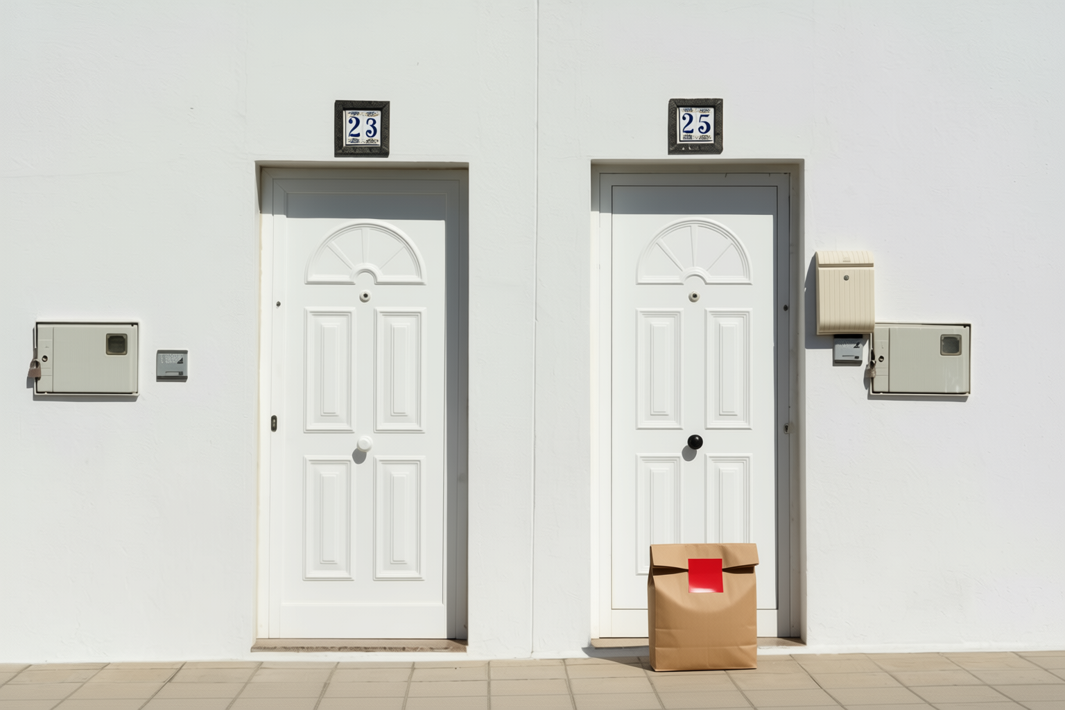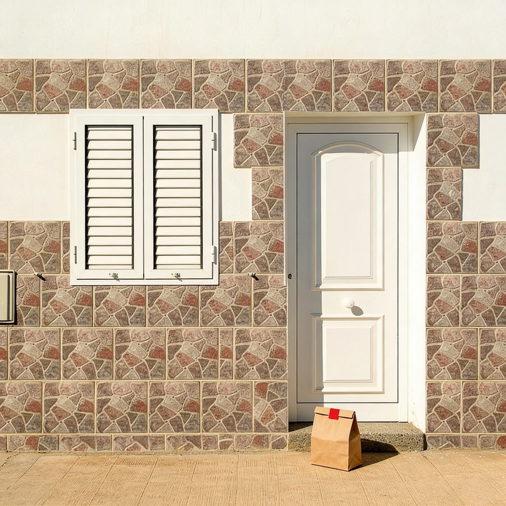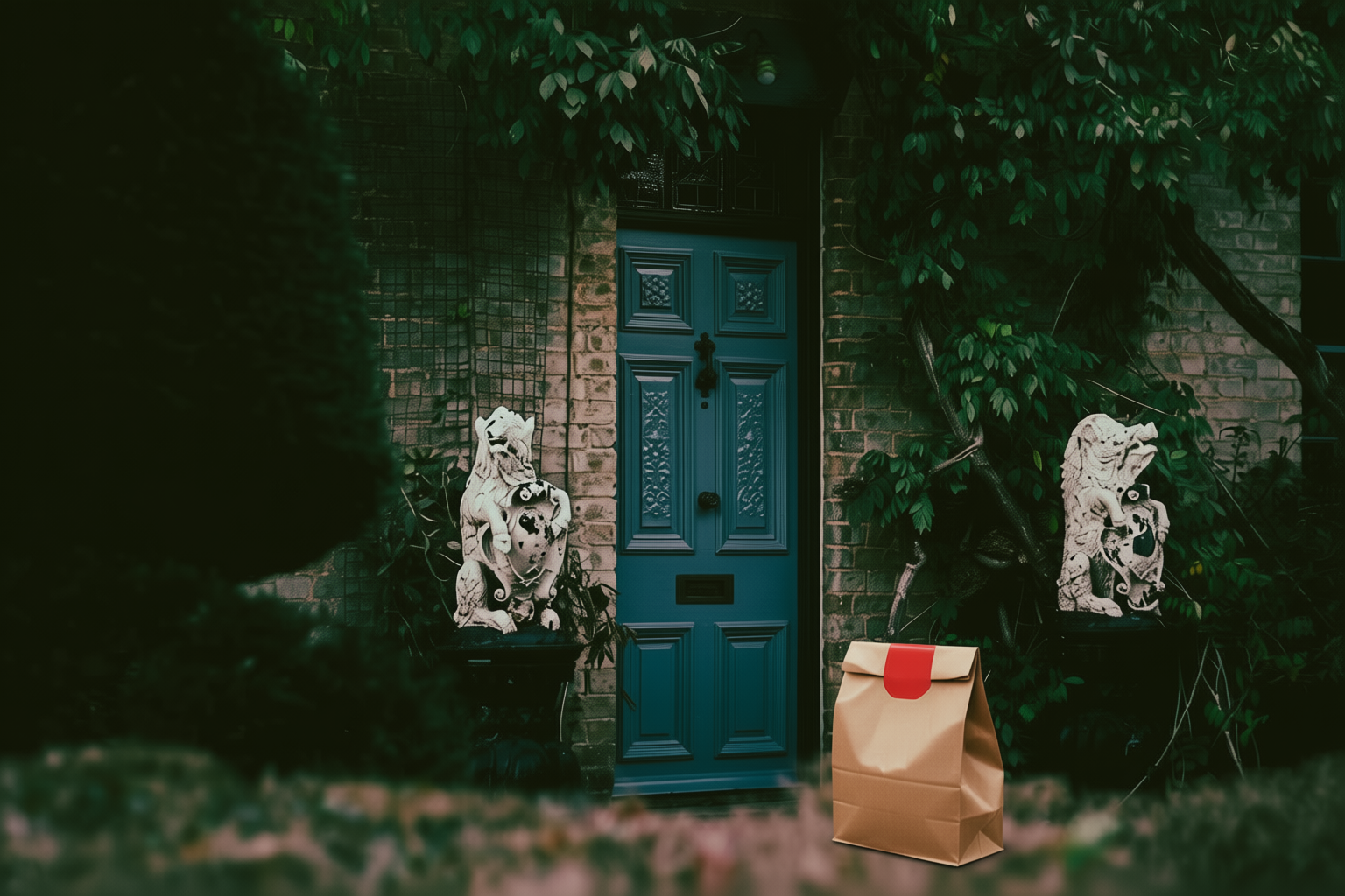 Delivery: We took real front door photos and used AI to add a fake delivery bag to the photo.