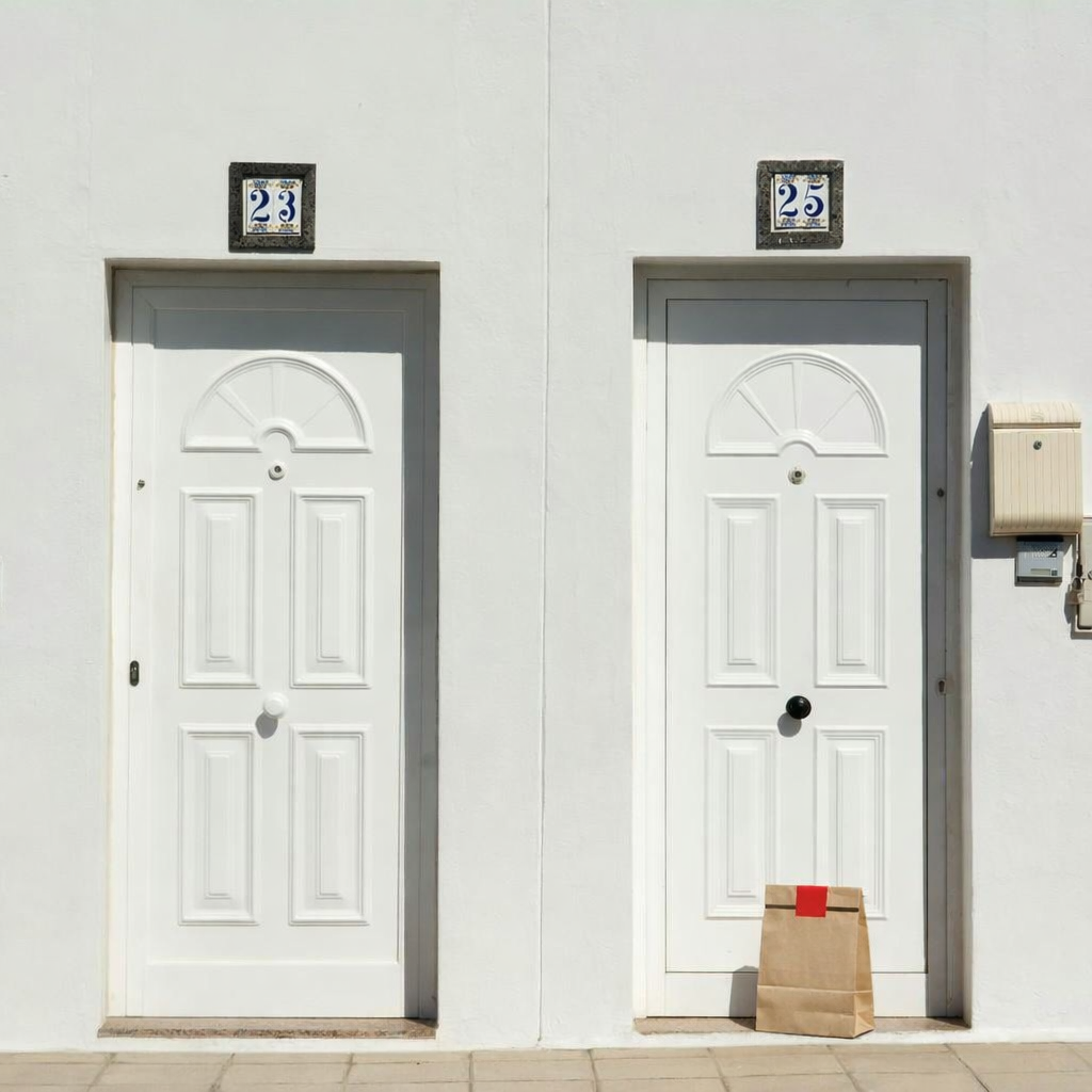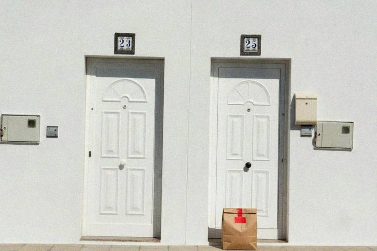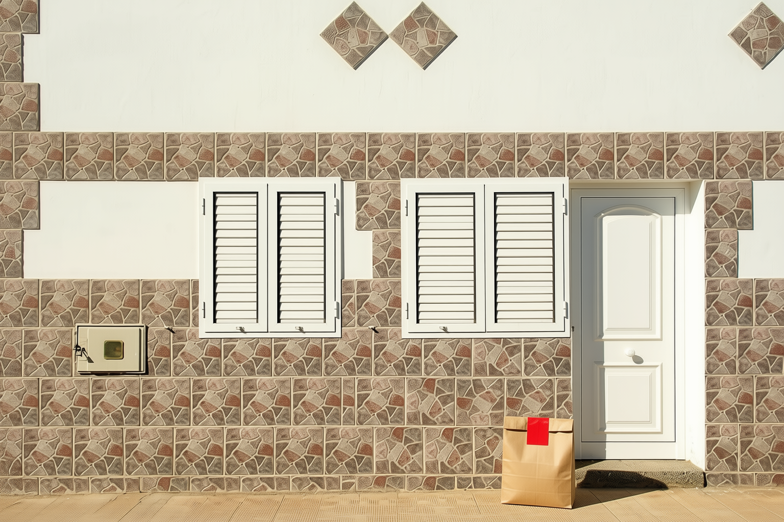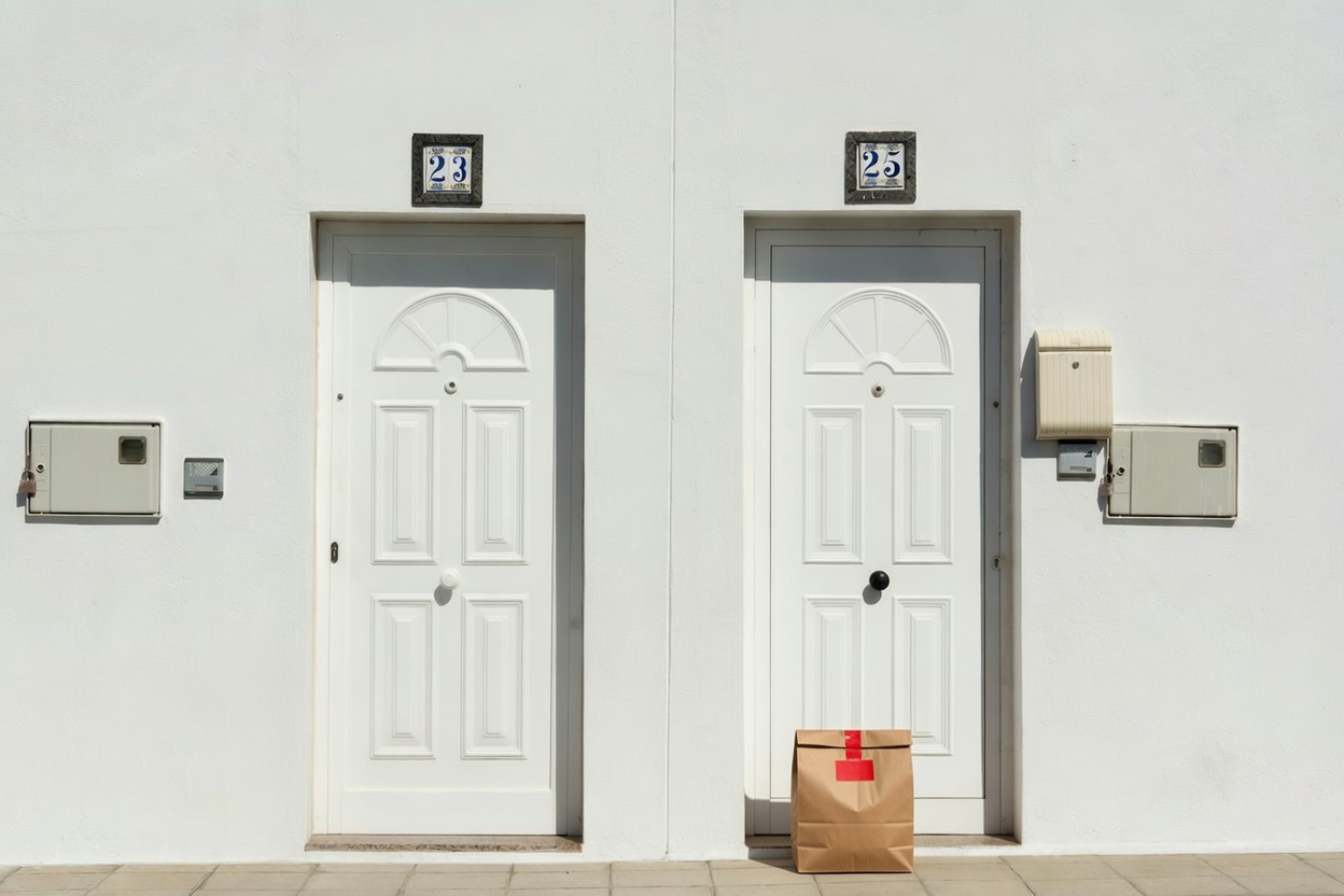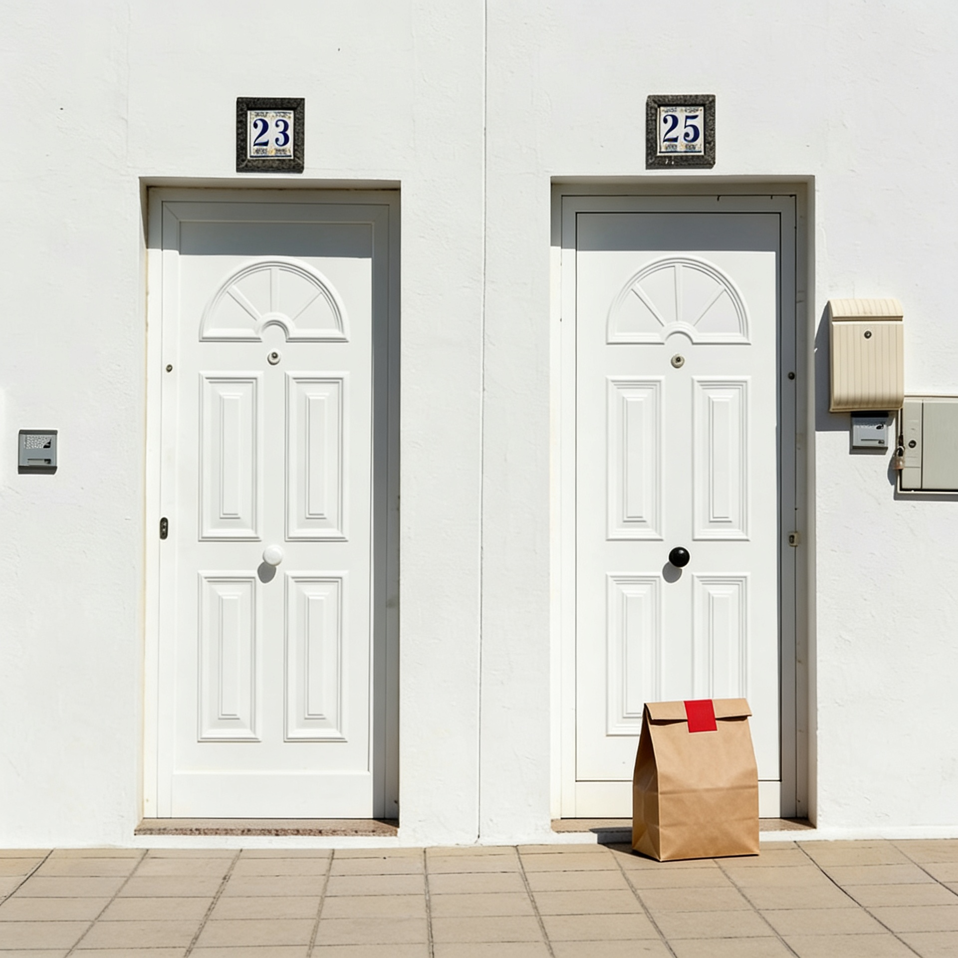 Delivery: We took real front door photos and used AI to add a fake delivery bag to the photo.
