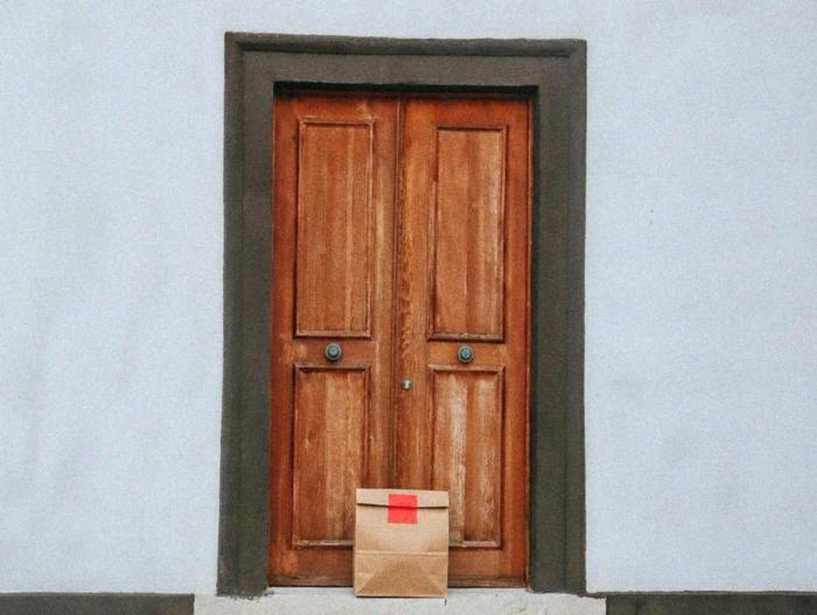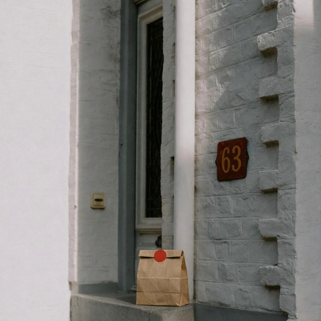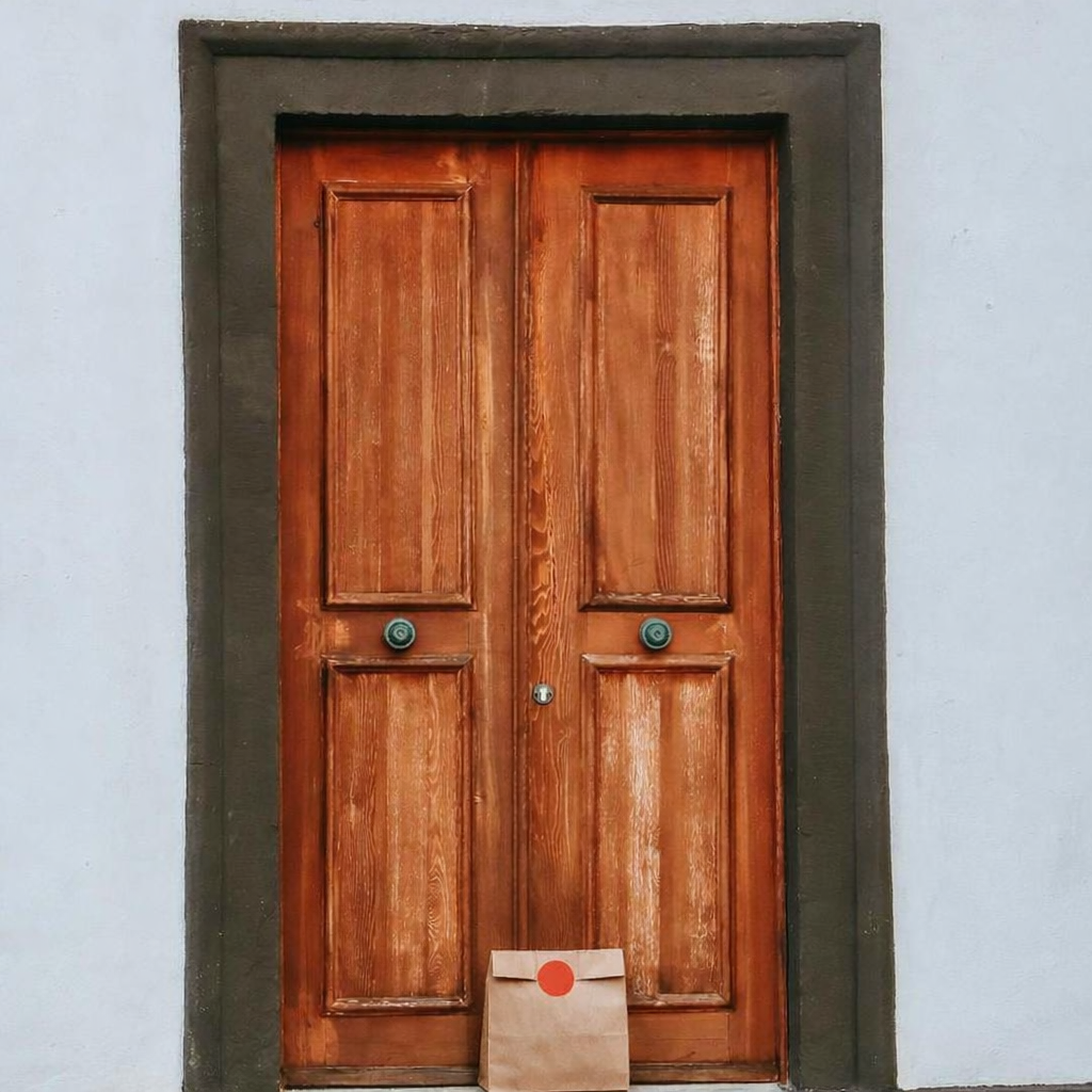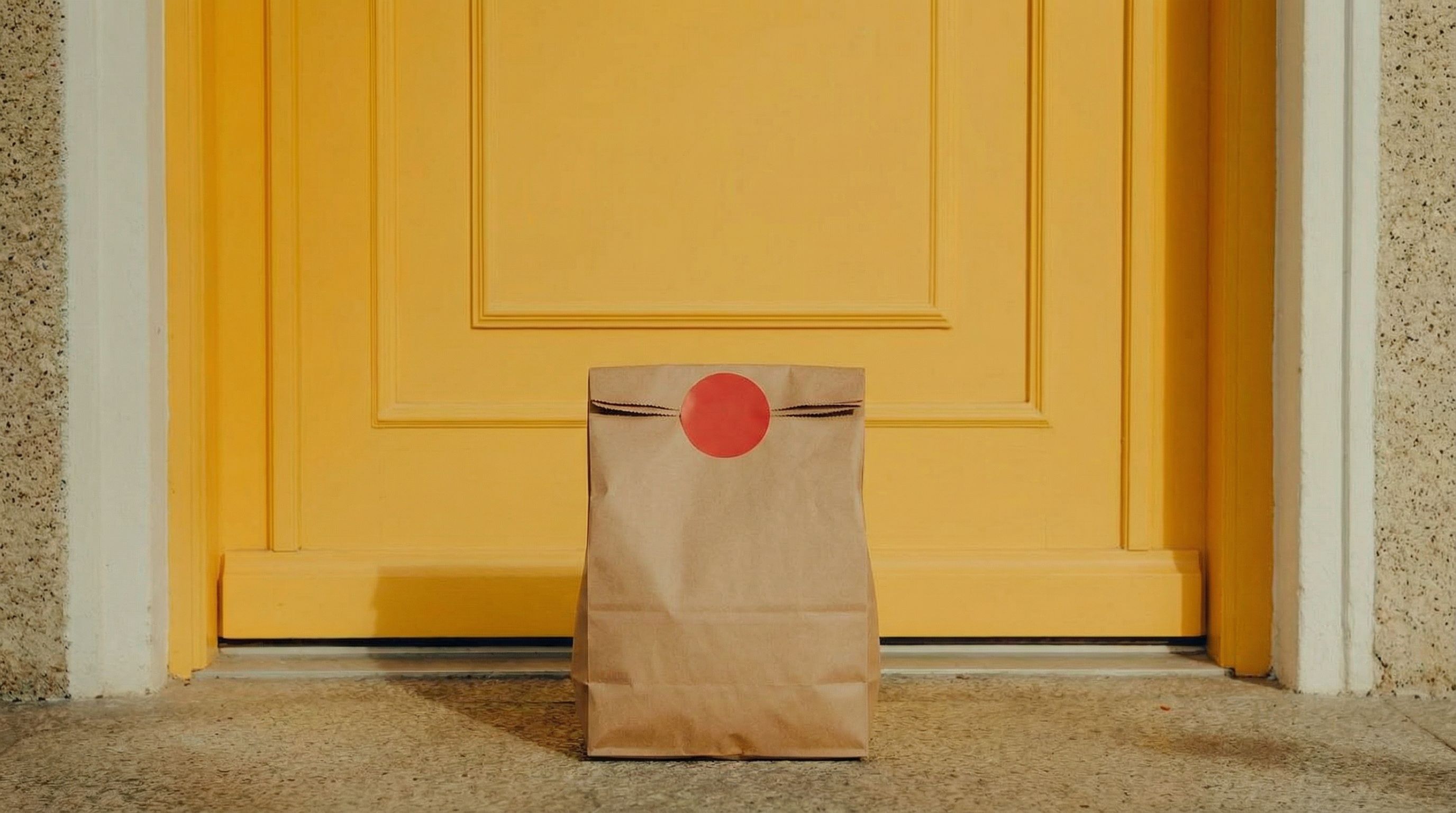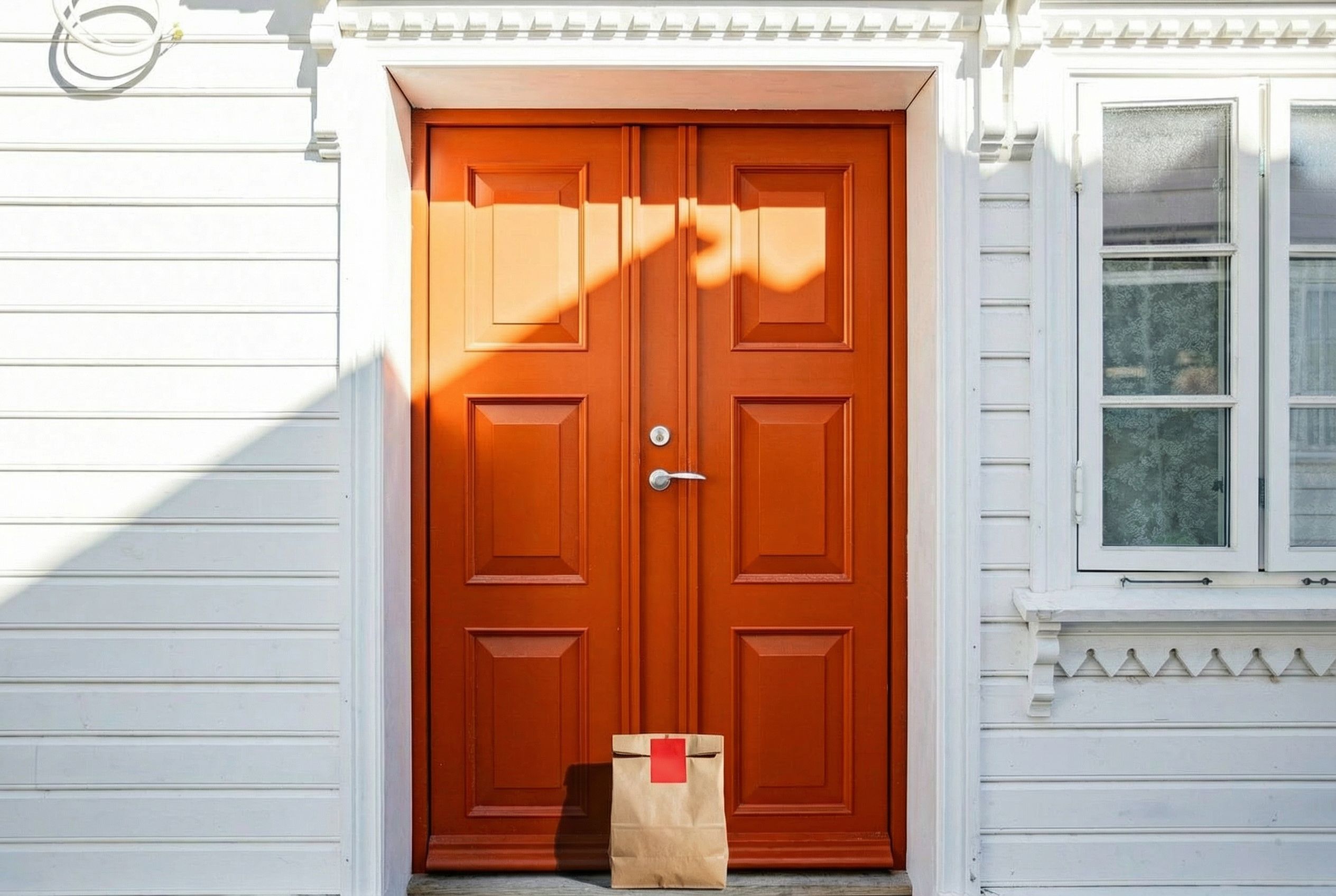 Delivery: We took real front door photos and used AI to add a fake delivery bag to the photo.