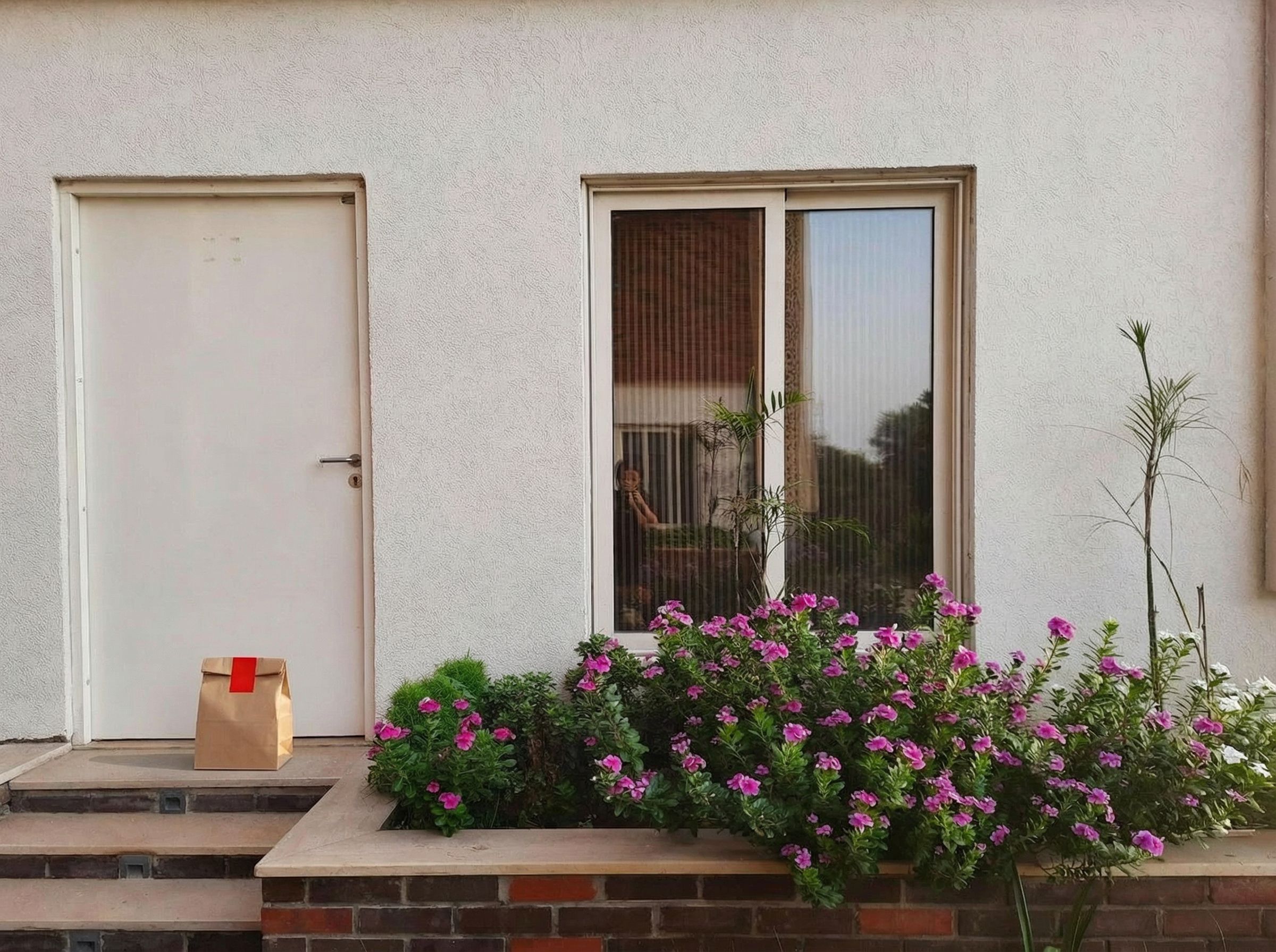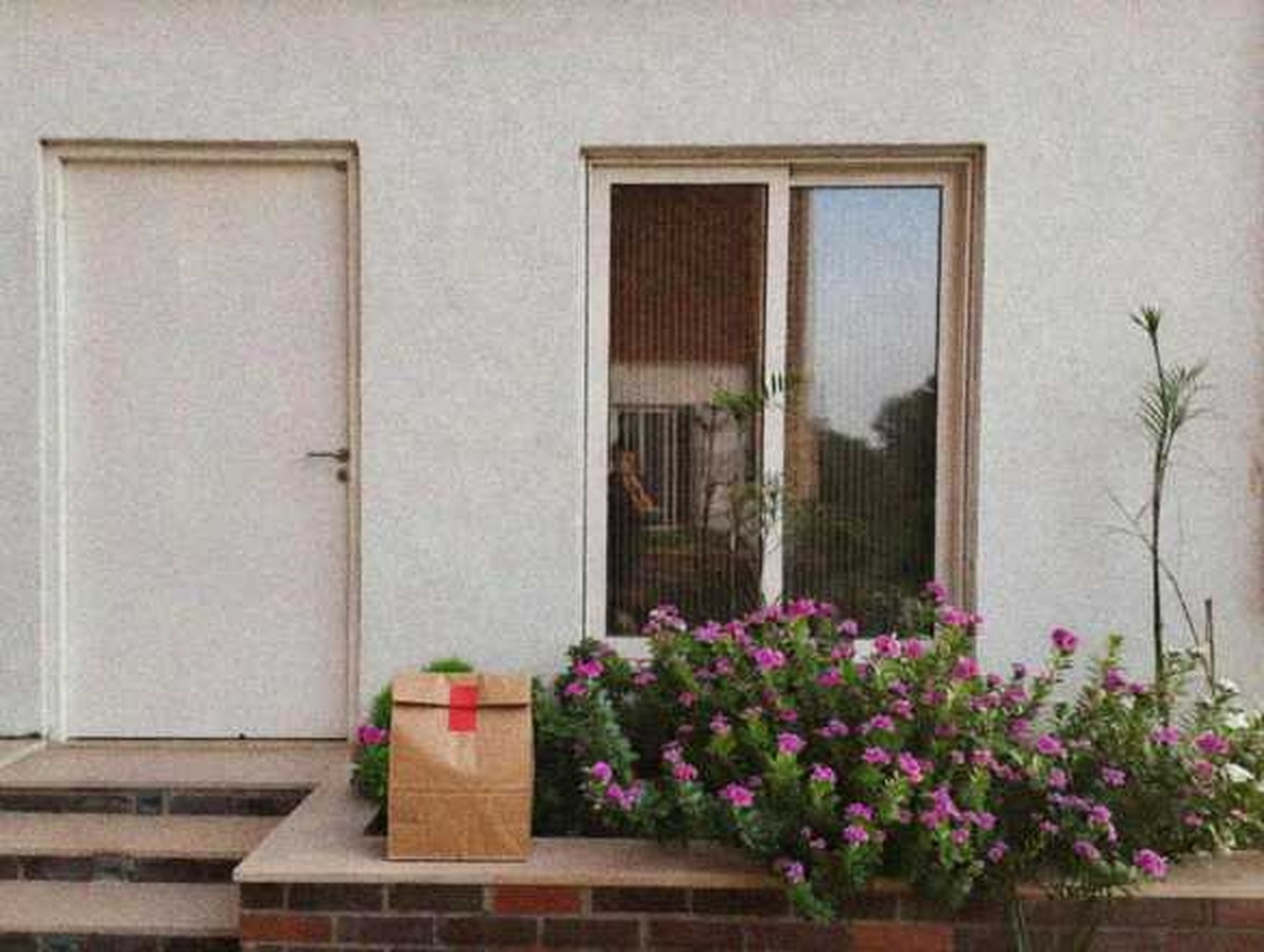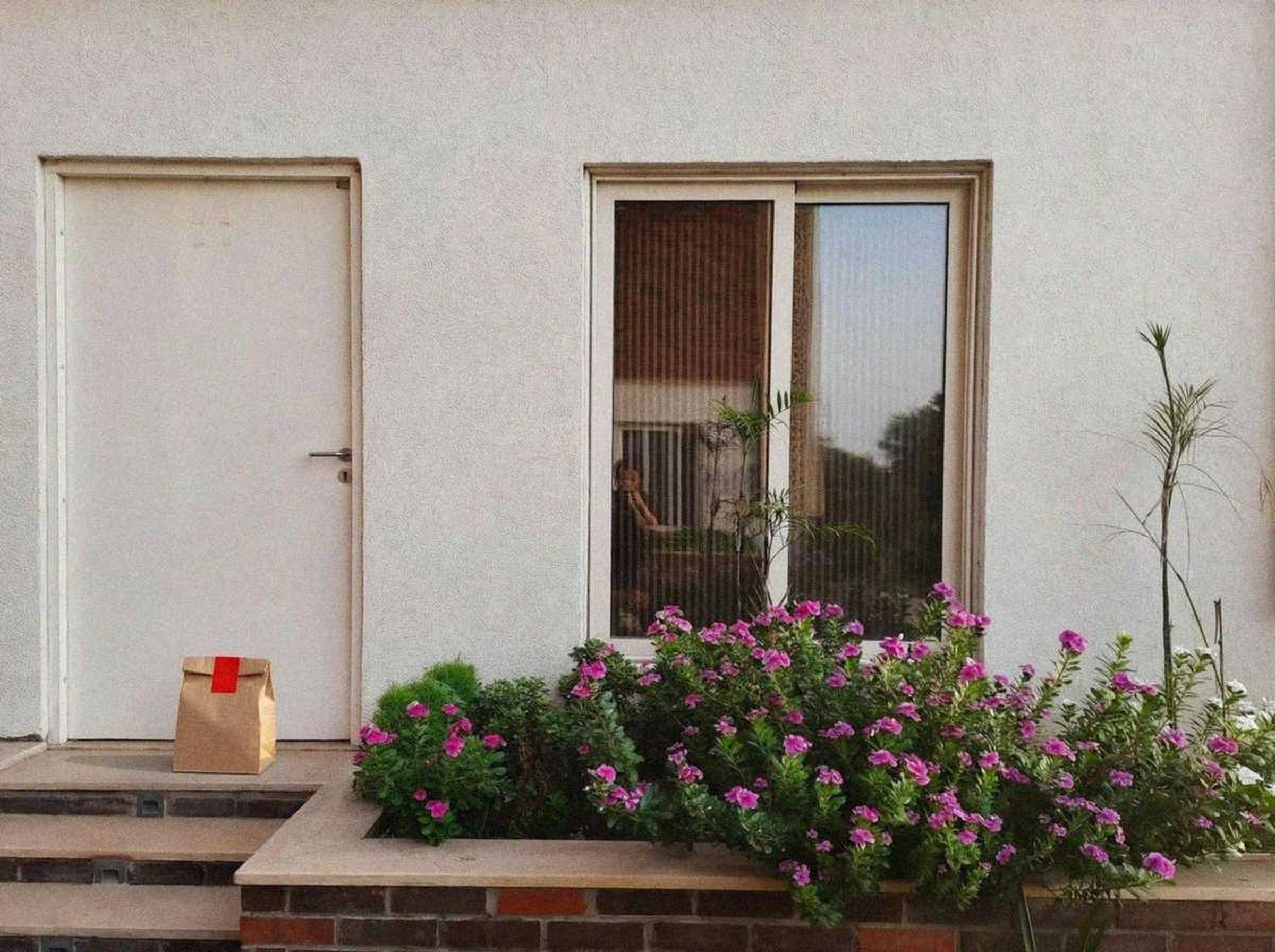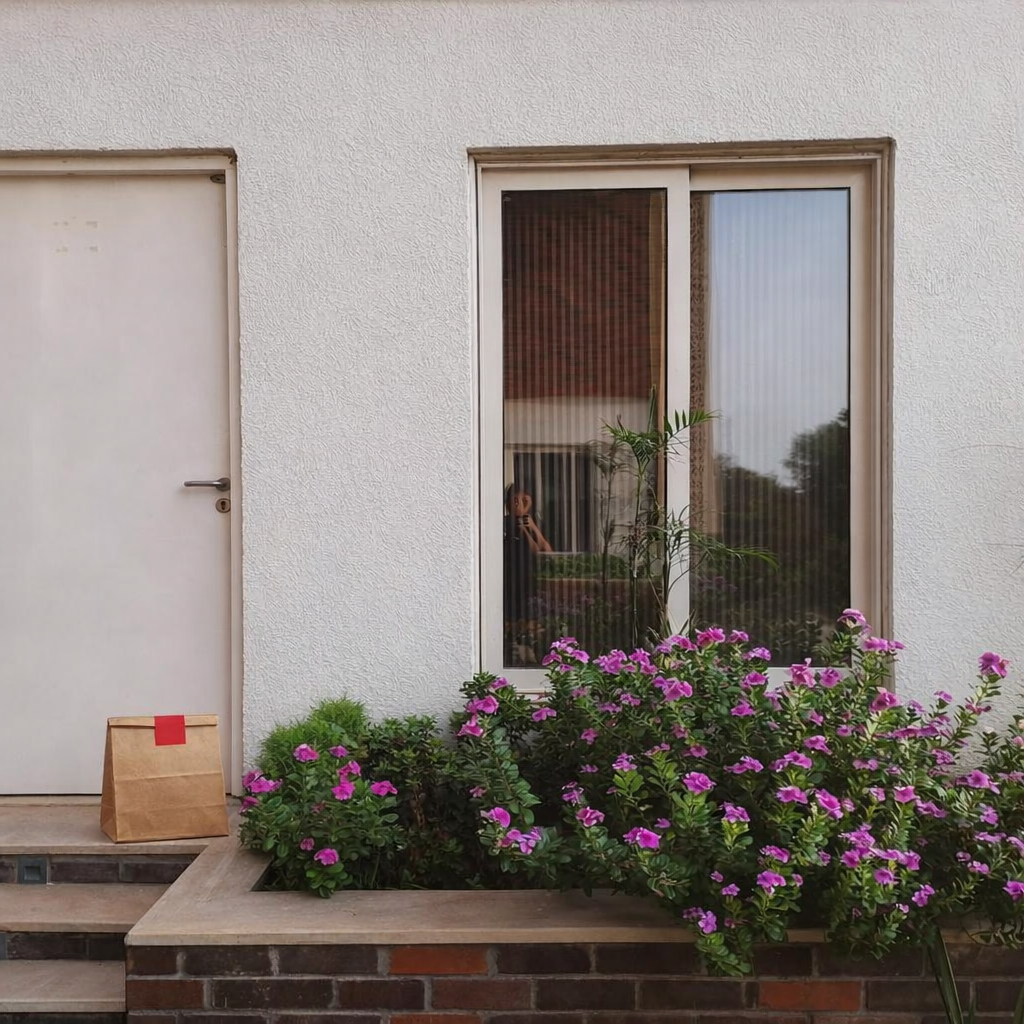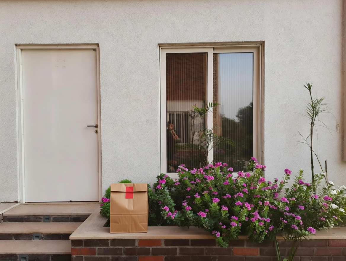 Delivery: We took real front door photos and used AI to add a fake delivery bag to the photo.