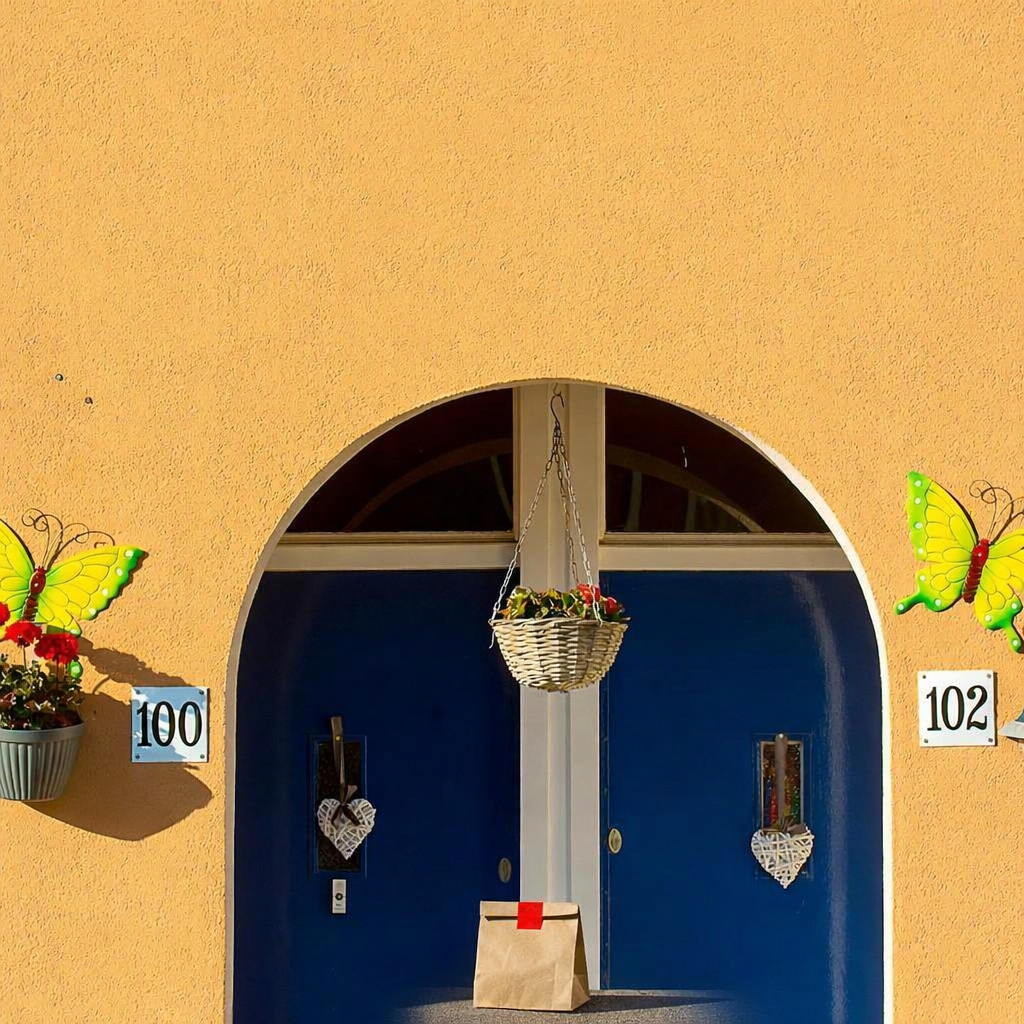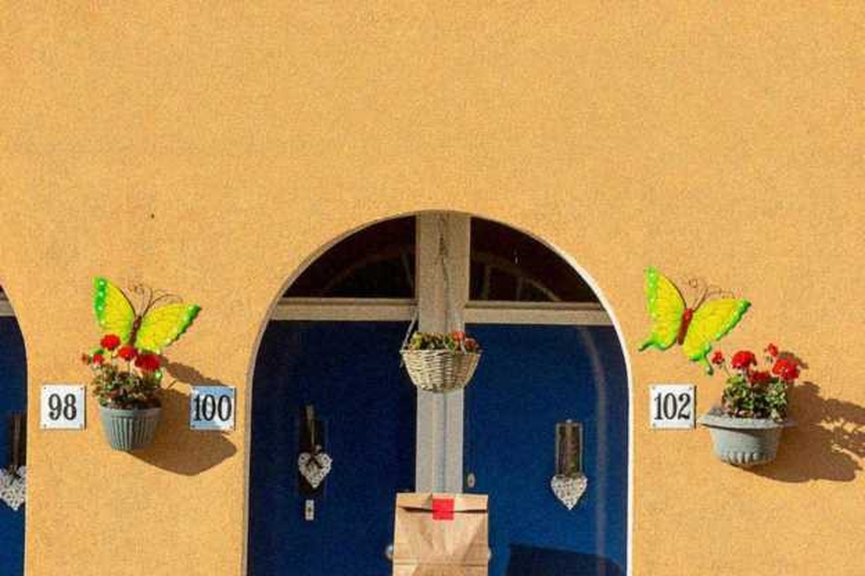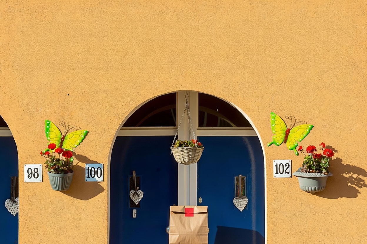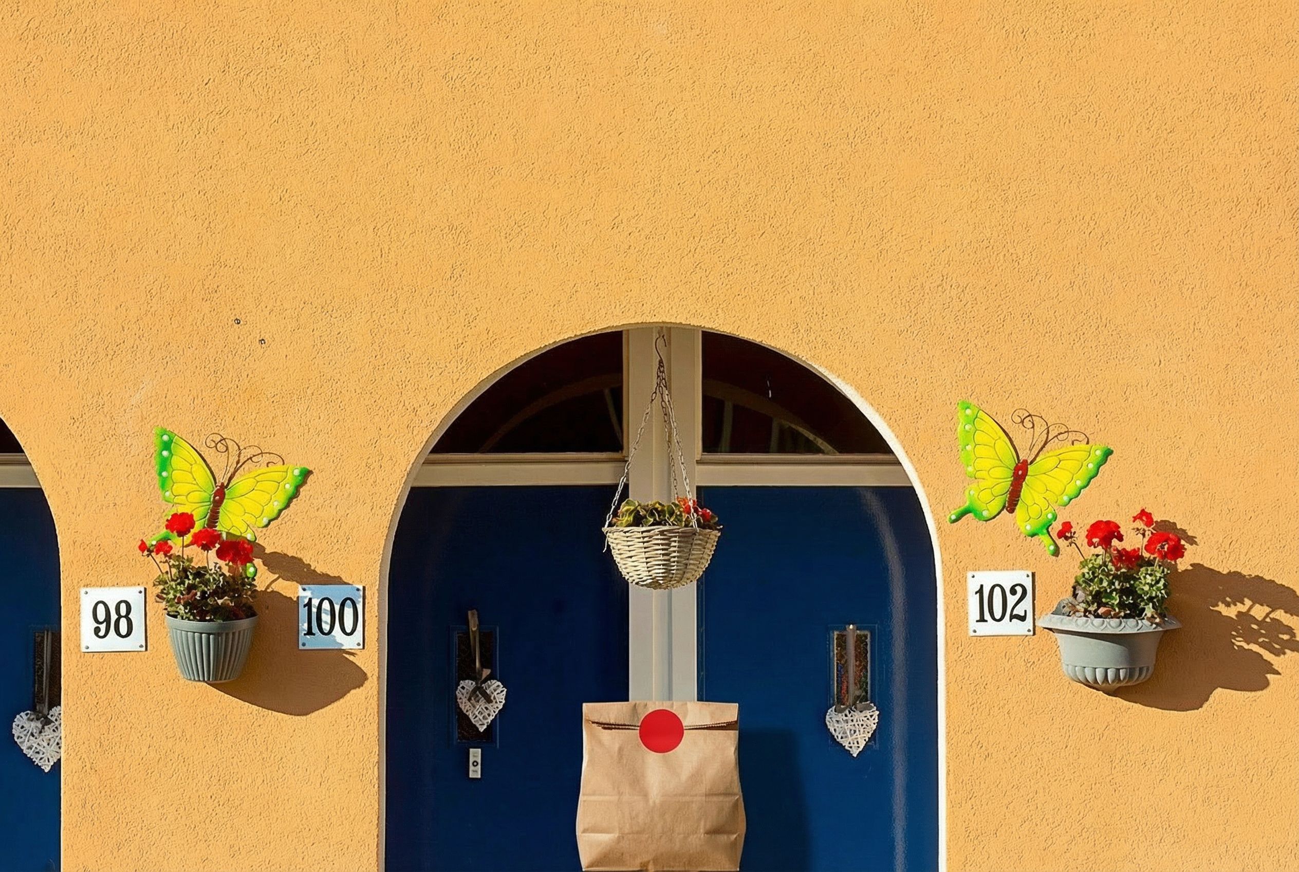 Delivery: We took real front door photos and used AI to add a fake delivery bag to the photo.