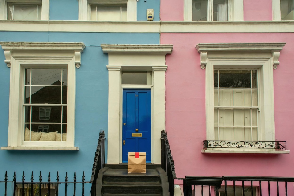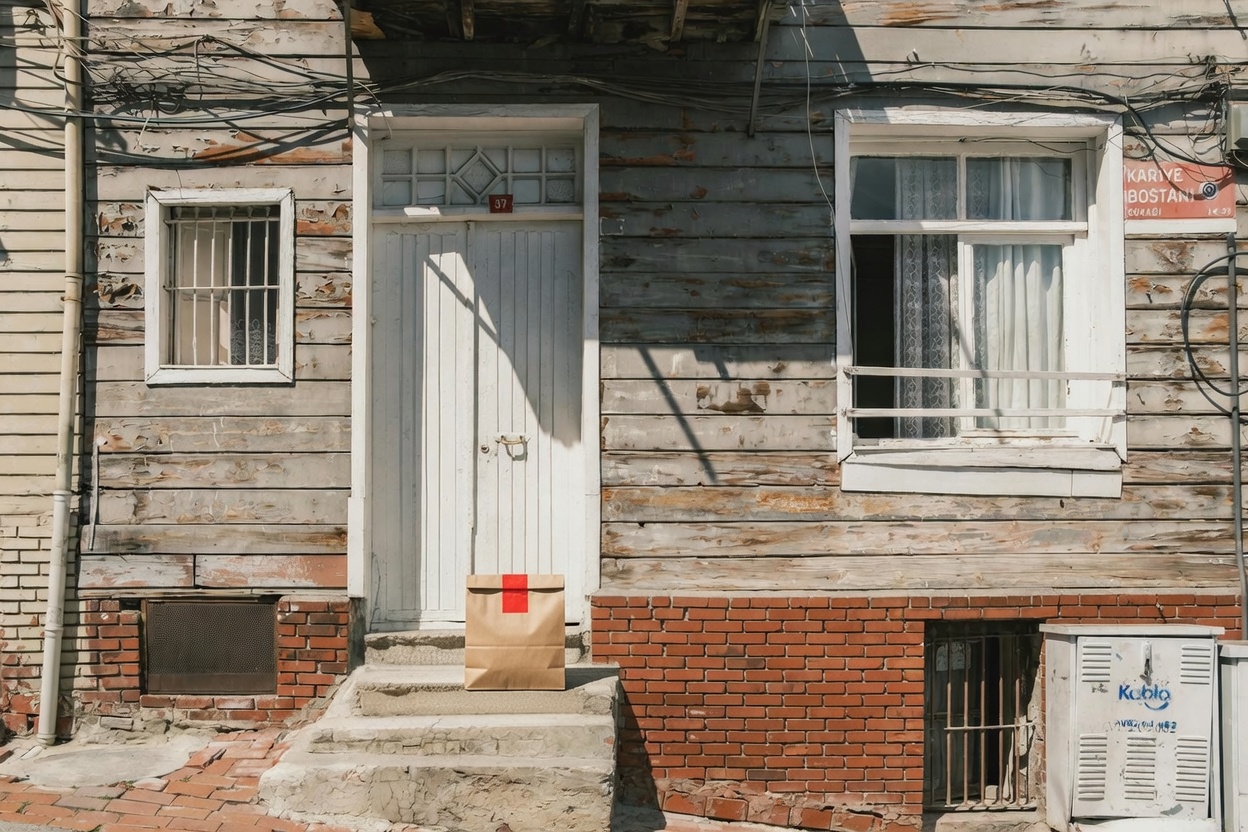 Delivery: We took real front door photos and used AI to add a fake delivery bag to the photo.