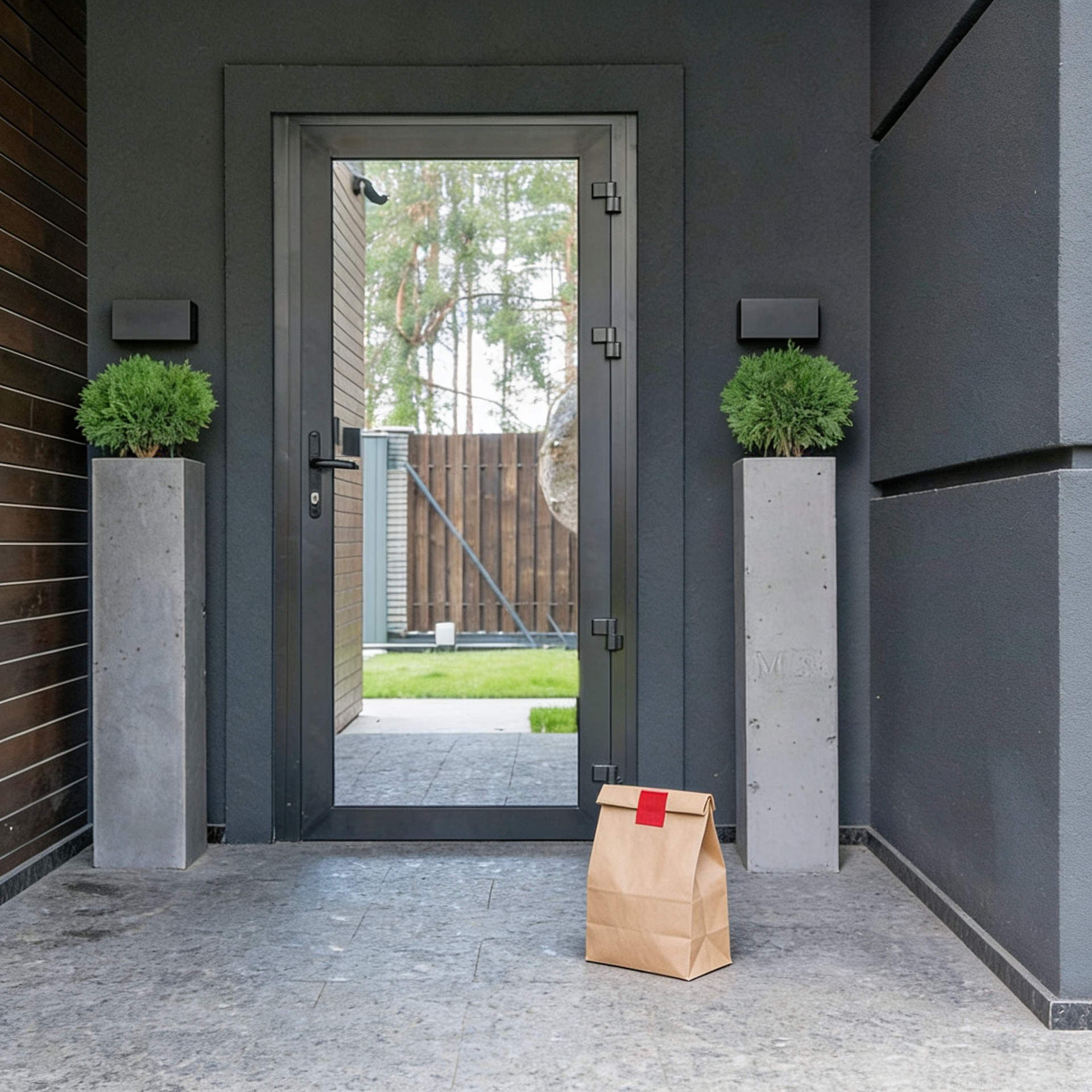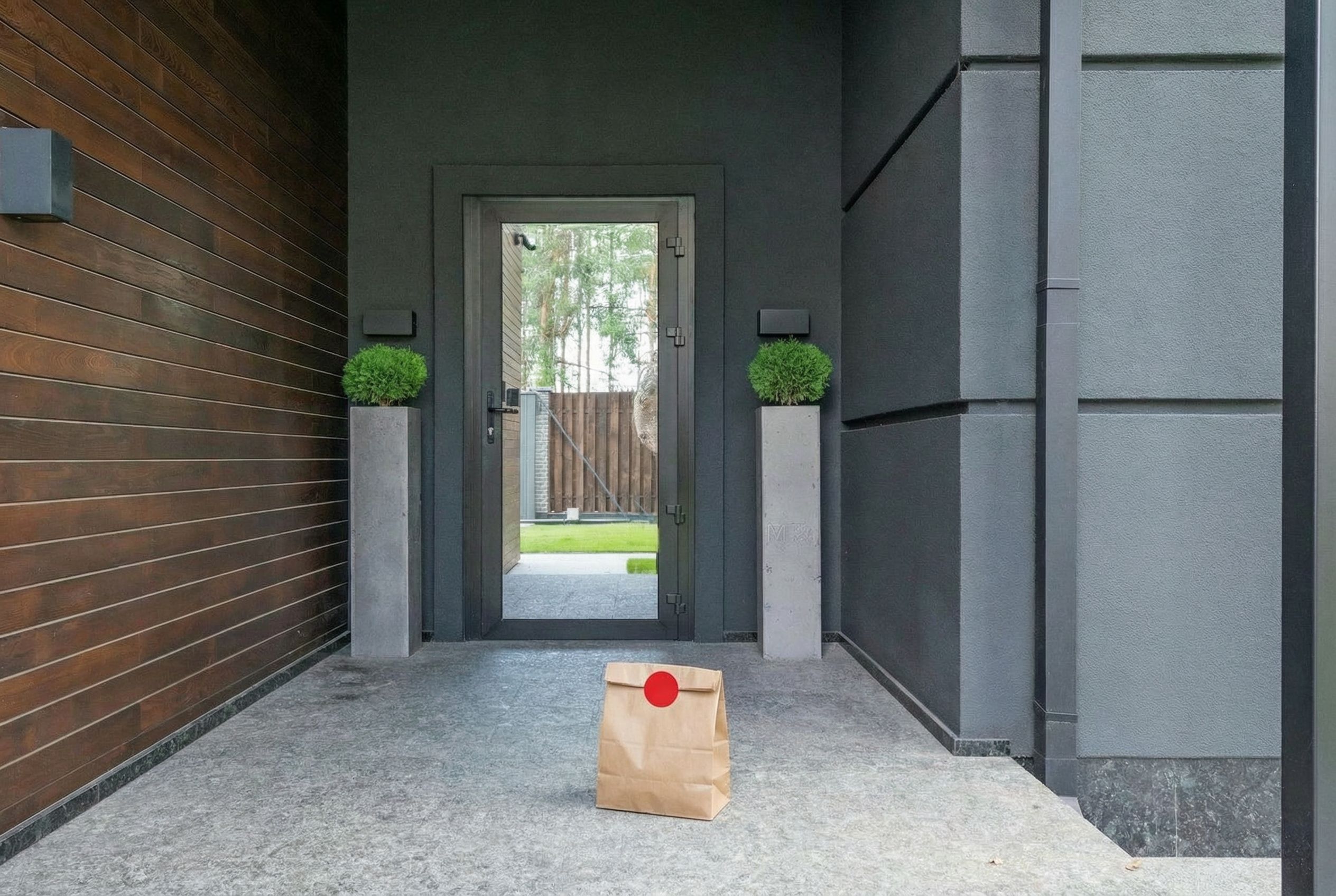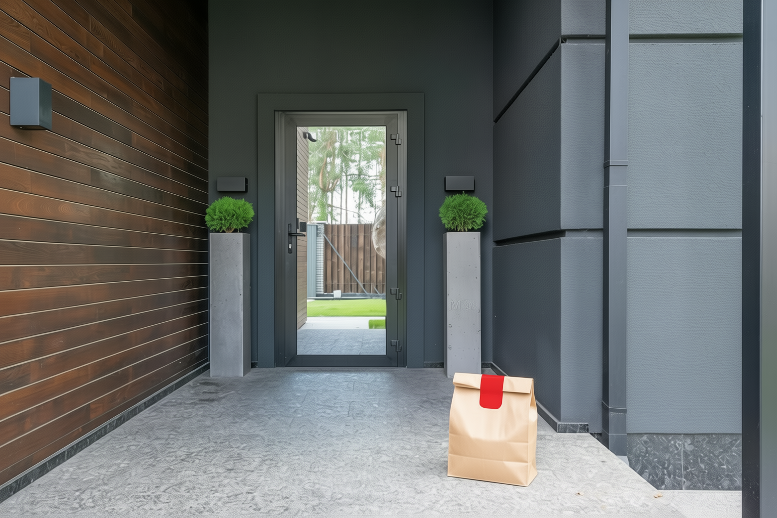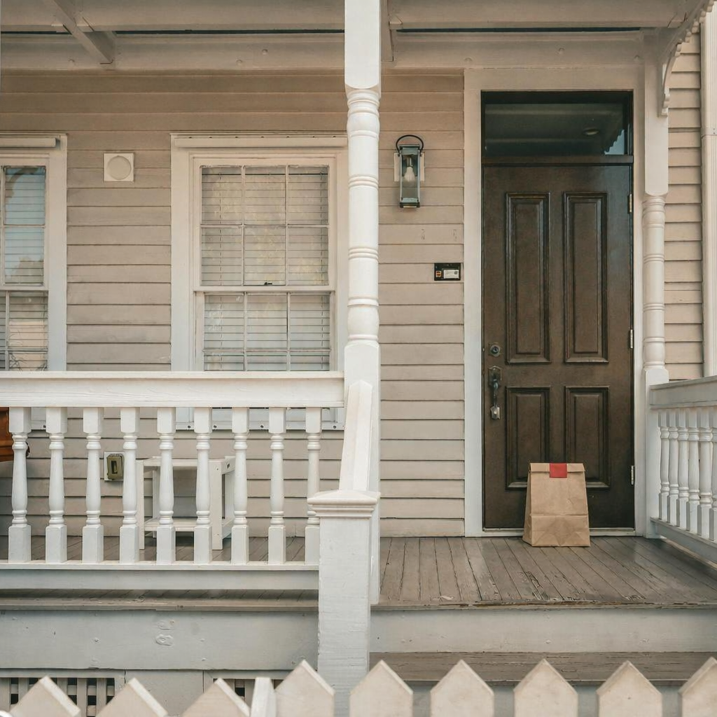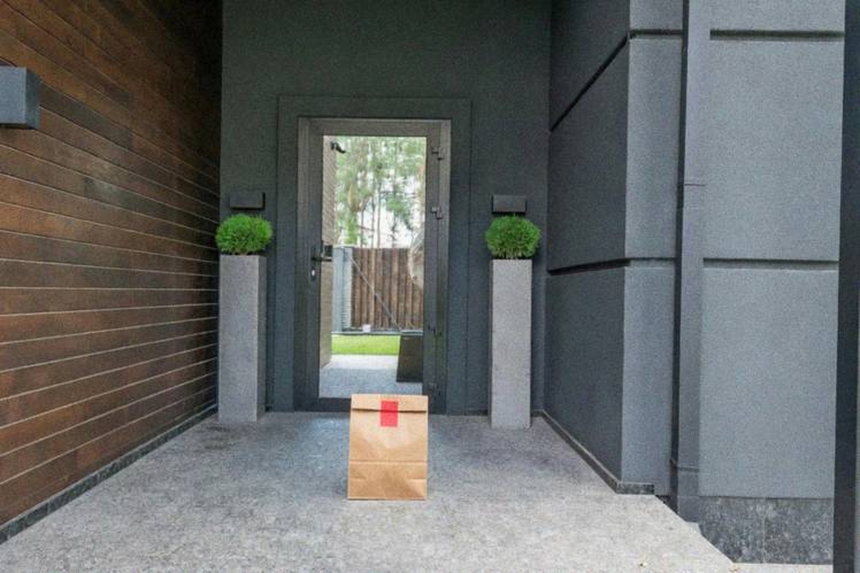 Delivery: We took real front door photos and used AI to add a fake delivery bag to the photo.