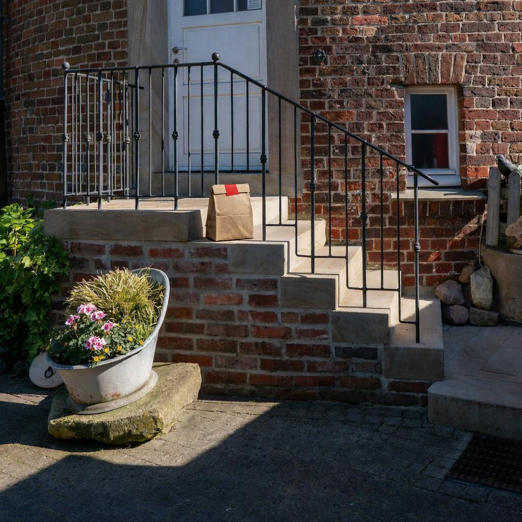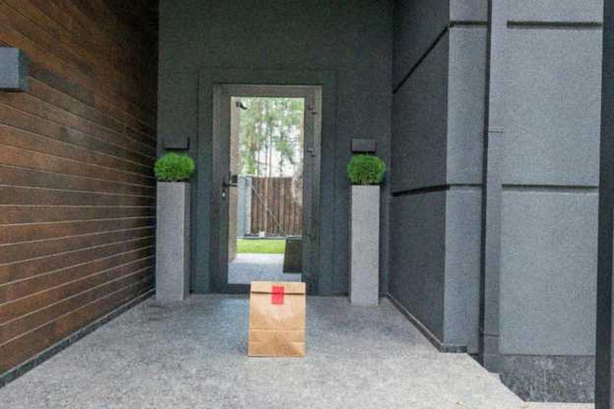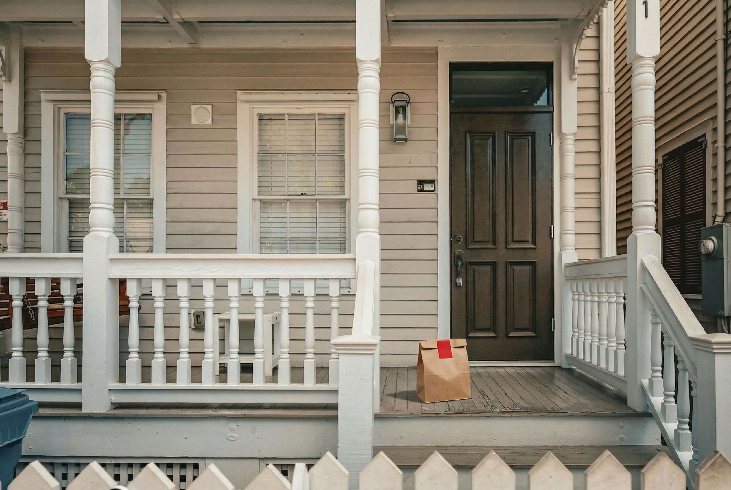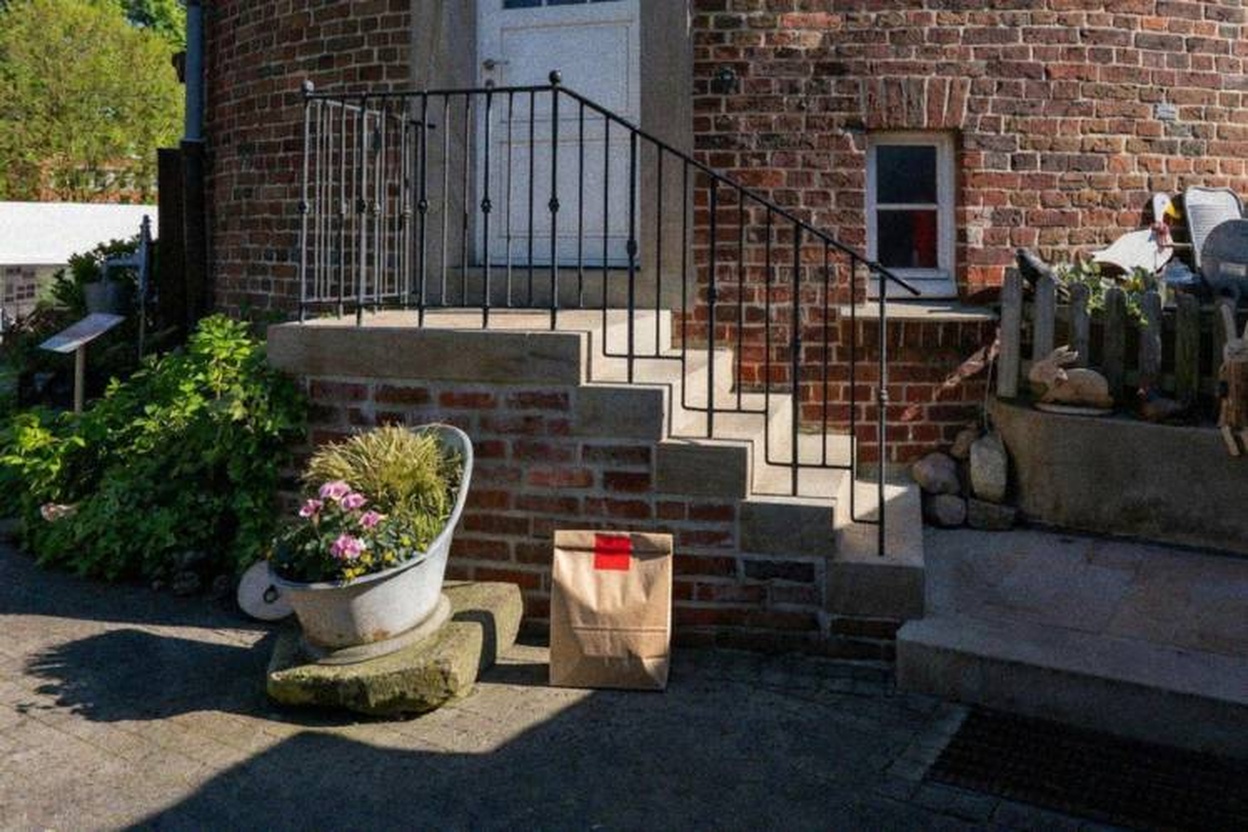 Delivery: We took real front door photos and used AI to add a fake delivery bag to the photo.