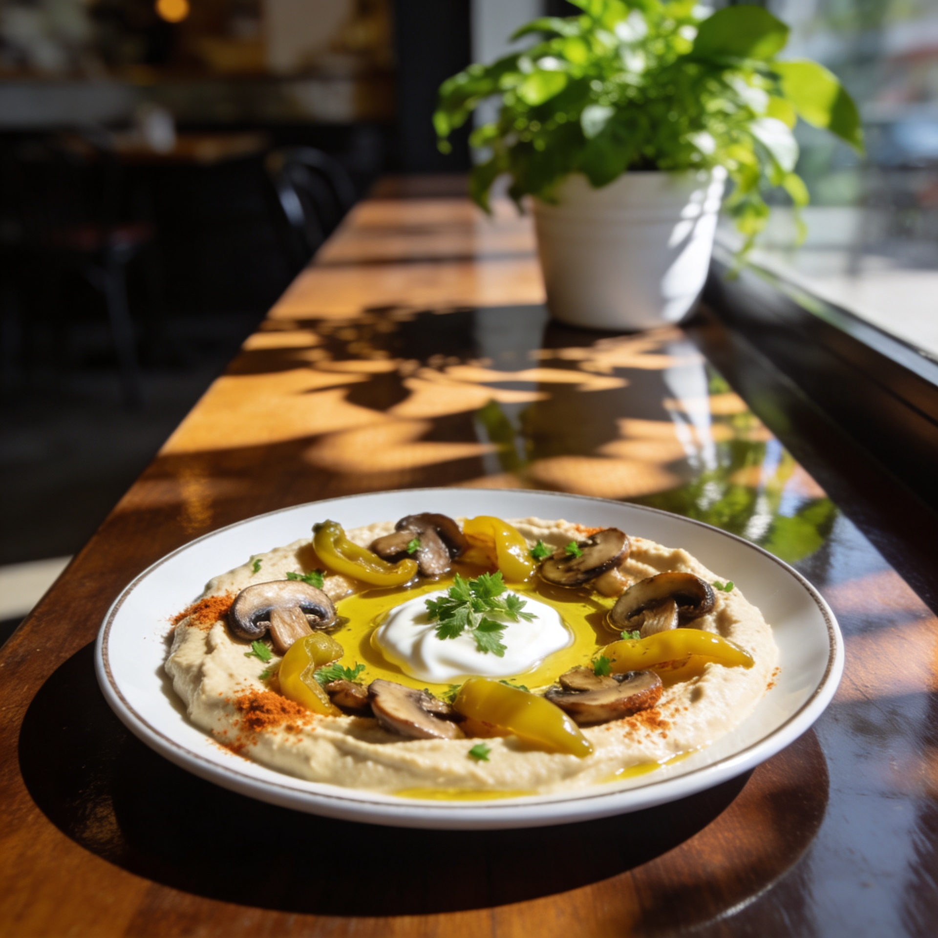 Food: We took real food photos from Yelp, converted them to a text prompt using AI, and then used AI to generate a new image.