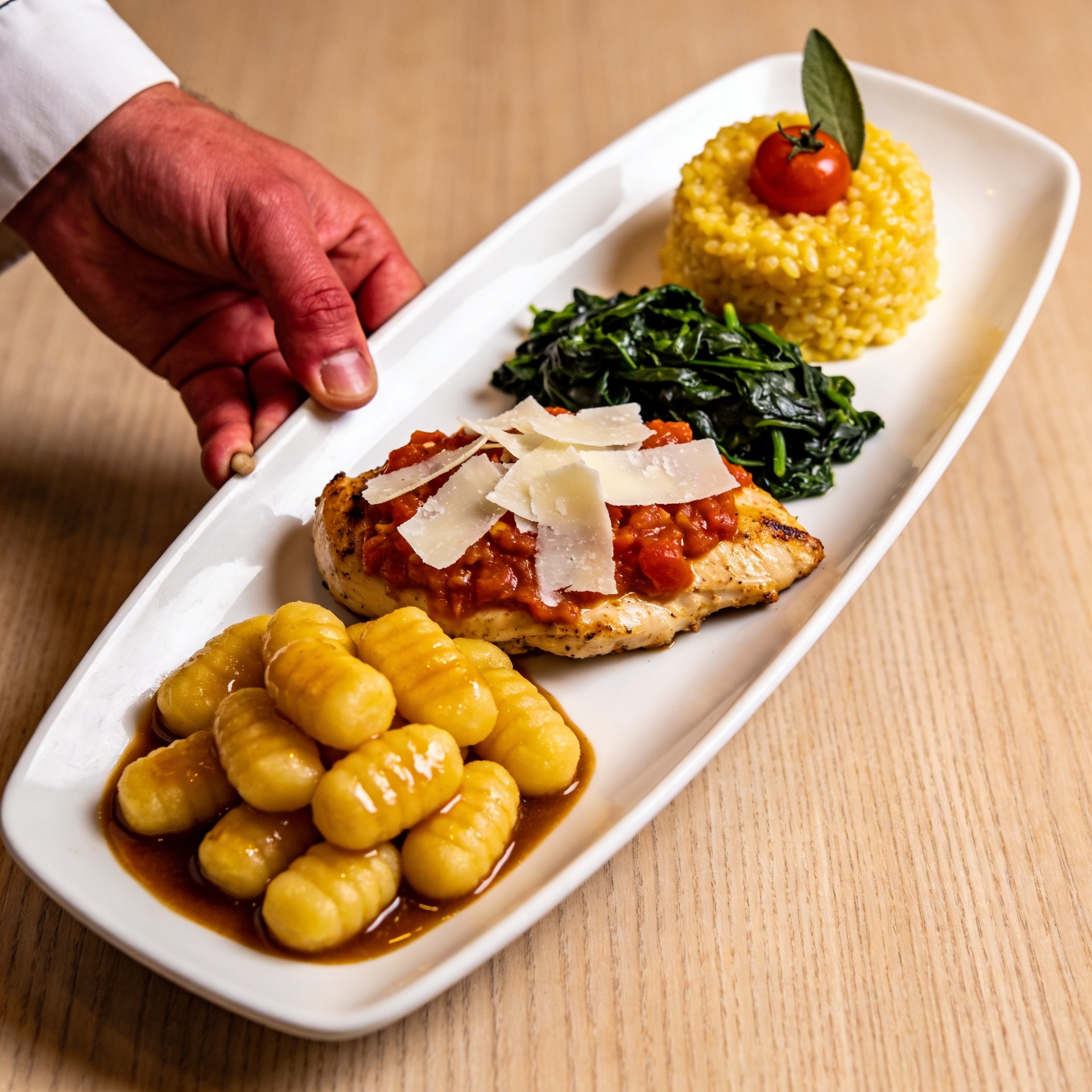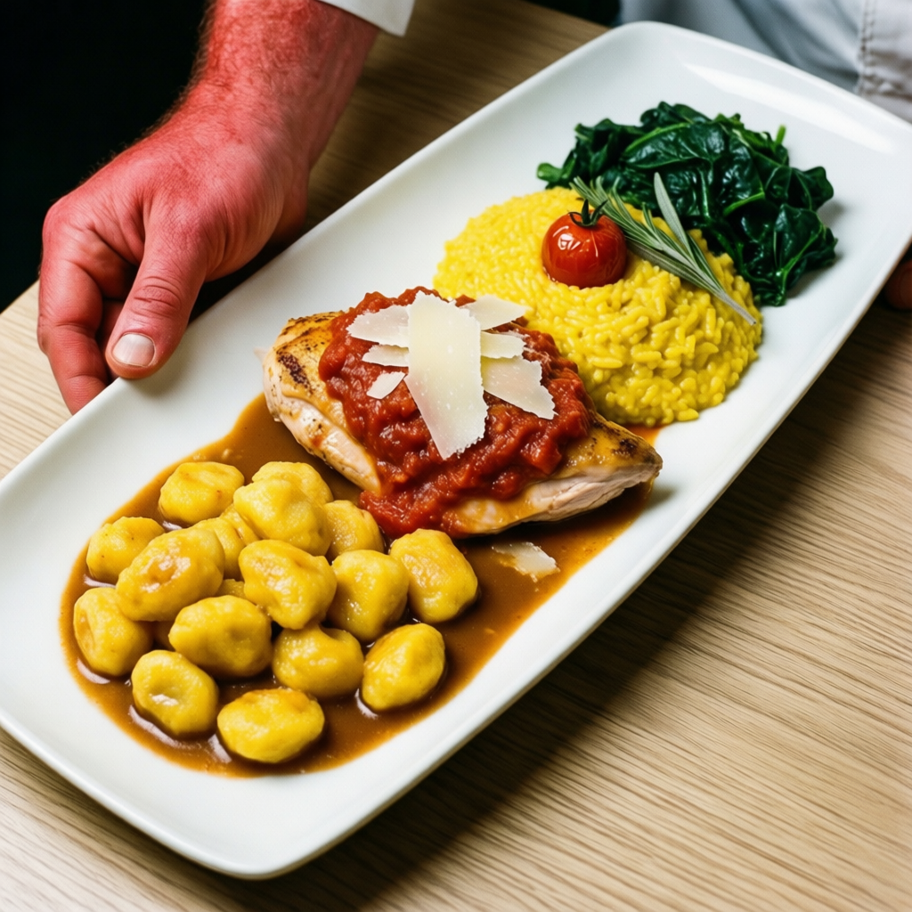 Food: We took real food photos from Yelp, converted them to a text prompt using AI, and then used AI to generate a new image.