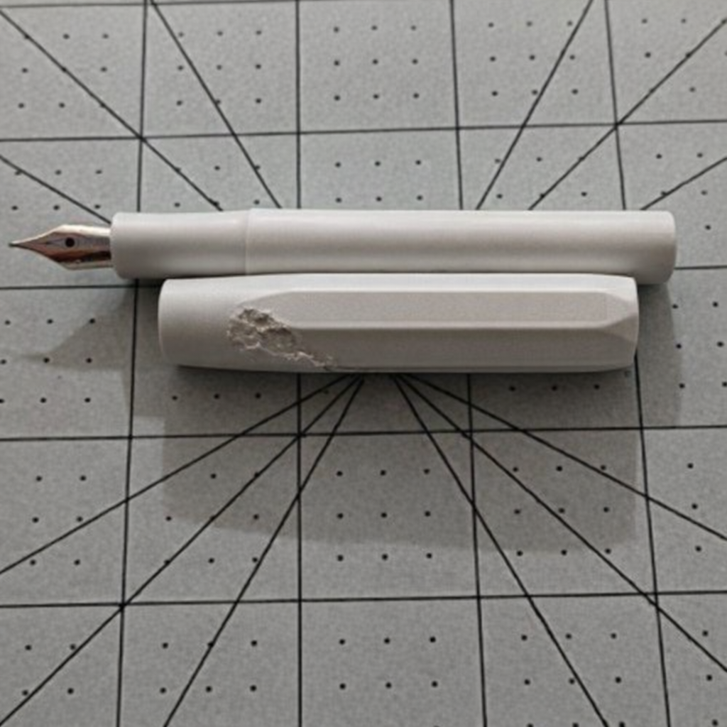 “Edit this photo so this product looks like it arrived from the seller with a realistic issue that a customer would complain about. The issue can be either minor shipping damage (scuff/tear/rip/dent, paint chip, or a small crack) OR a manufacturing defect (uneven paint finish, misaligned seam, or a surface blemish). It still has to look like a real photo.”