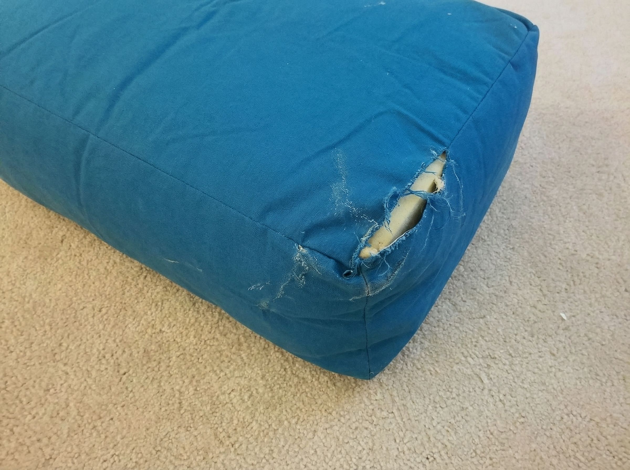 “Edit this photo so this product looks like it arrived from the seller with a realistic issue that a customer would complain about. The issue can be either minor shipping damage (scuff/tear/rip/dent, paint chip, or a small crack) OR a manufacturing defect (uneven paint finish, misaligned seam, or a surface blemish). It still has to look like a real photo.”