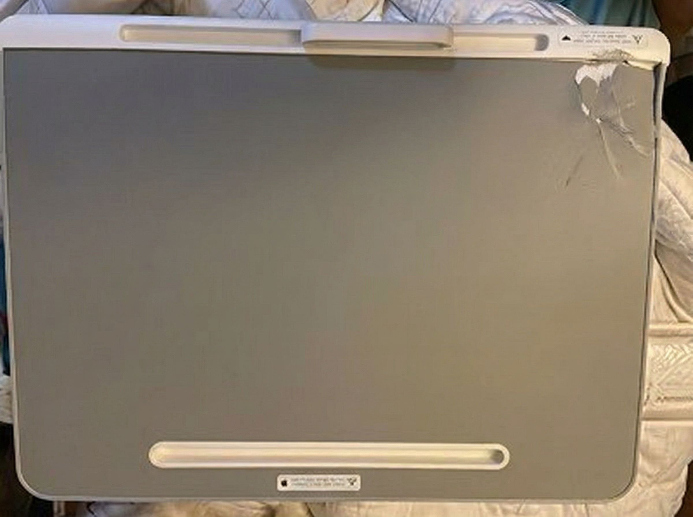 “Edit this photo so this product looks like it arrived from the seller with a realistic issue that a customer would complain about. The issue can be either minor shipping damage (scuff/tear/rip/dent, paint chip, or a small crack) OR a manufacturing defect (uneven paint finish, misaligned seam, or a surface blemish). It still has to look like a real photo.”