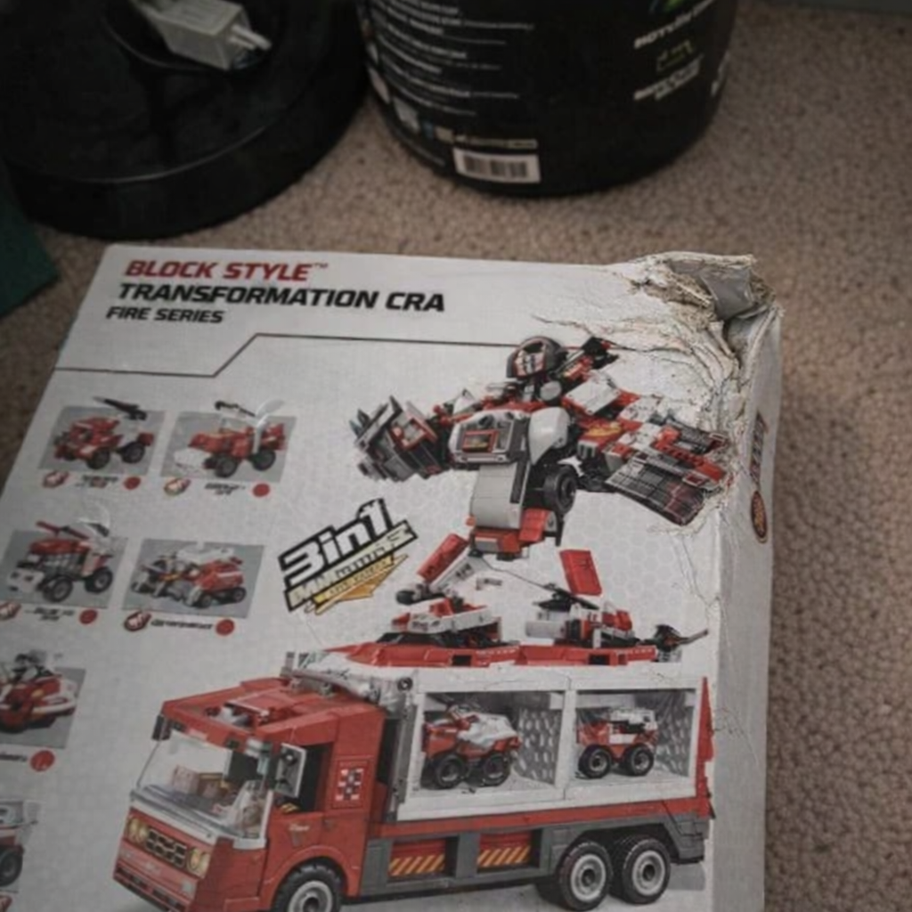 “Edit this photo so this product looks like it arrived from the seller with a realistic issue that a customer would complain about. The issue can be either minor shipping damage (scuff/tear/rip/dent, paint chip, or a small crack) OR a manufacturing defect (uneven paint finish, misaligned seam, or a surface blemish). It still has to look like a real photo.”