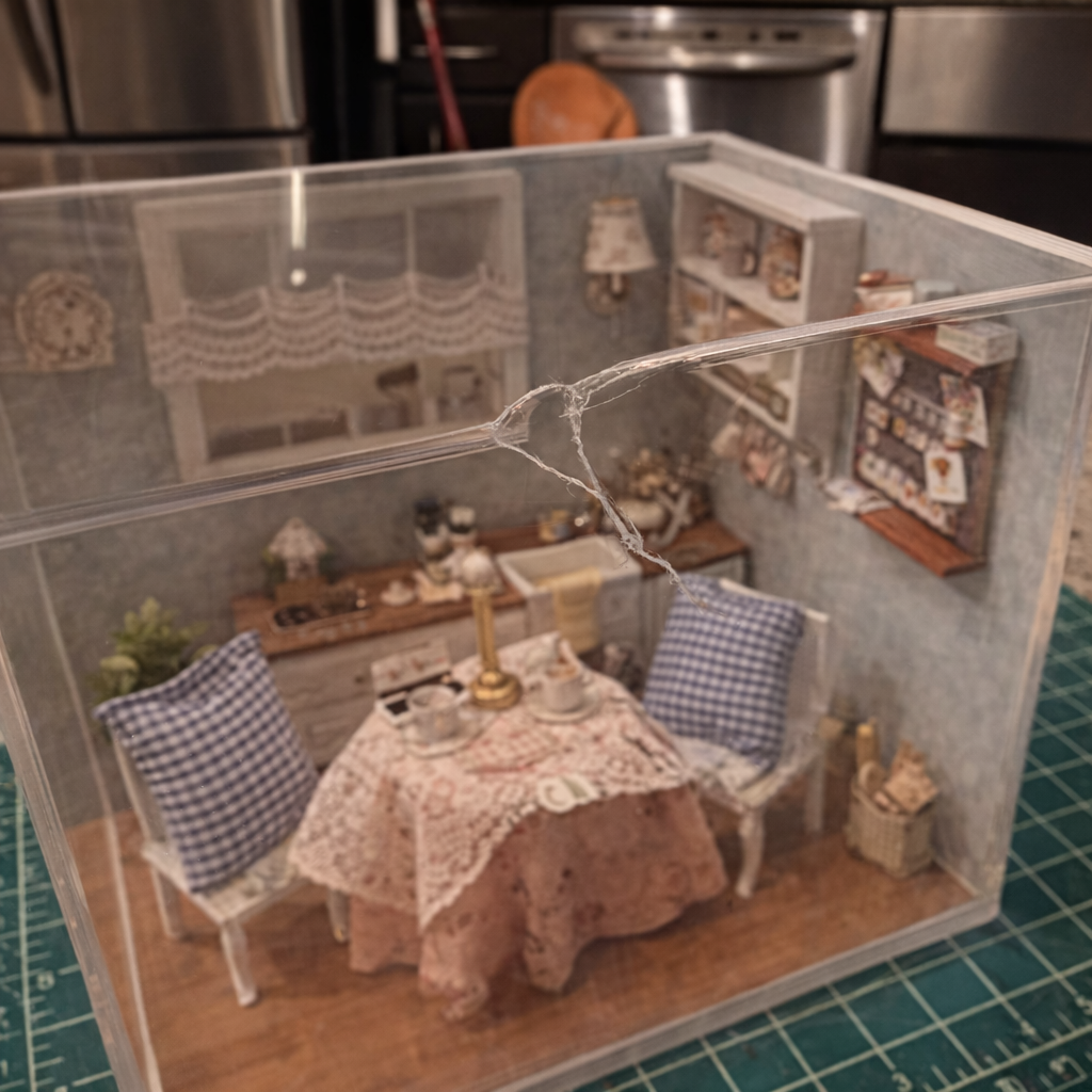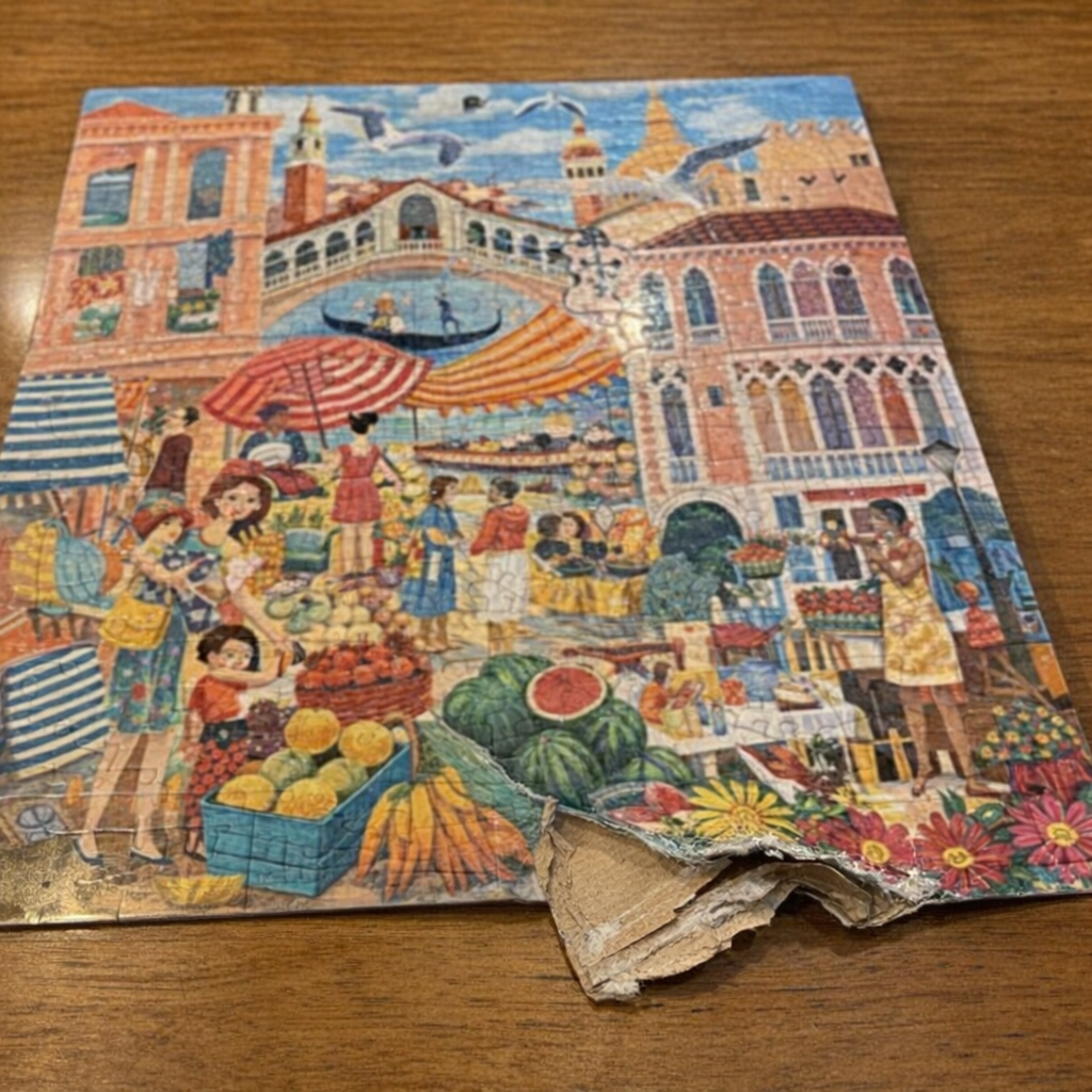 “Edit this photo so this product looks like it arrived from the seller with a realistic issue that a customer would complain about. The issue can be either minor shipping damage (scuff/tear/rip/dent, paint chip, or a small crack) OR a manufacturing defect (uneven paint finish, misaligned seam, or a surface blemish). It still has to look like a real photo.”