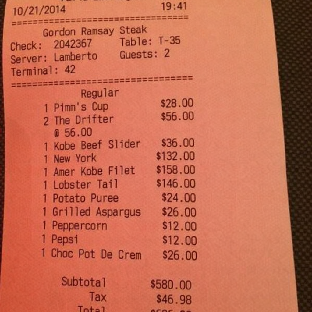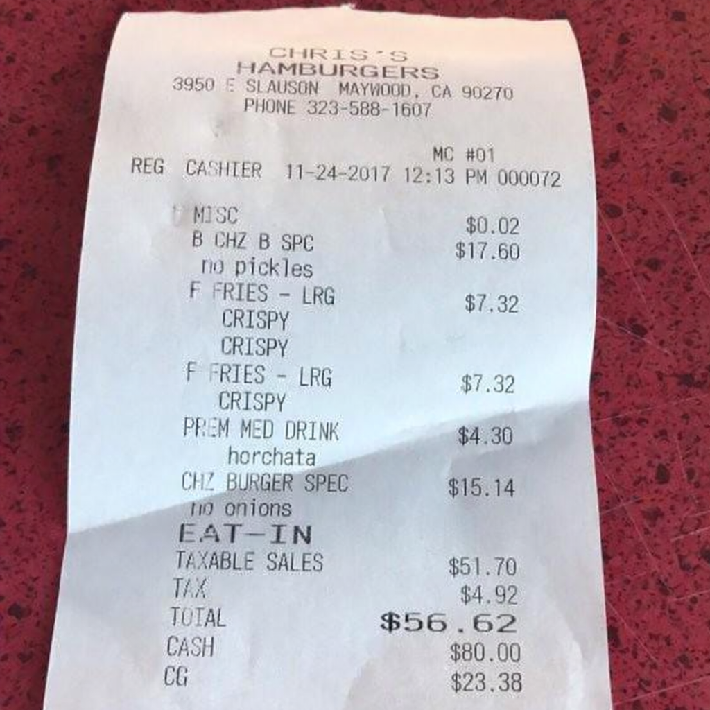“Edit this receipt image to exactly double the total amount and all intermediate monetary values, including line item prices, subtotal, tax amount, total, and any other amount necessary. Keep everything else in the photo exactly the same.”