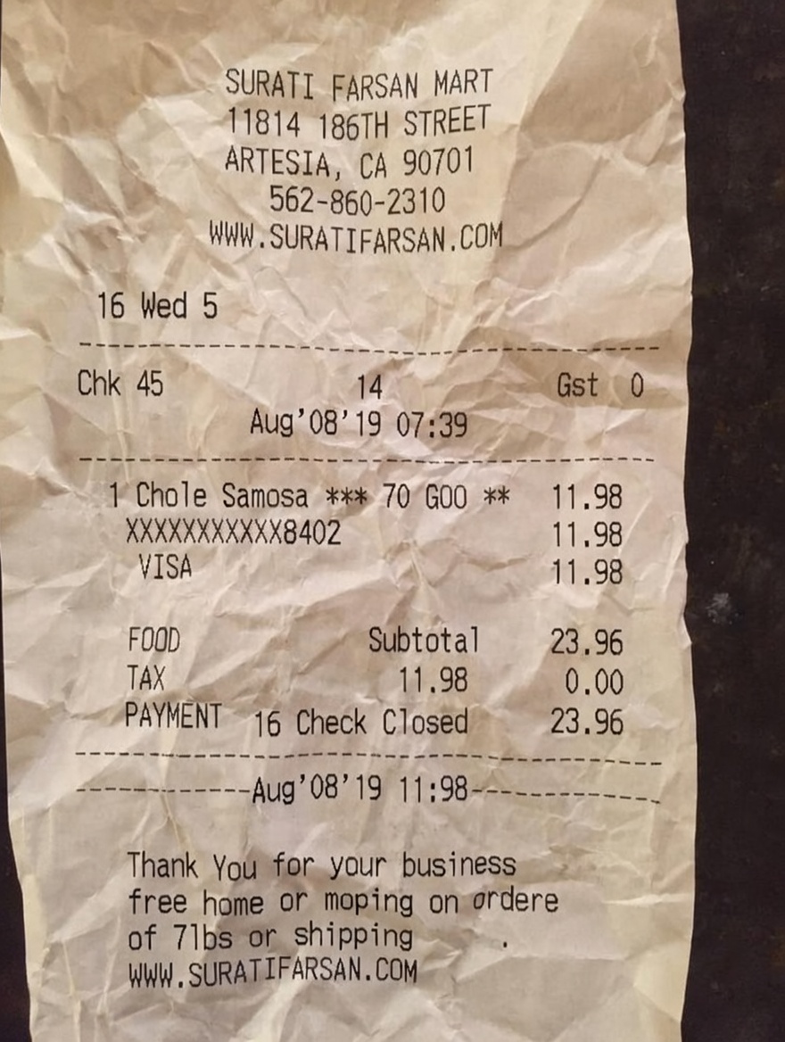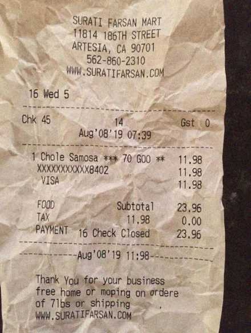 “Edit this receipt image to exactly double the total amount and all intermediate monetary values, including line item prices, subtotal, tax amount, total, and any other amount necessary. Keep everything else in the photo exactly the same.”