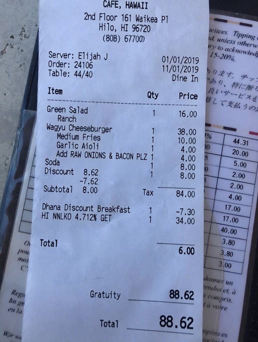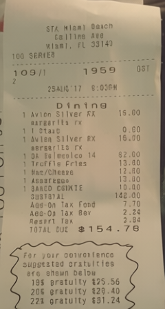 “Edit this receipt image to exactly double the total amount and all intermediate monetary values, including line item prices, subtotal, tax amount, total, and any other amount necessary. Keep everything else in the photo exactly the same.”