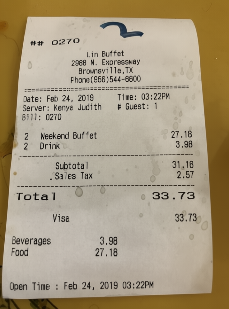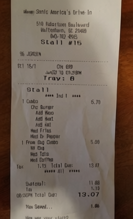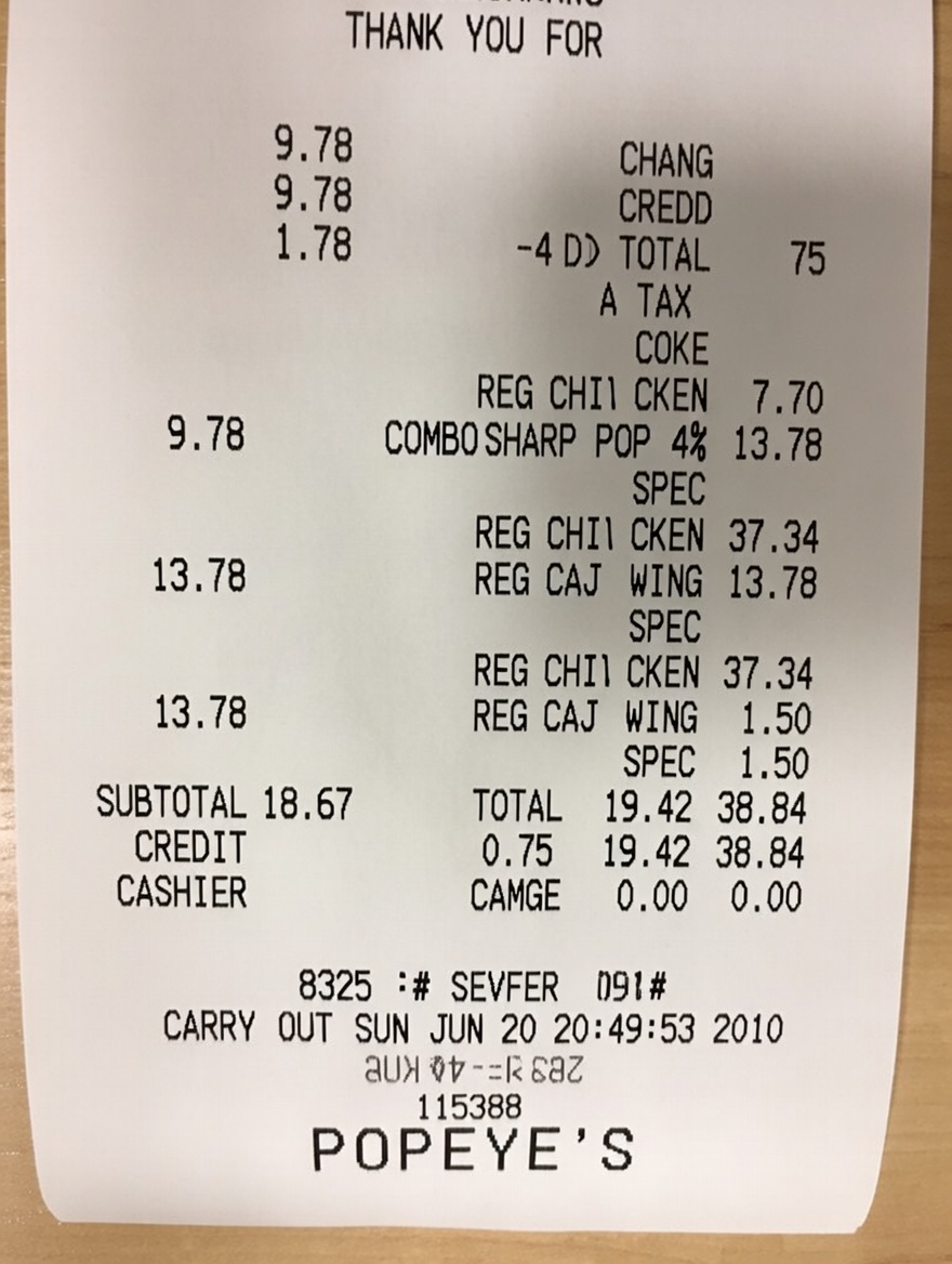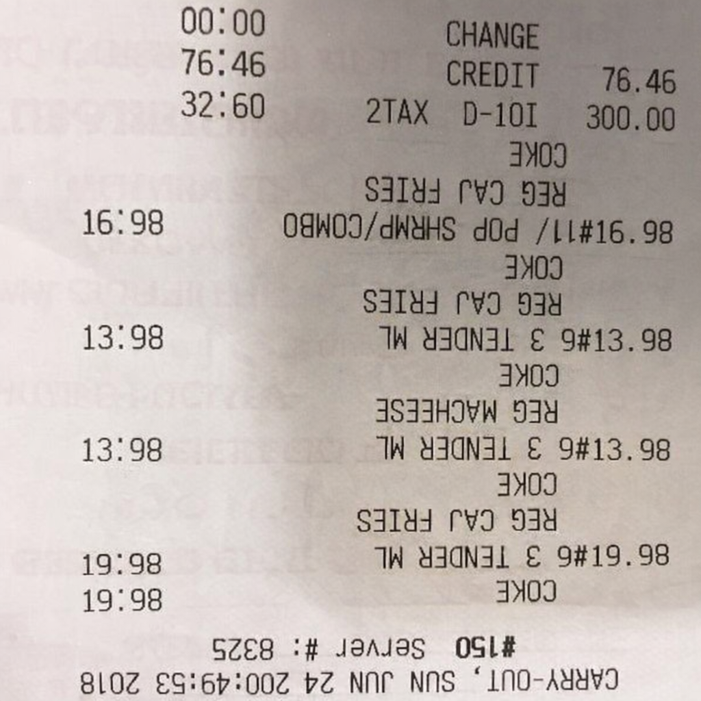 “Edit this receipt image to exactly double the total amount and all intermediate monetary values, including line item prices, subtotal, tax amount, total, and any other amount necessary. Keep everything else in the photo exactly the same.”