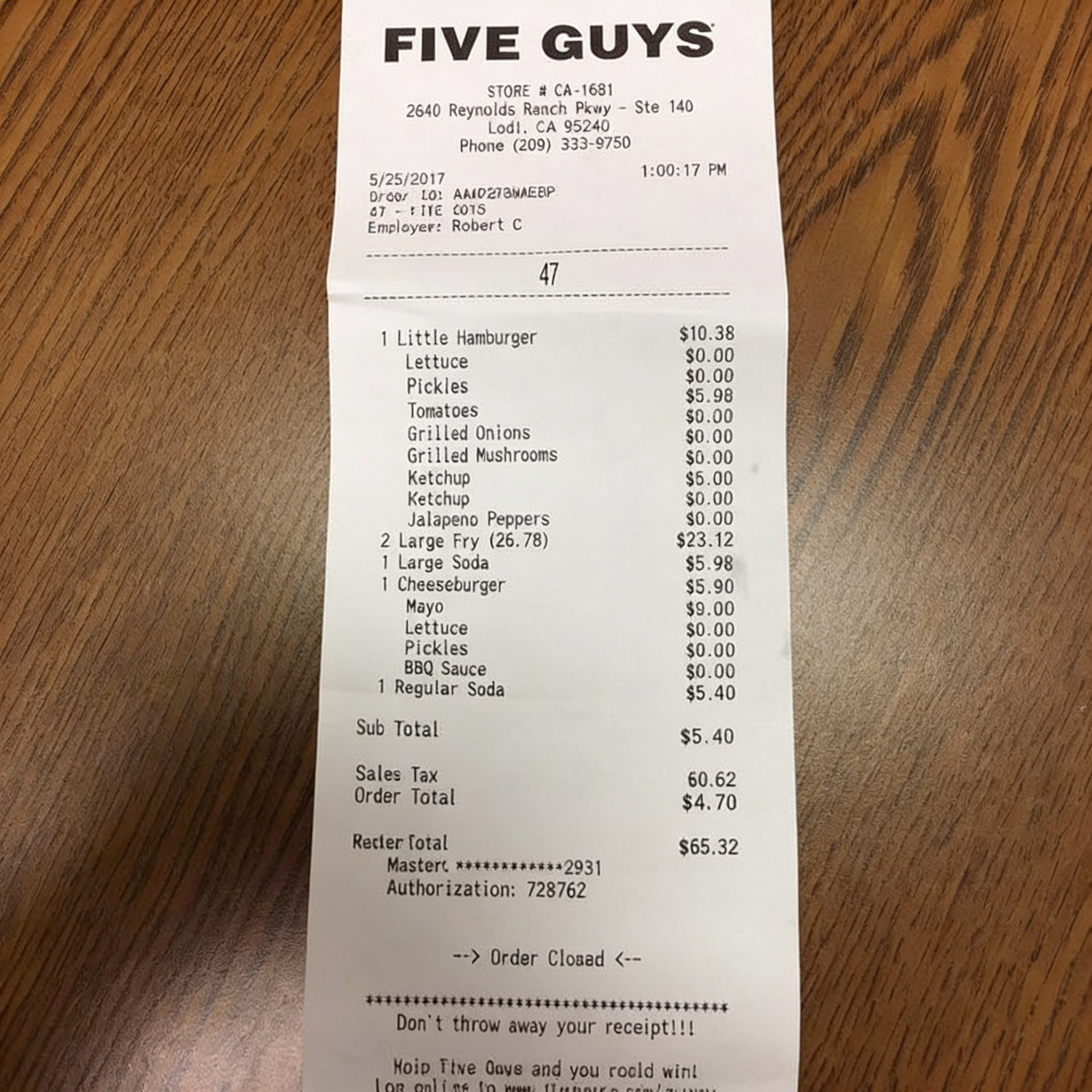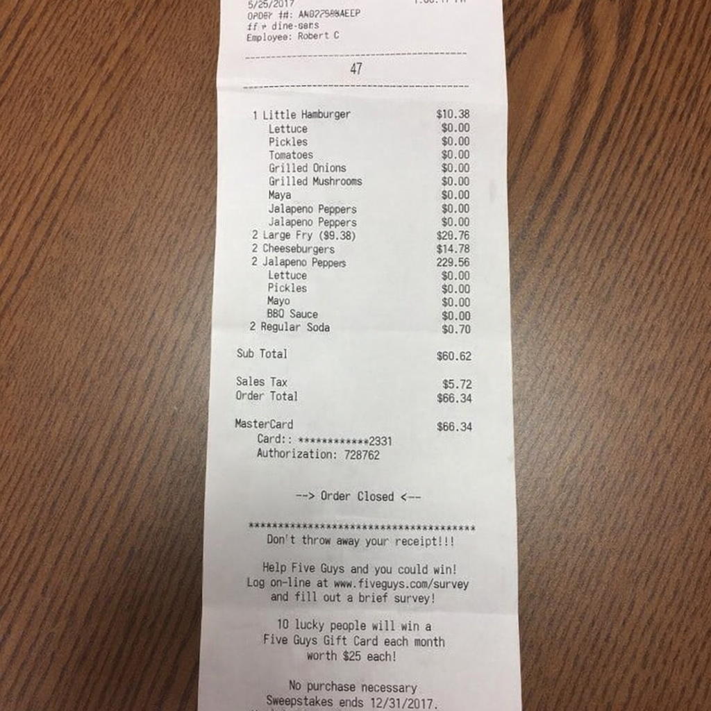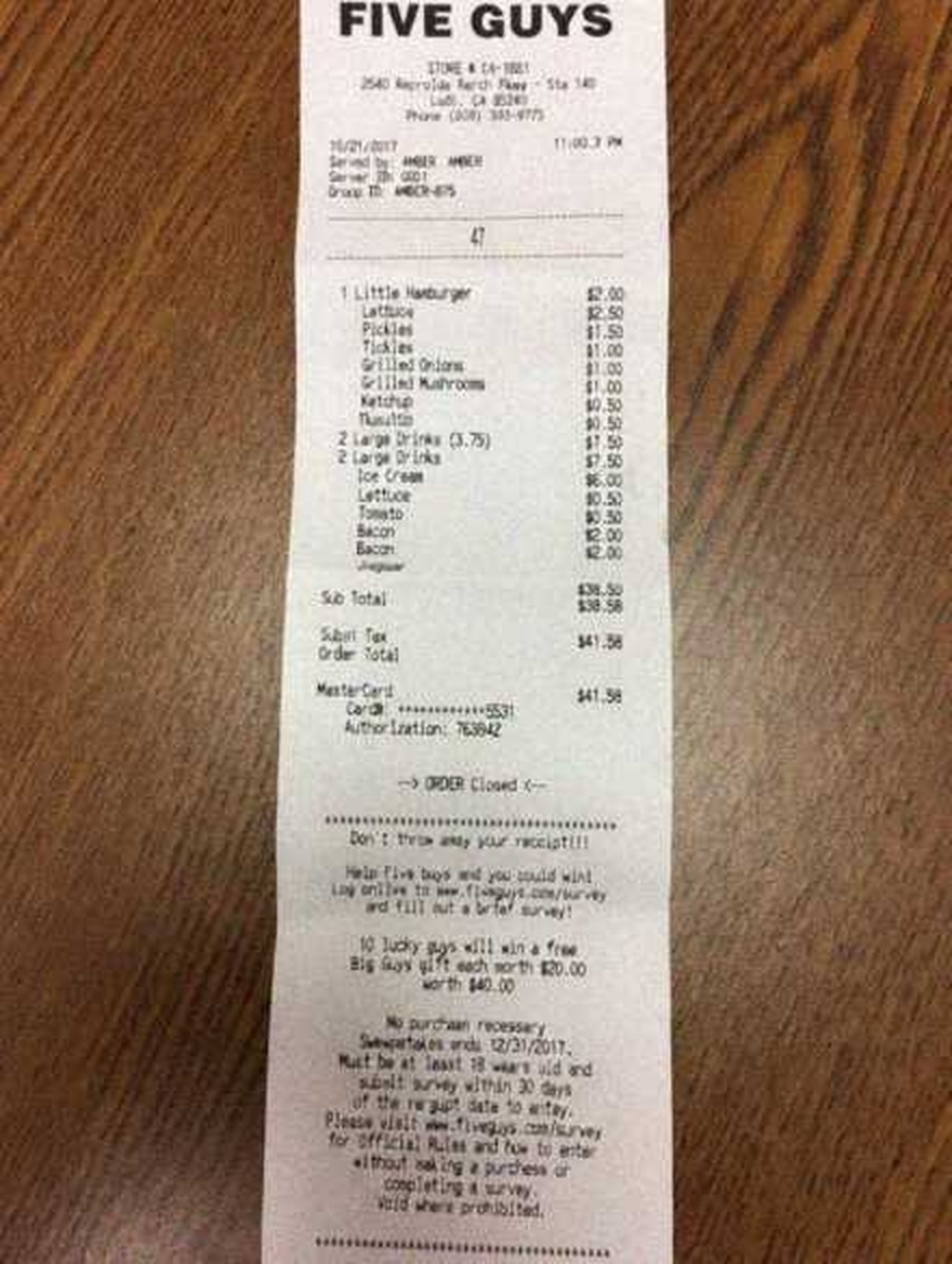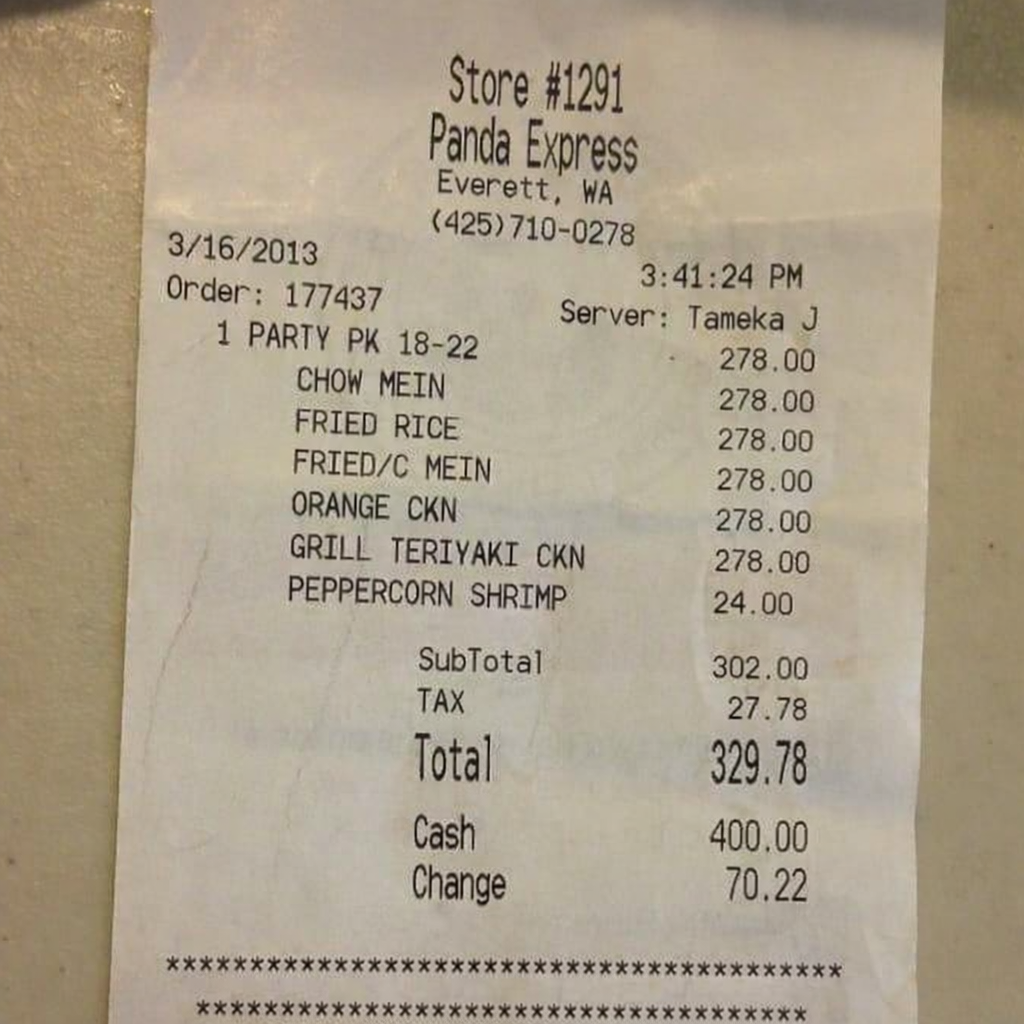 “Edit this receipt image to exactly double the total amount and all intermediate monetary values, including line item prices, subtotal, tax amount, total, and any other amount necessary. Keep everything else in the photo exactly the same.”