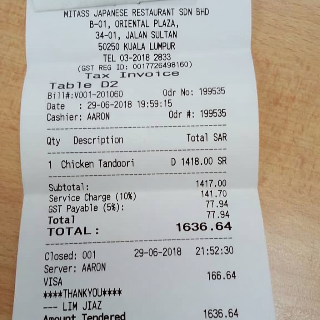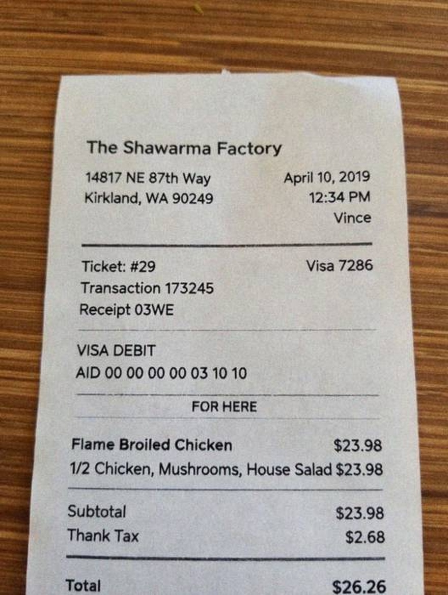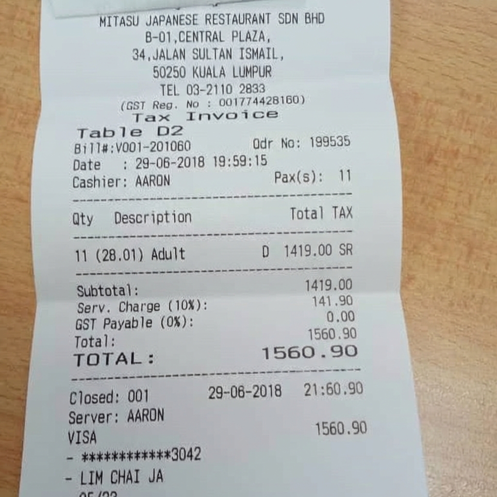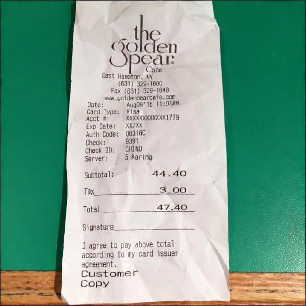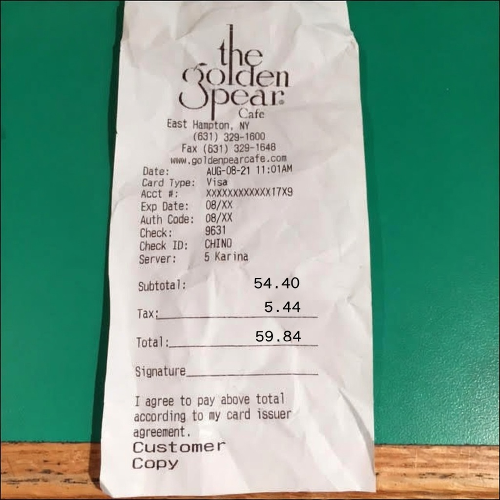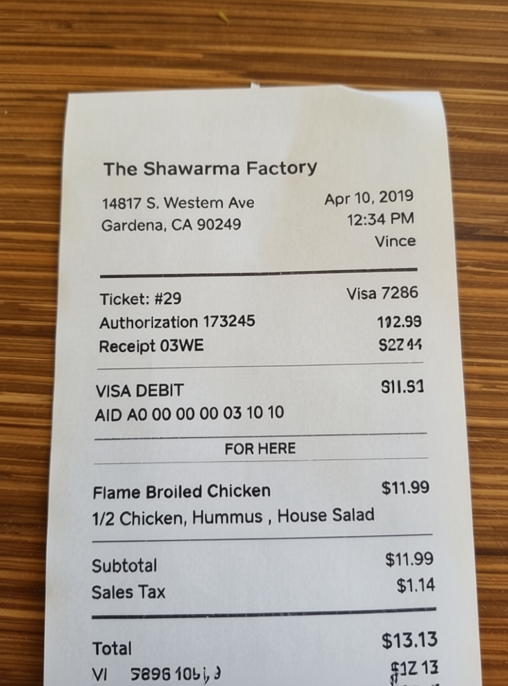 “Edit this receipt image to exactly double the total amount and all intermediate monetary values, including line item prices, subtotal, tax amount, total, and any other amount necessary. Keep everything else in the photo exactly the same.”