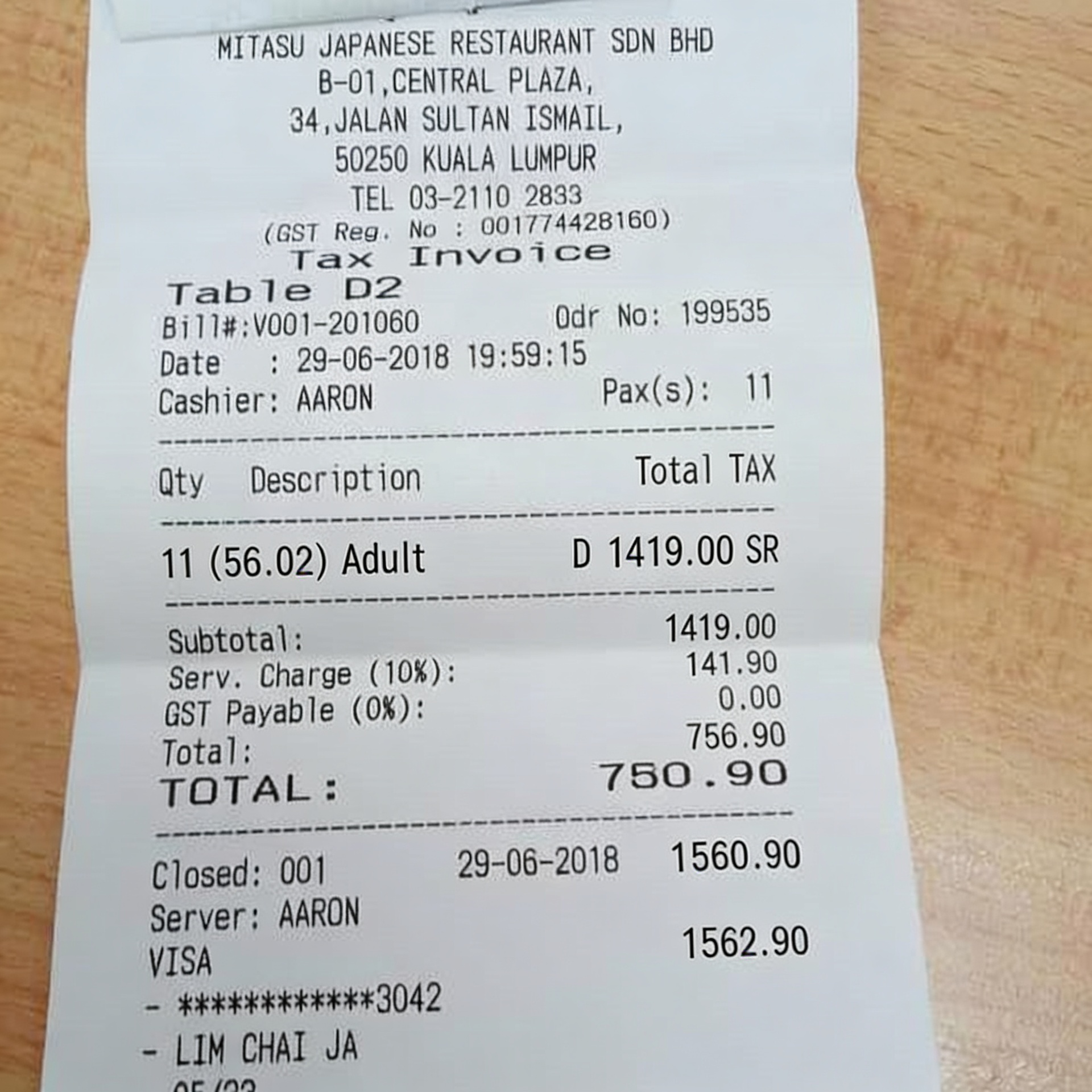 Edit this receipt image to exactly double the total amount and all intermediate monetary values, including line item prices, subtotal, tax amount, total, and any other amount necessary. Keep everything else in the photo exactly the same.